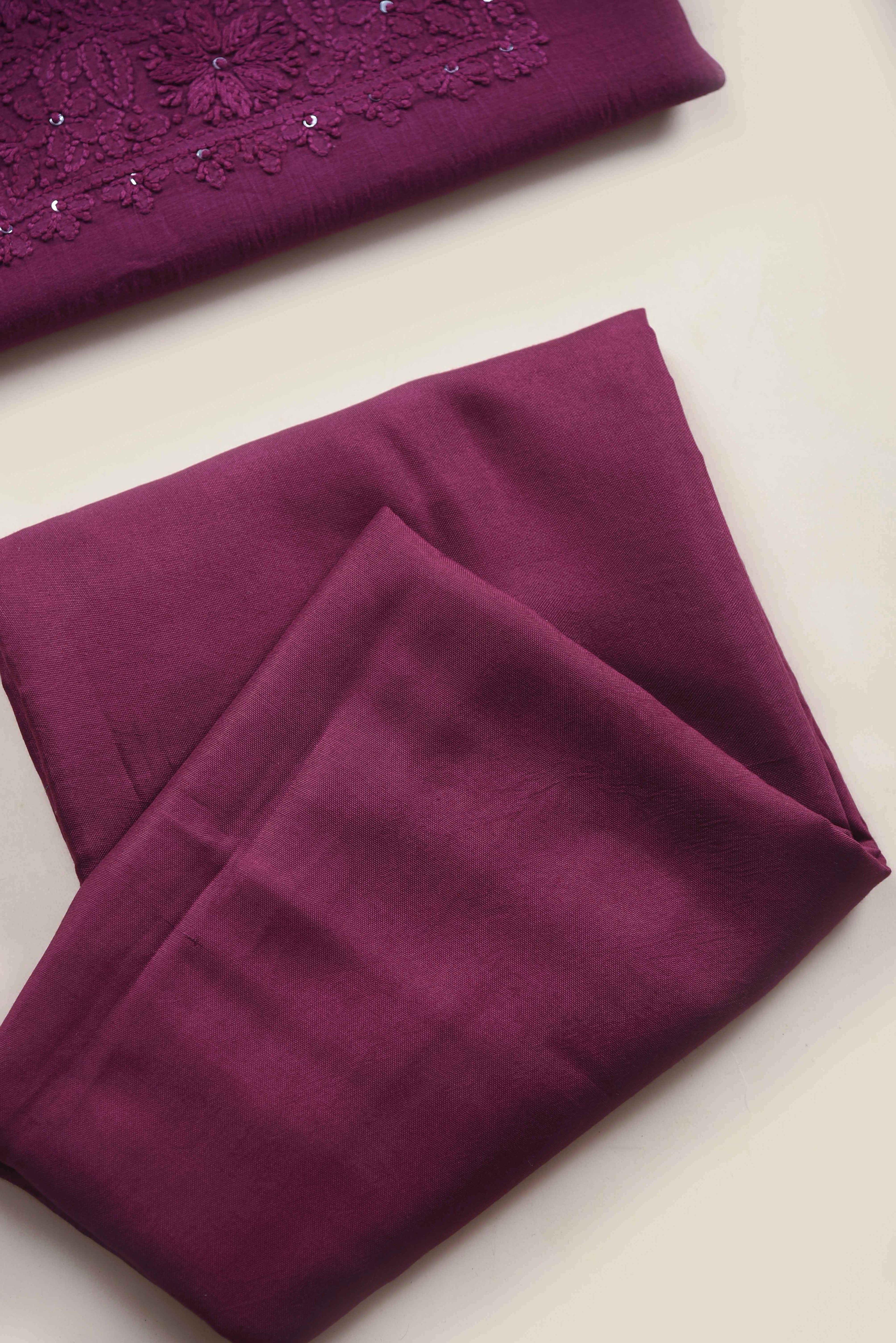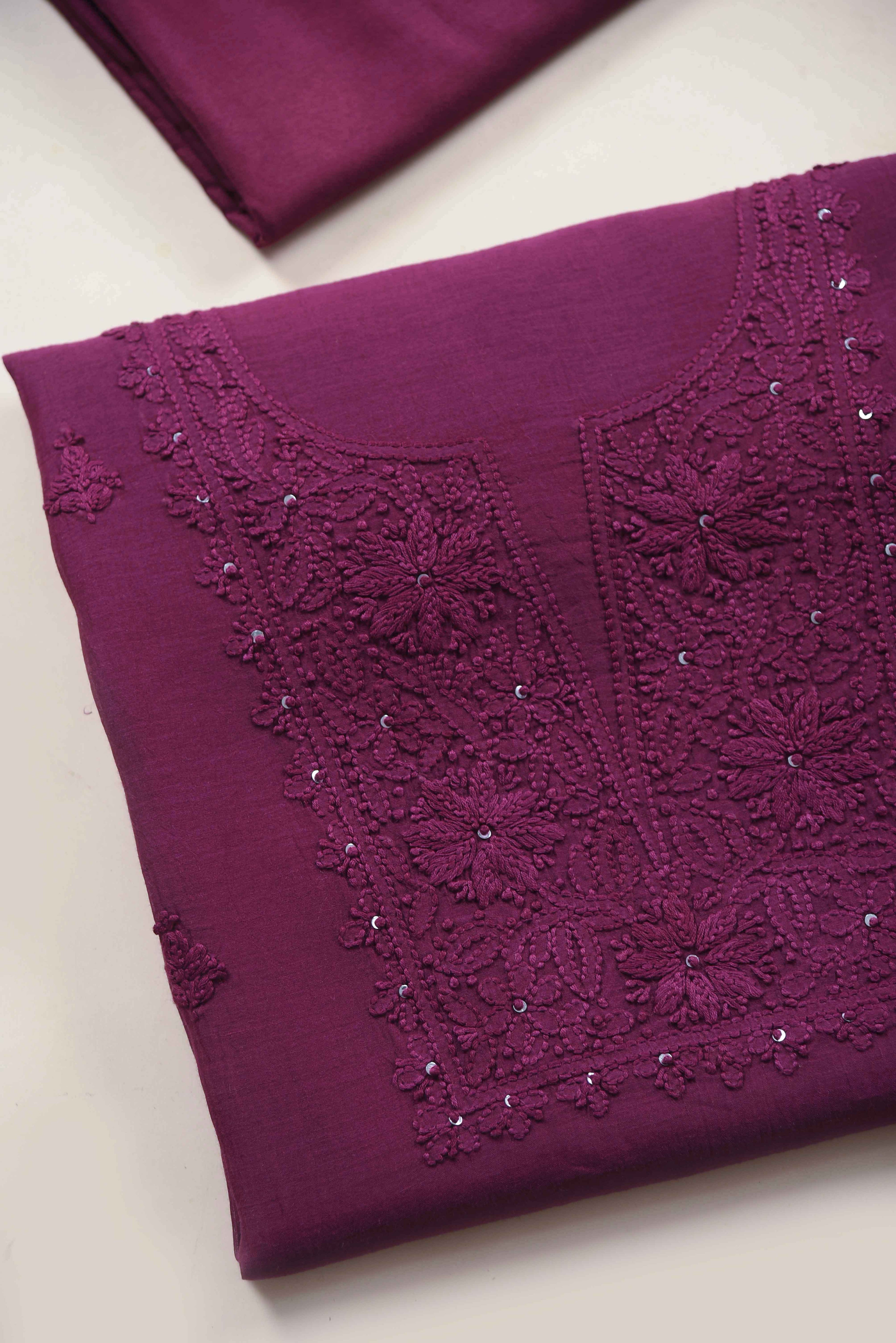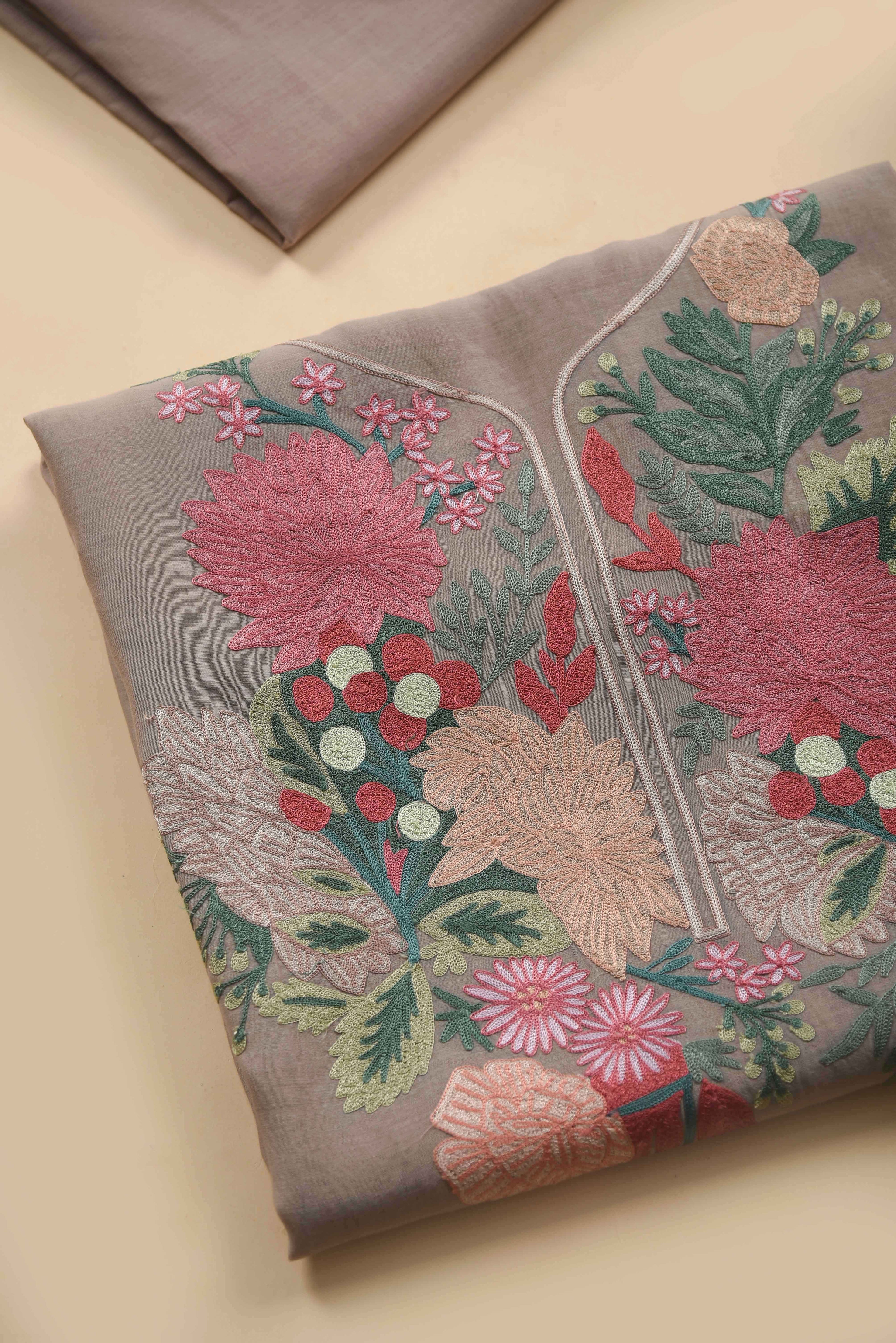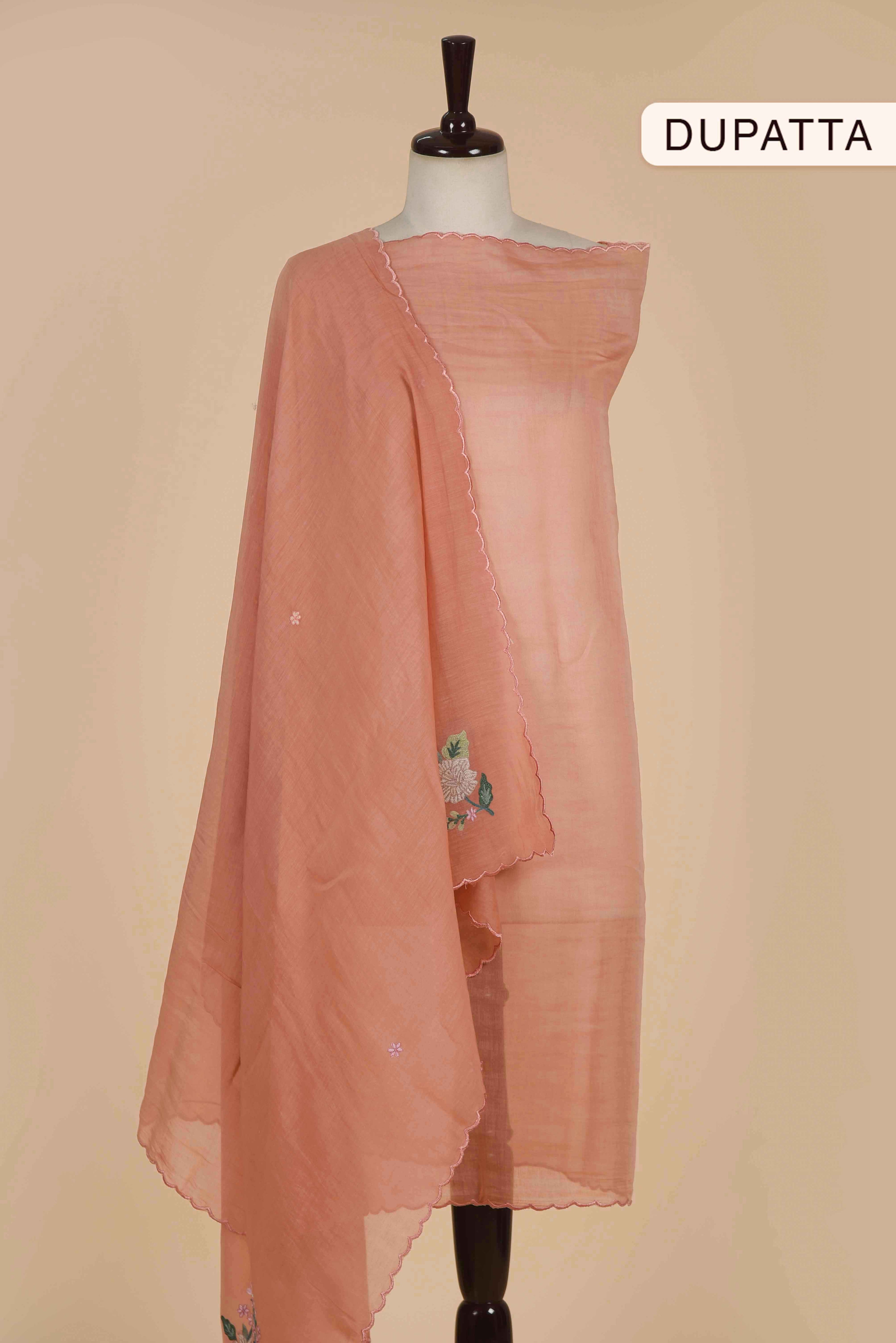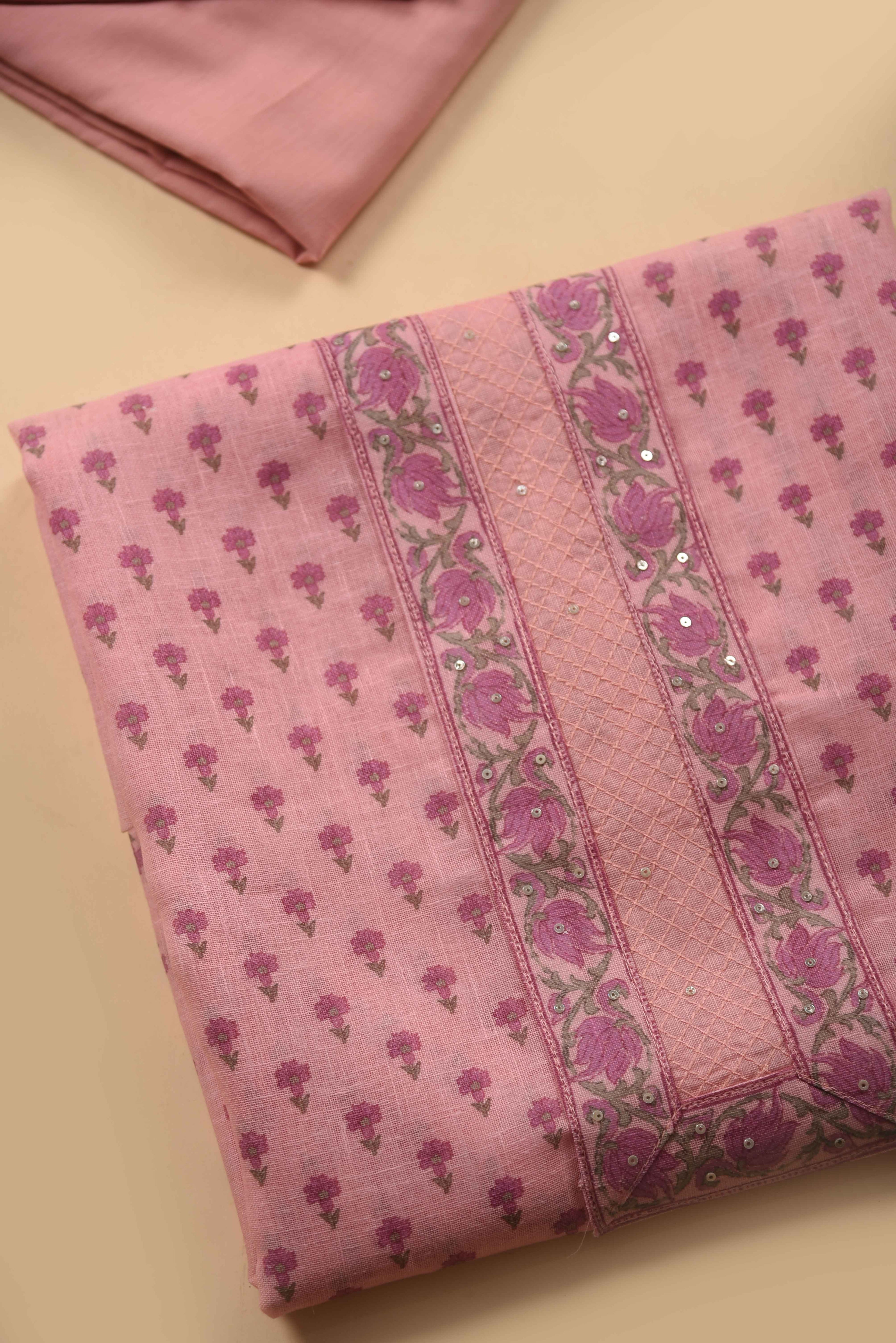 from 674 reviewsLight Mauve Mul Chanderi Embroidered Unstitched Suit Fabric Set With Mul Chanderi Embroidered Dupatta