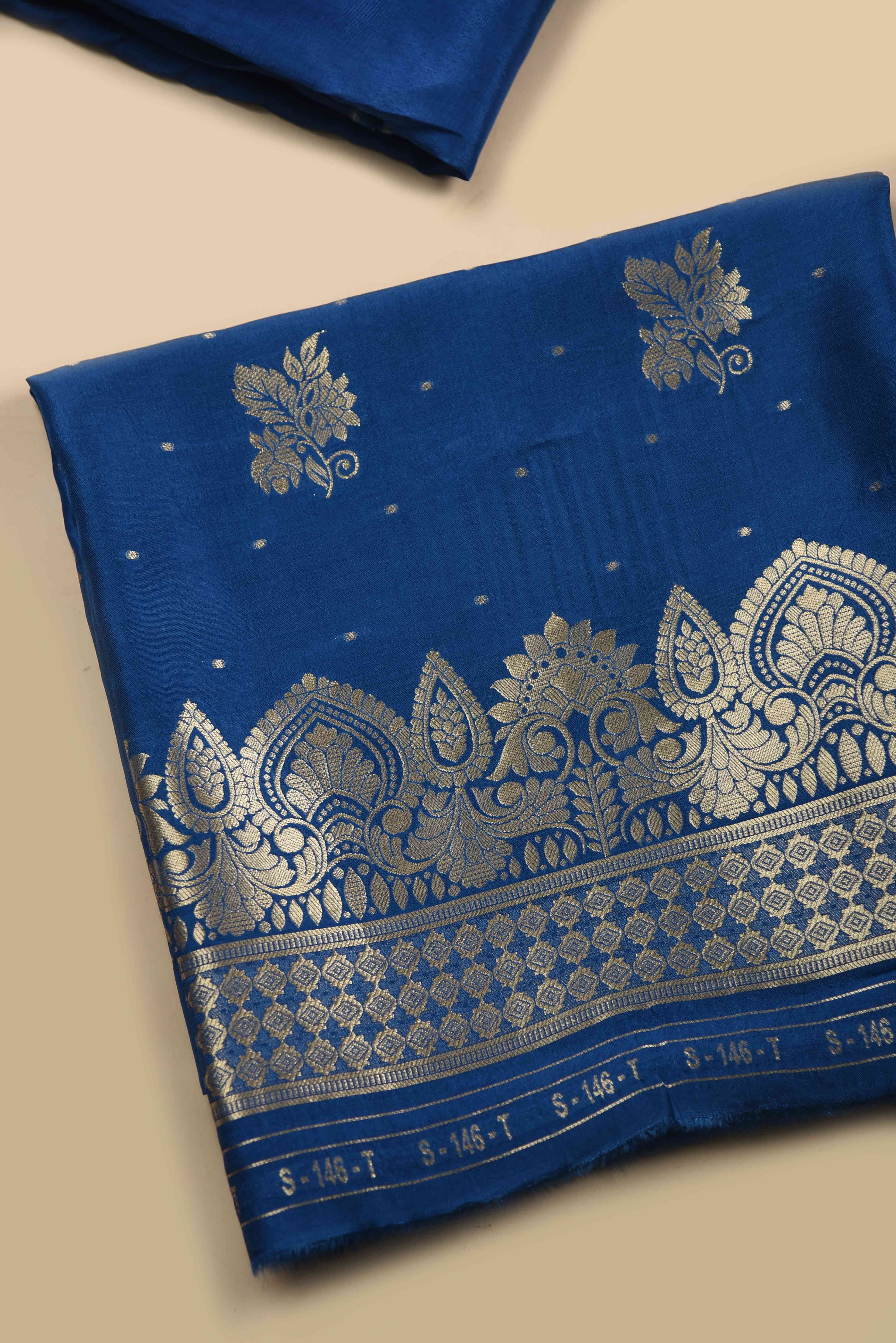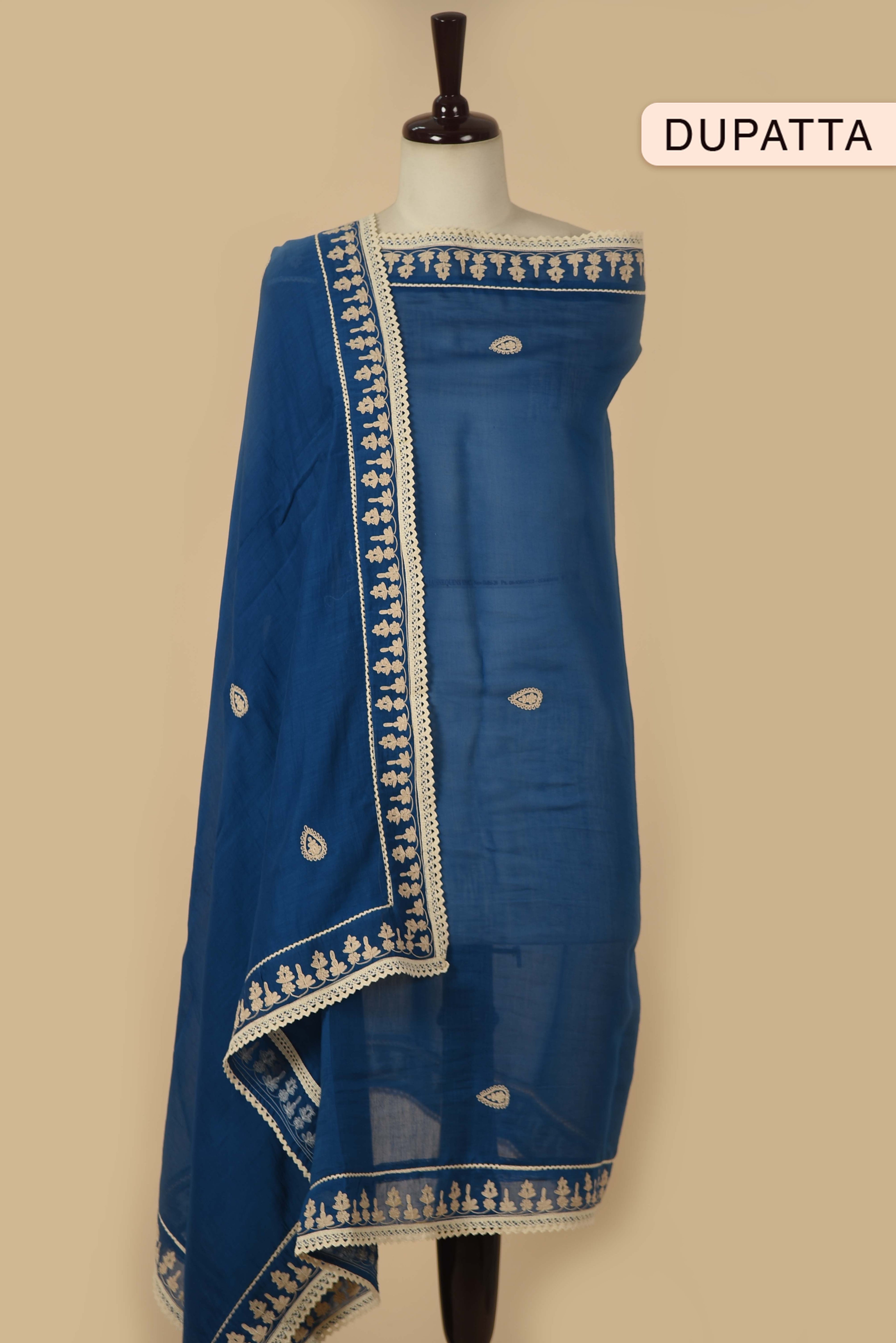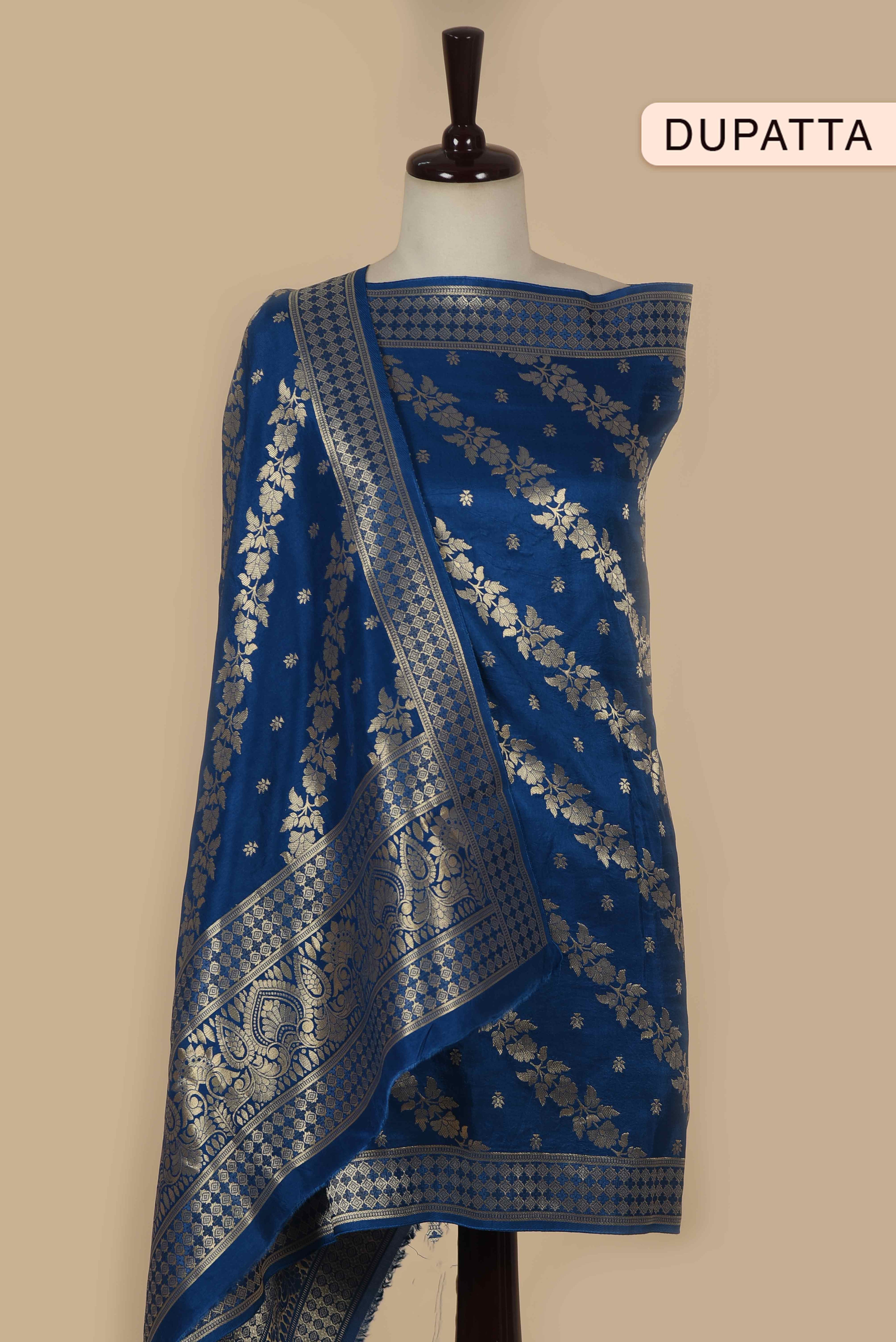 Black Cotton Printed Unstitched Suit Fabric Set With Printed Cotton Dupatta