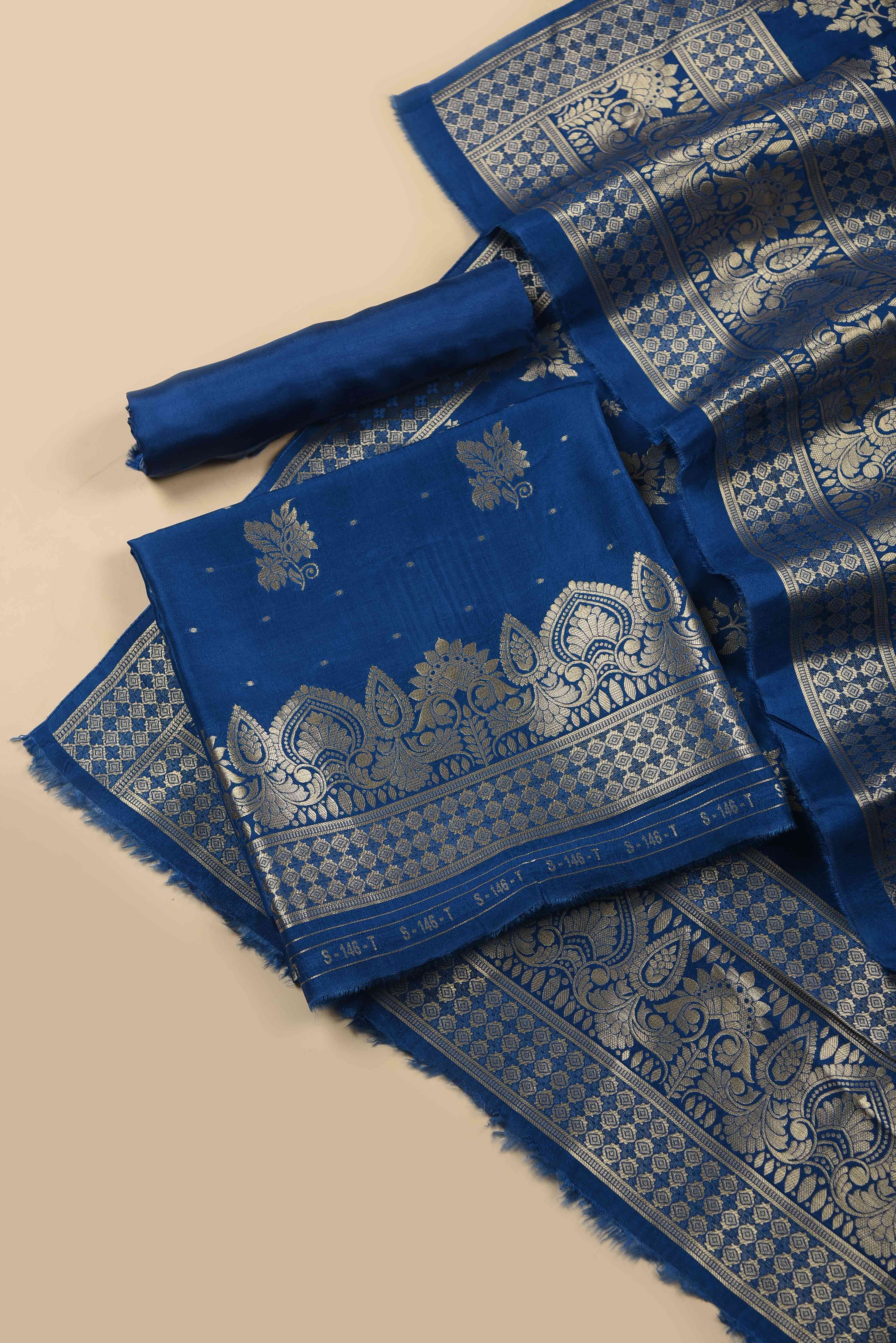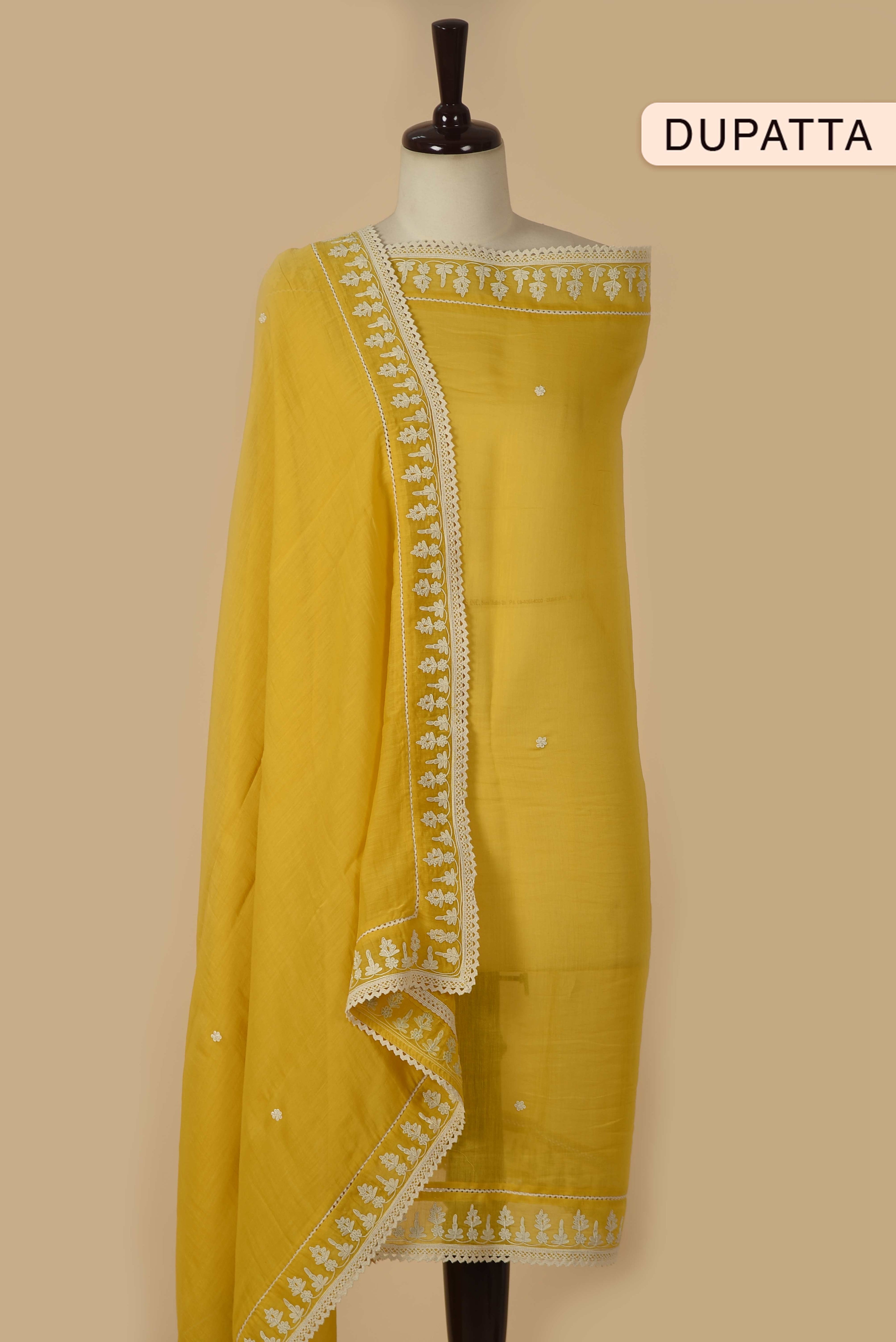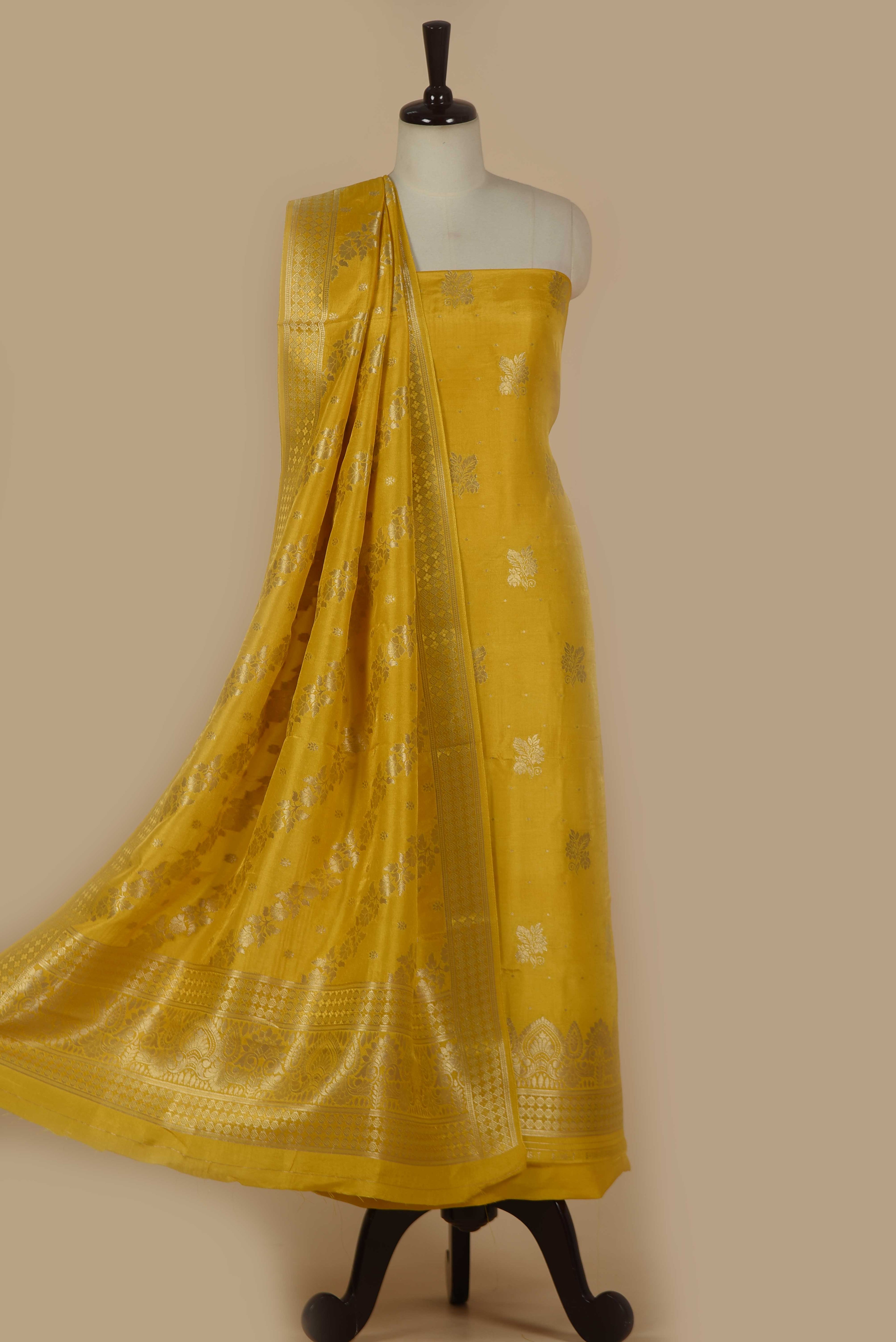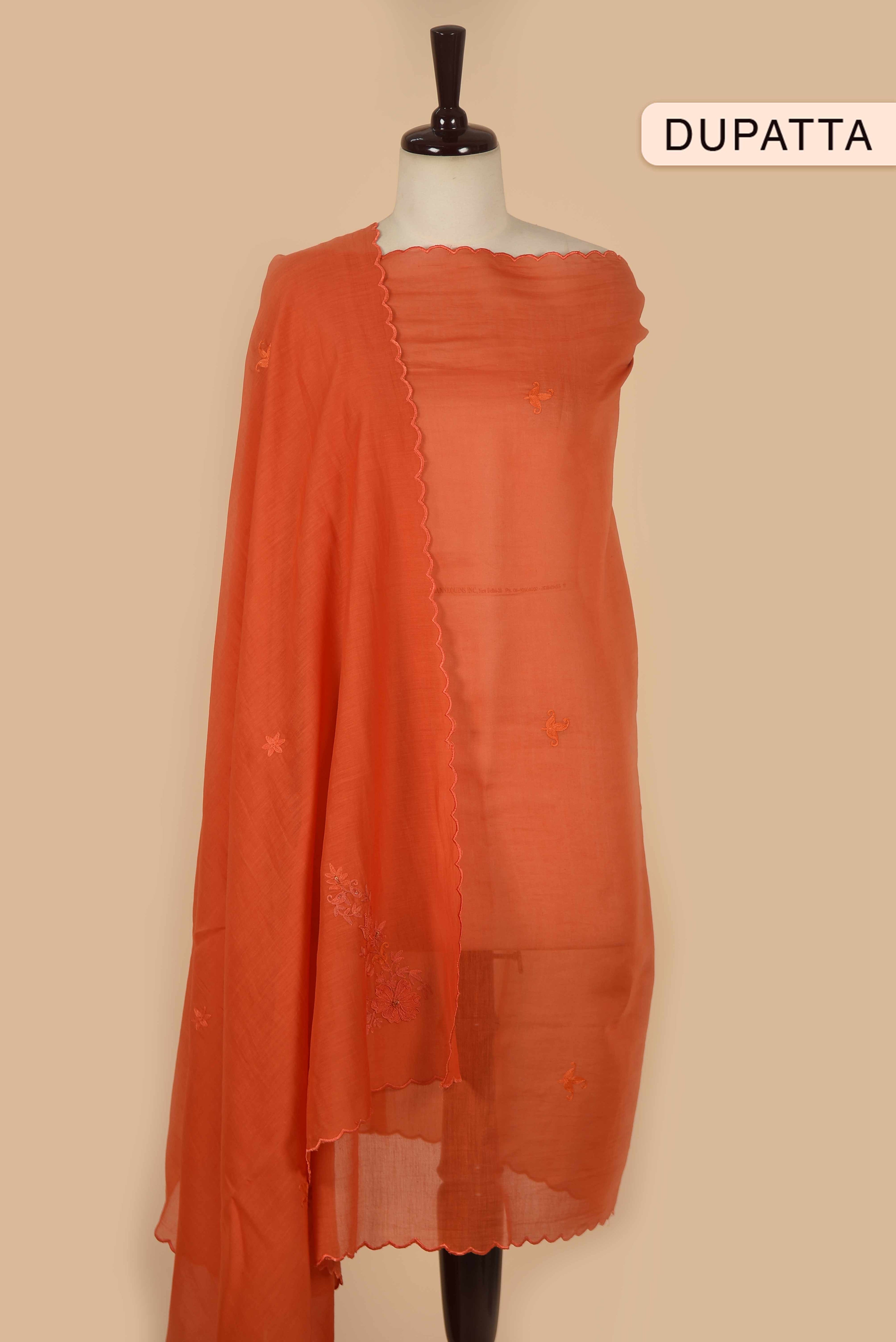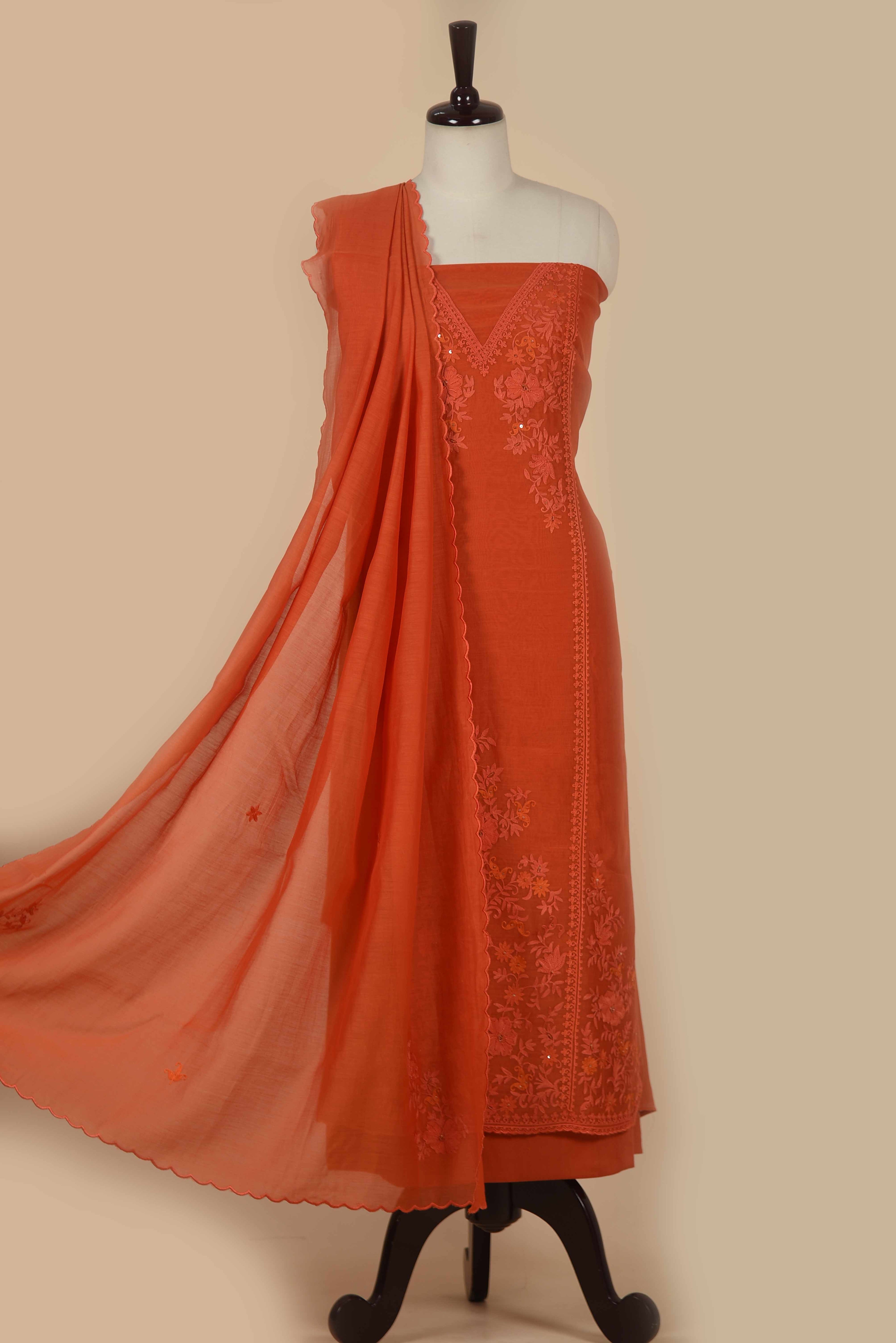 Red Linen Silk Blend Woven Unstitched Suit Fabric Set With Linen Silk Blend Woven Dupatta