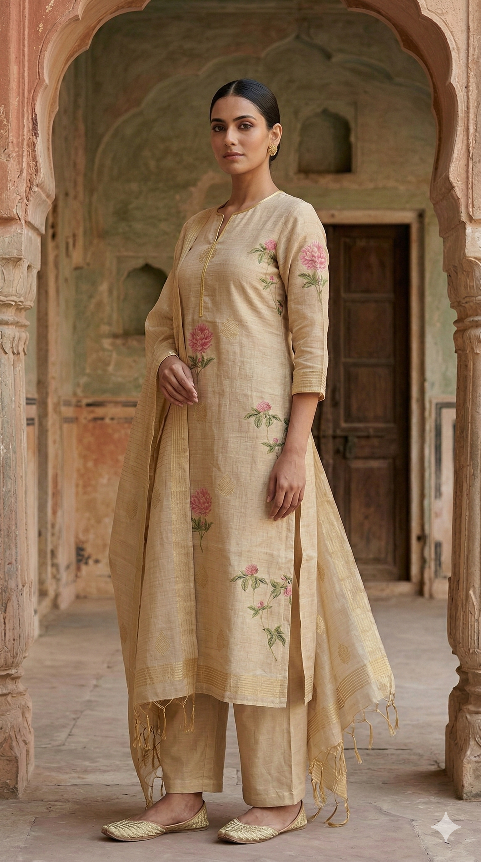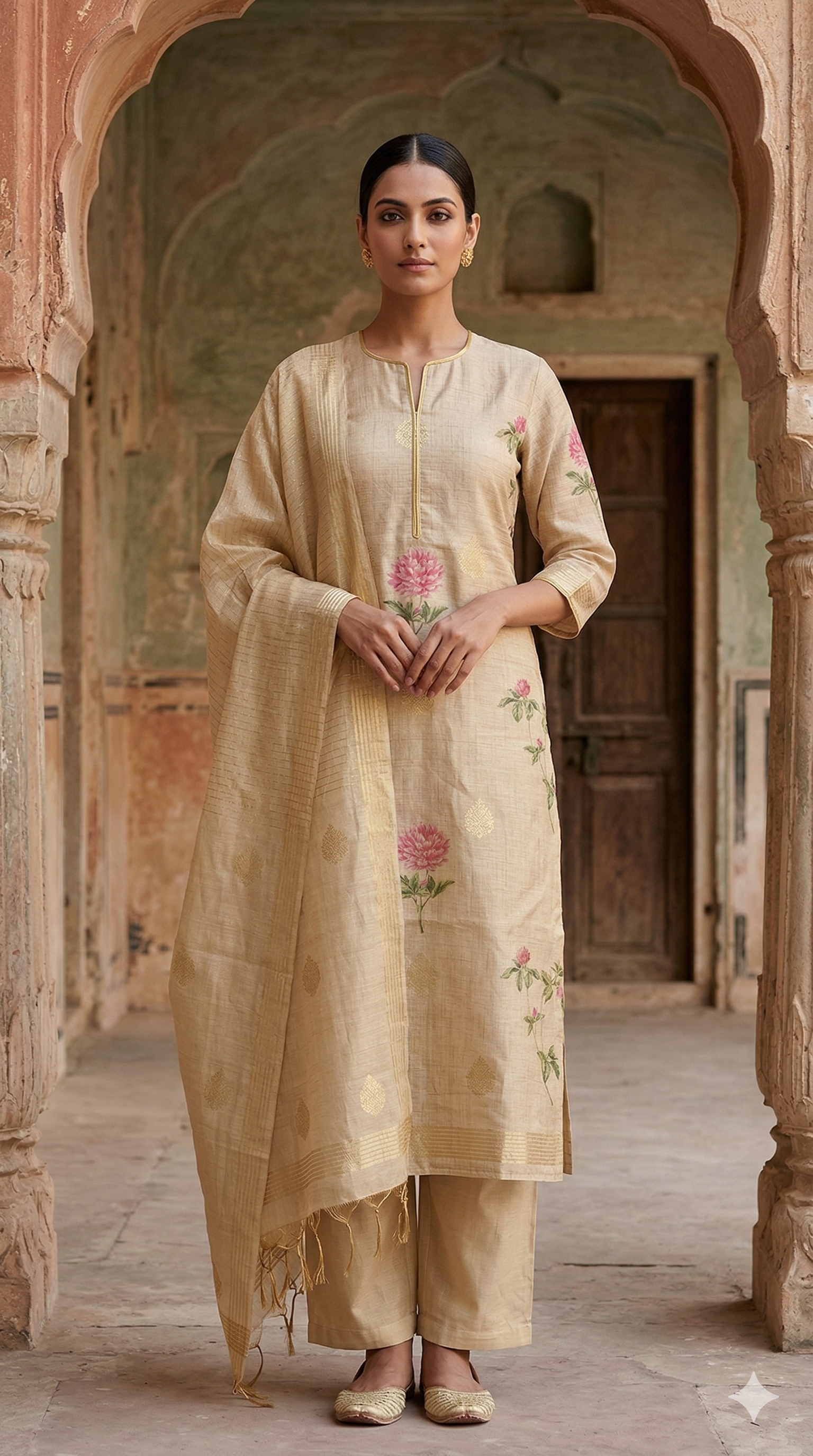 The fabric is beautiful and durable. The embroidery work is authentic. The suit was exactly as shown in the picture. Thank you.