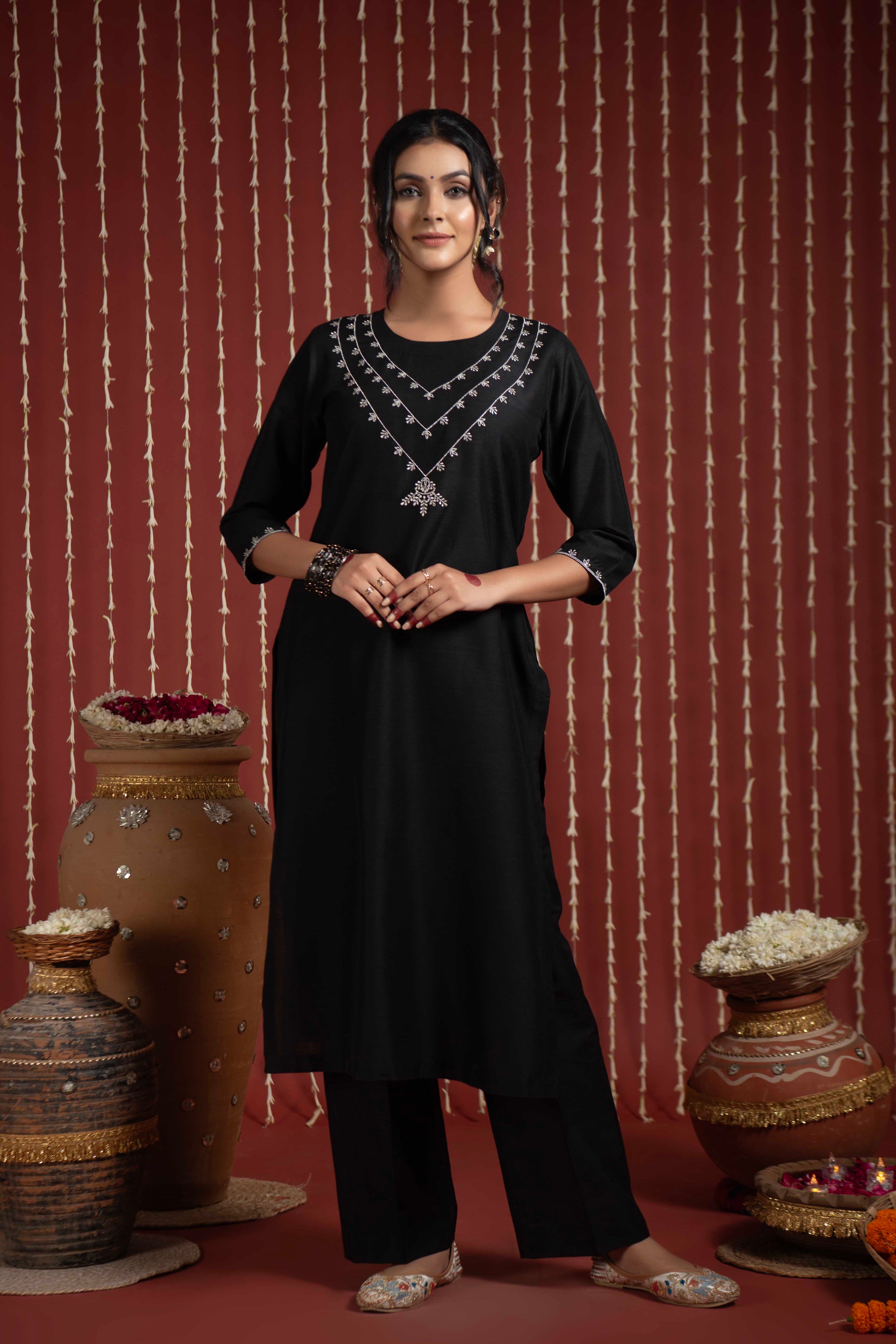 Black Winter Wear Wool Spun Blend Tribal Embroidered Co-ord Set-Regular Fit