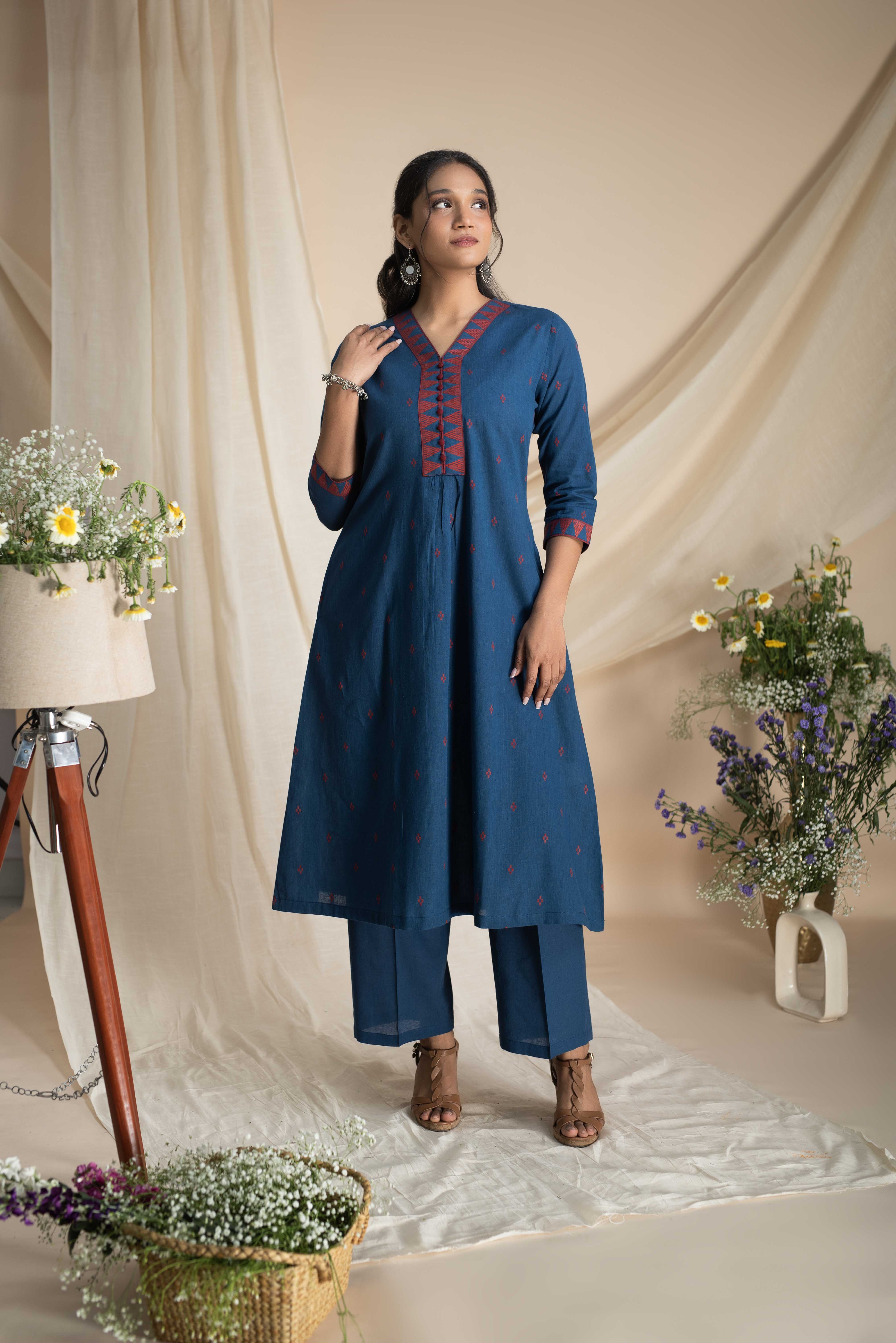 Paulsons Pick: Blue Cotton Pure Ready-To-Wear A-Line Woven Kurta Set With Pant