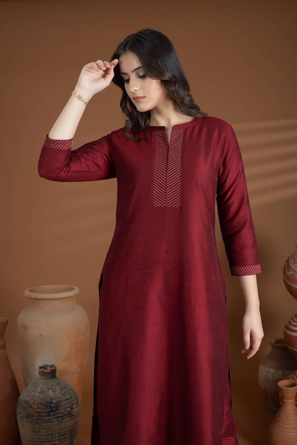 Accessories help transition your kurta set seamlessly from day to evening.