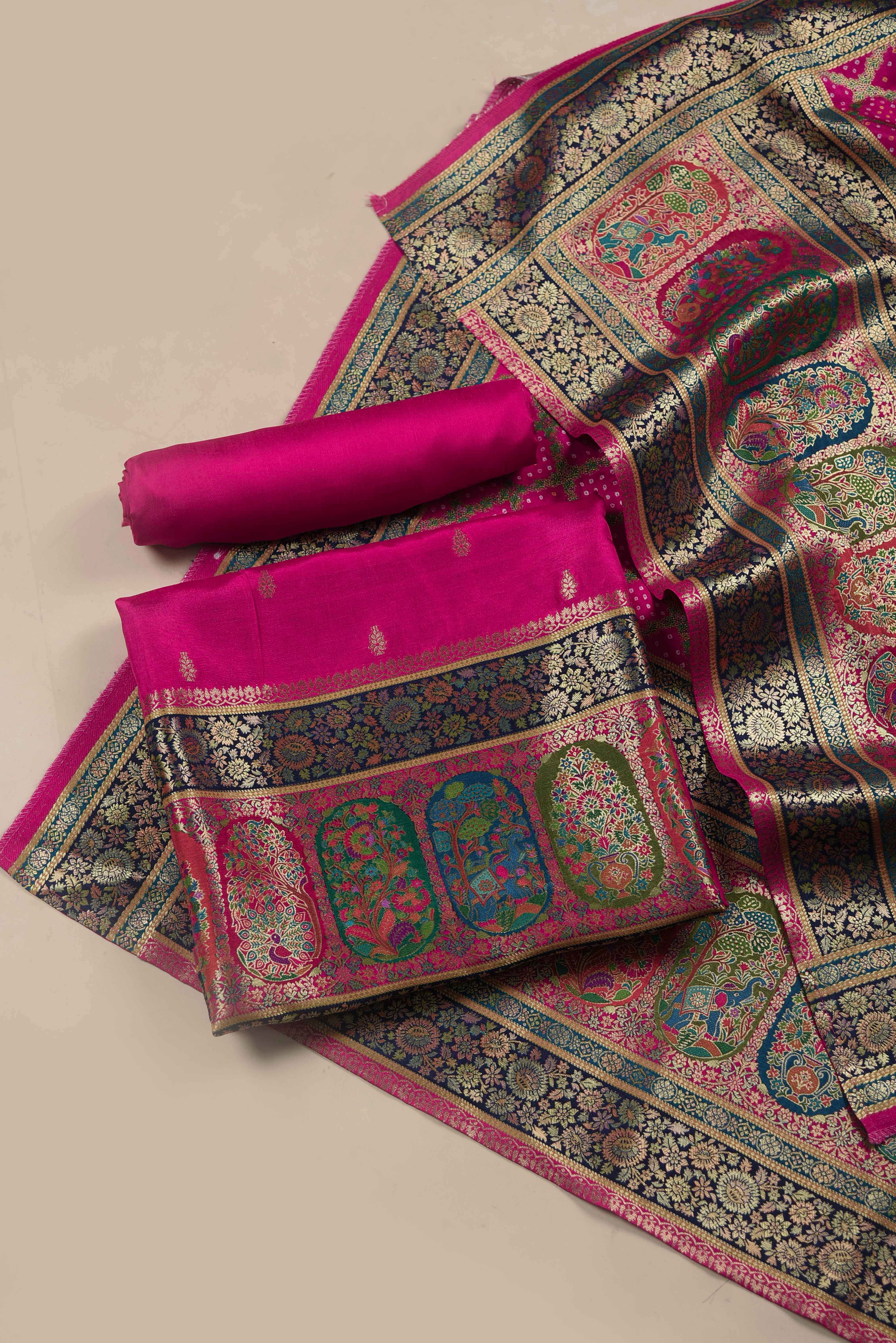 If you’re shopping for unstitched winter suit fabric for women online India, focus on heavier weaves that hold structure and warmth.