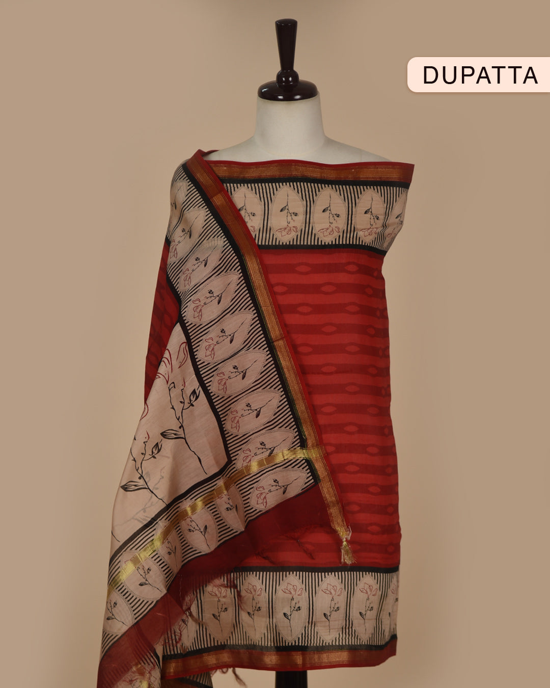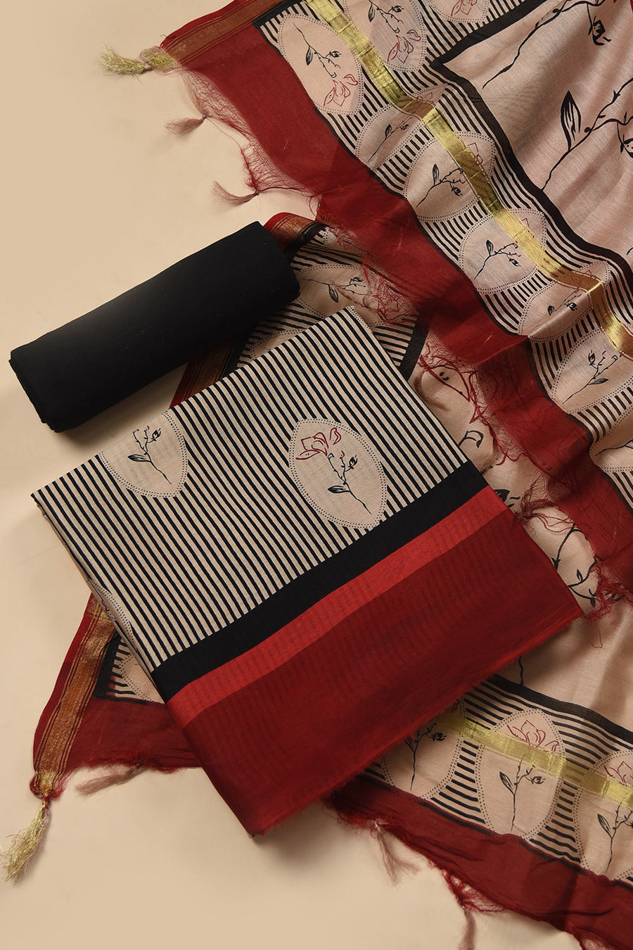 Maroon Banarasi Chanderi Woven Unstitched Suit Fabric Set With Banarasi Chanderi Woven Dupatta