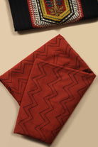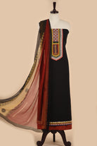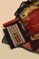 Black With Maroon Pure Cotton Hand Block Printed With Embroidery Unstitched Suit Fabric Set WIth Chiffon Hand Block Printed Dupatta