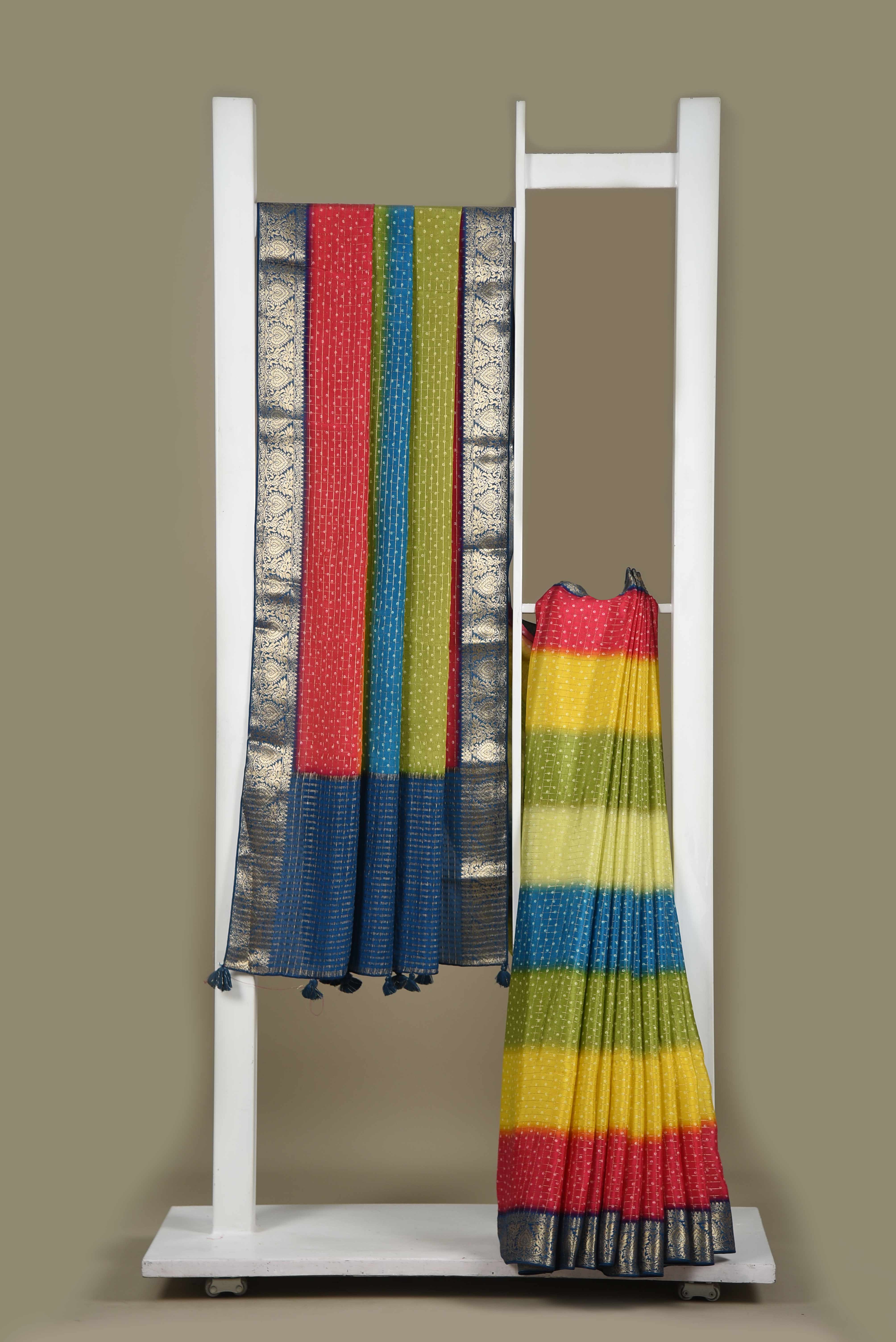 - Blue Georgette Woven Saree with Matching Blouse Celebrate timeless elegance with our Blue Georgette Saree, crafted from soft and breathable georgette fabric for a graceful and comfortable drape.