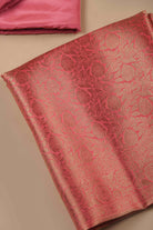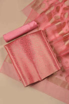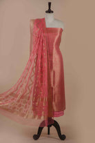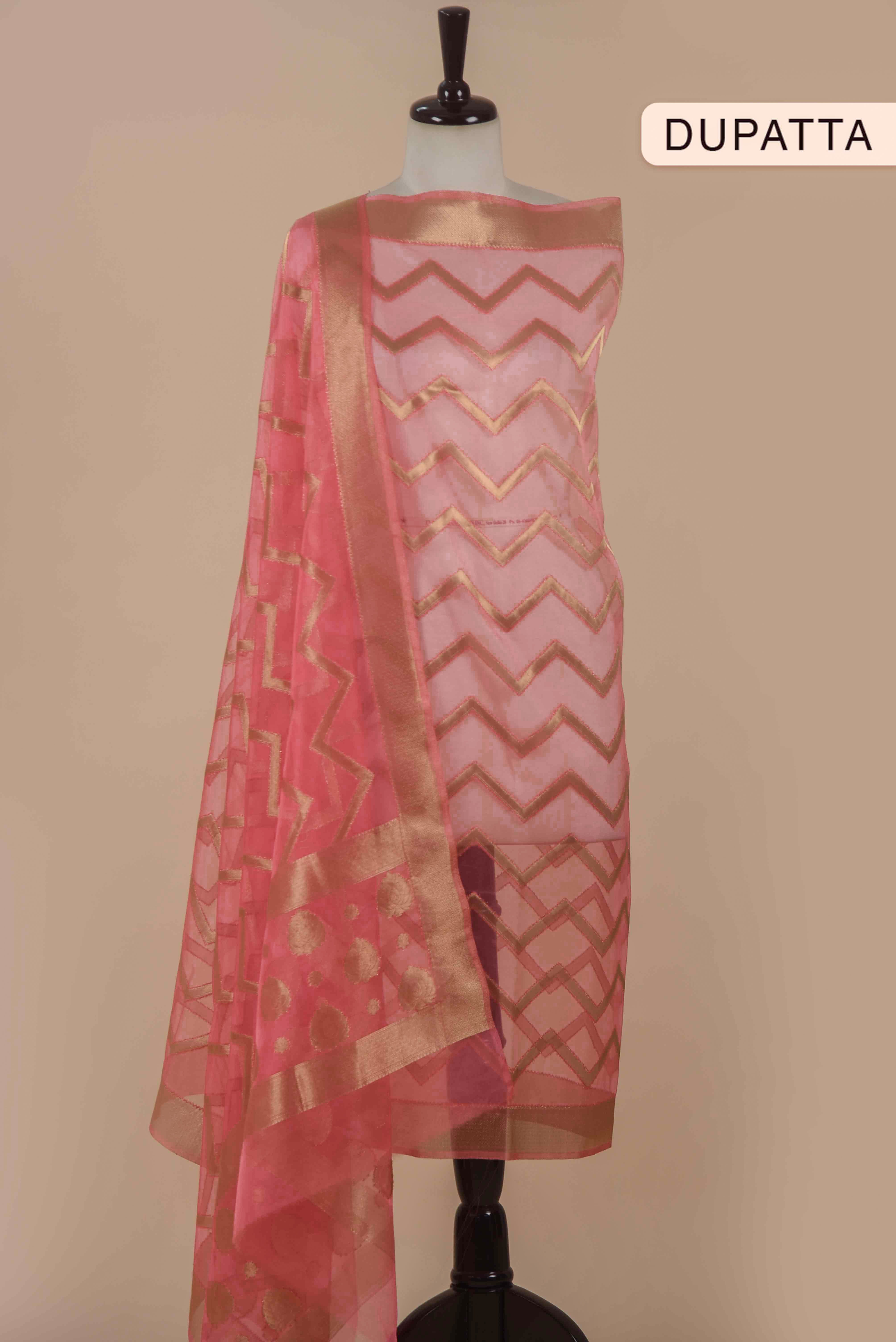 Carrot Pink Fine Banarasi Silk Woven Unstitched Suit Fabric Set With Organza Woven Dupatta