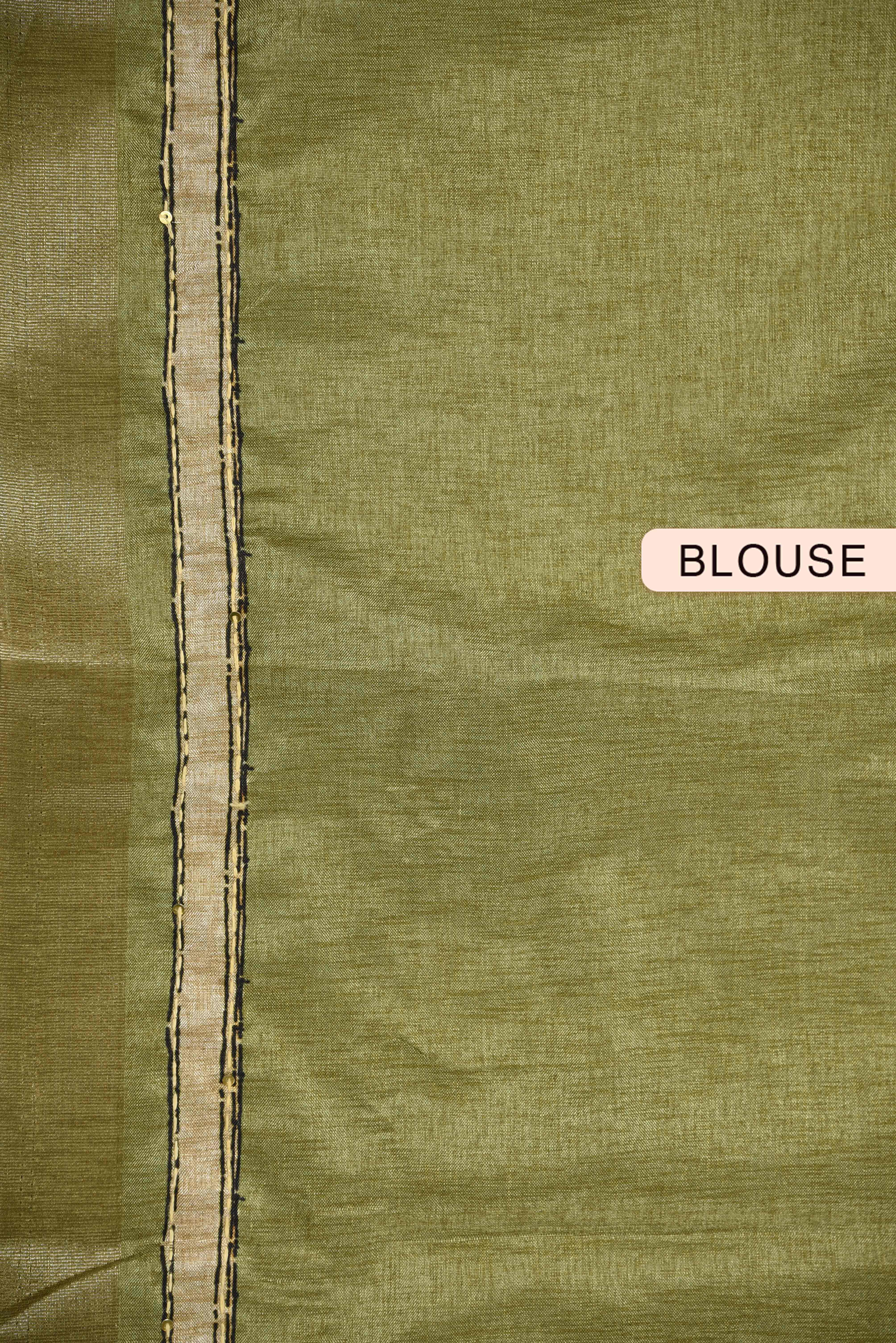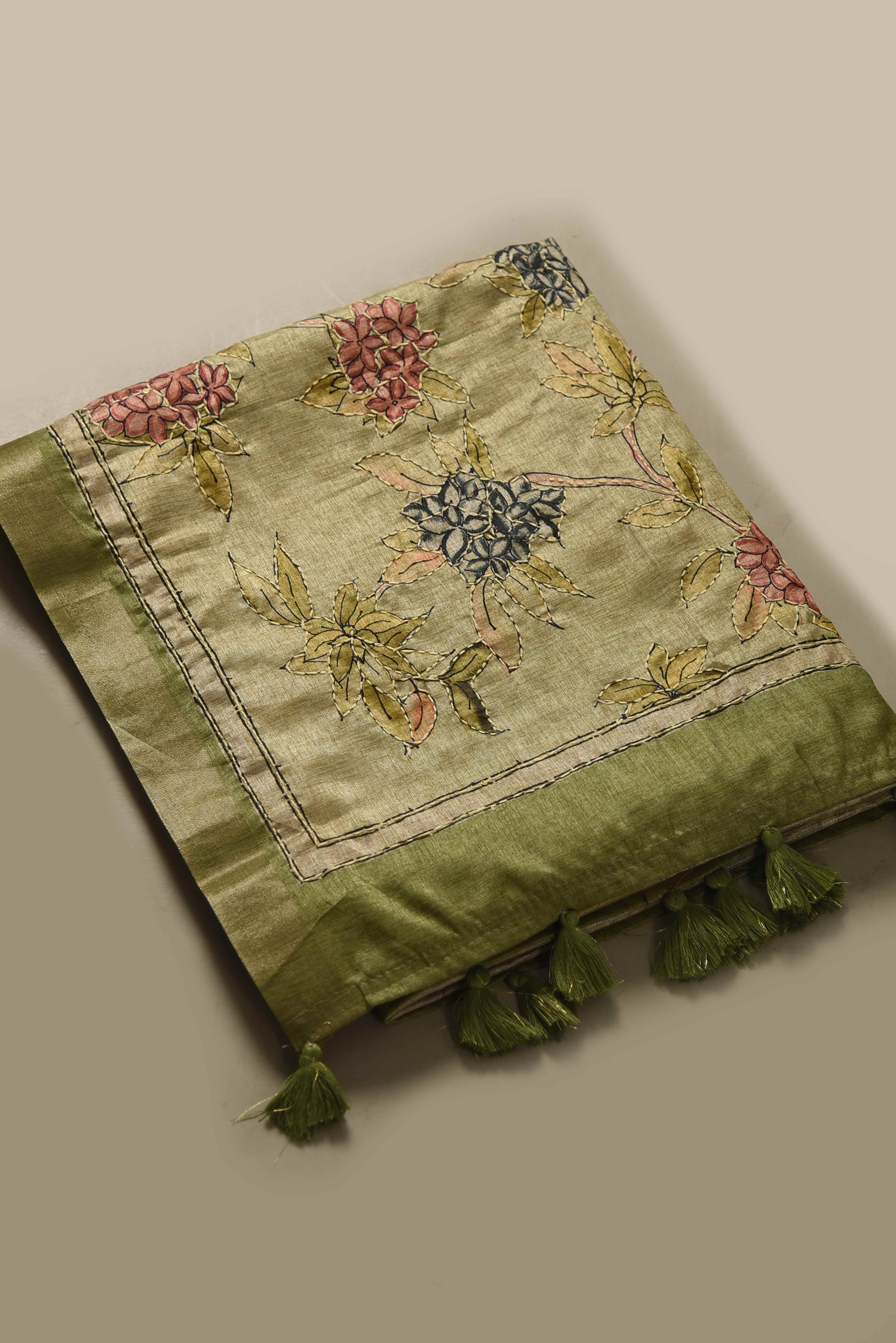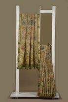 Green Cotton Silk Blend Printed & Embroidered Saree with Matching Blouse