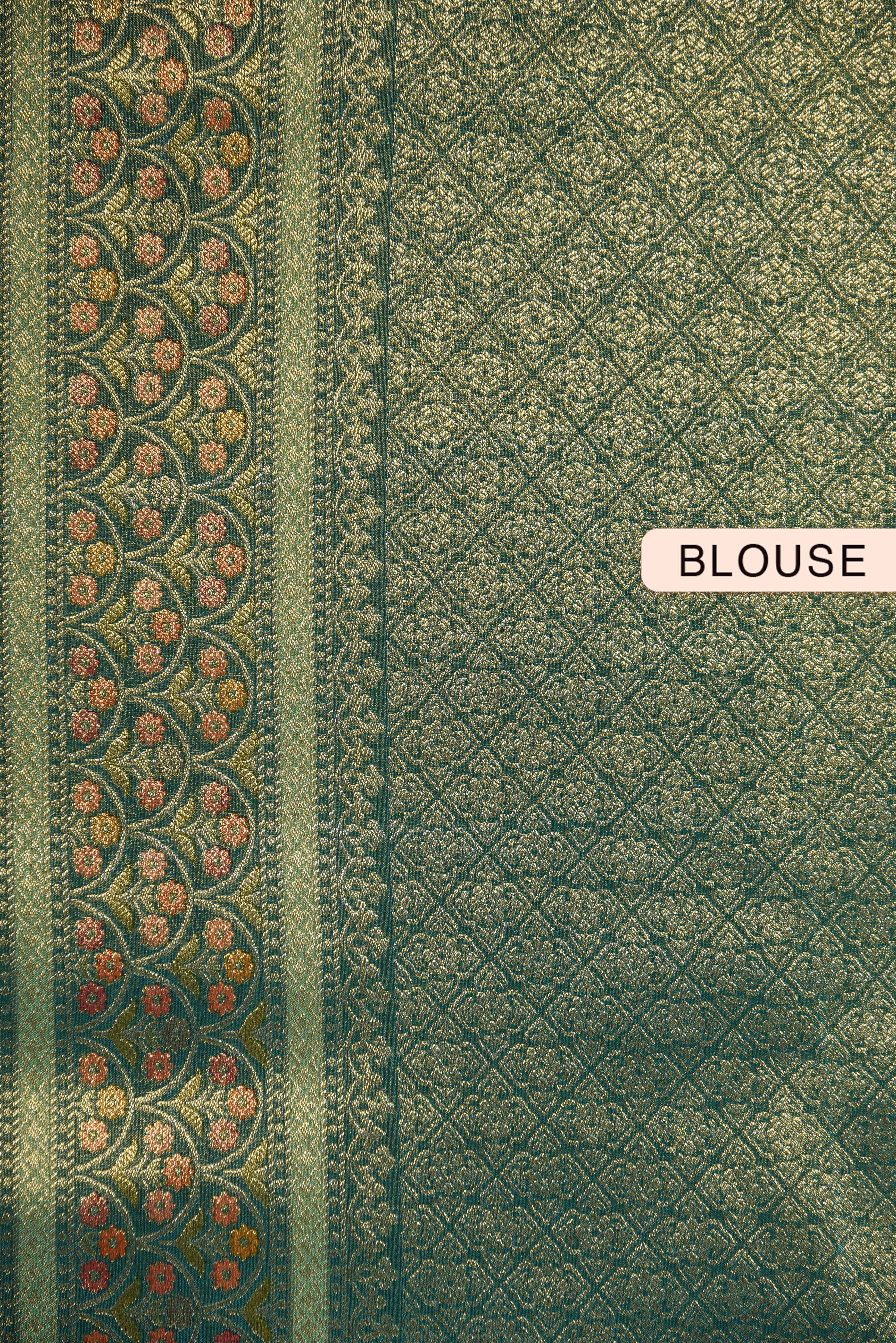 Green Tissue Silk Viscose Blend Woven Saree with Matching Blouse