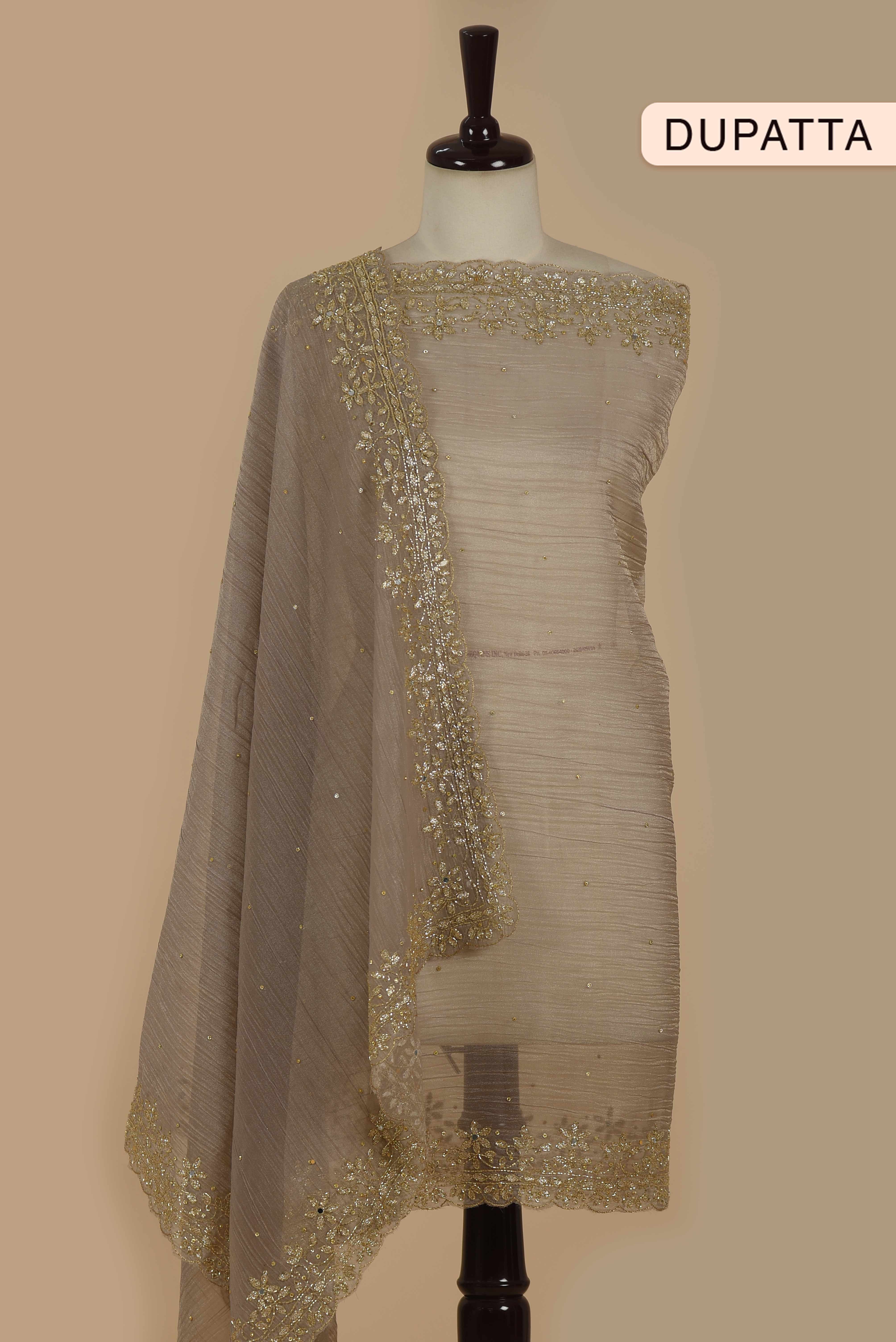 Light Gray Tissue Silk Blend Hand Embellished Unstitched Suit Fabric Set With Tissue Silk Dupatta