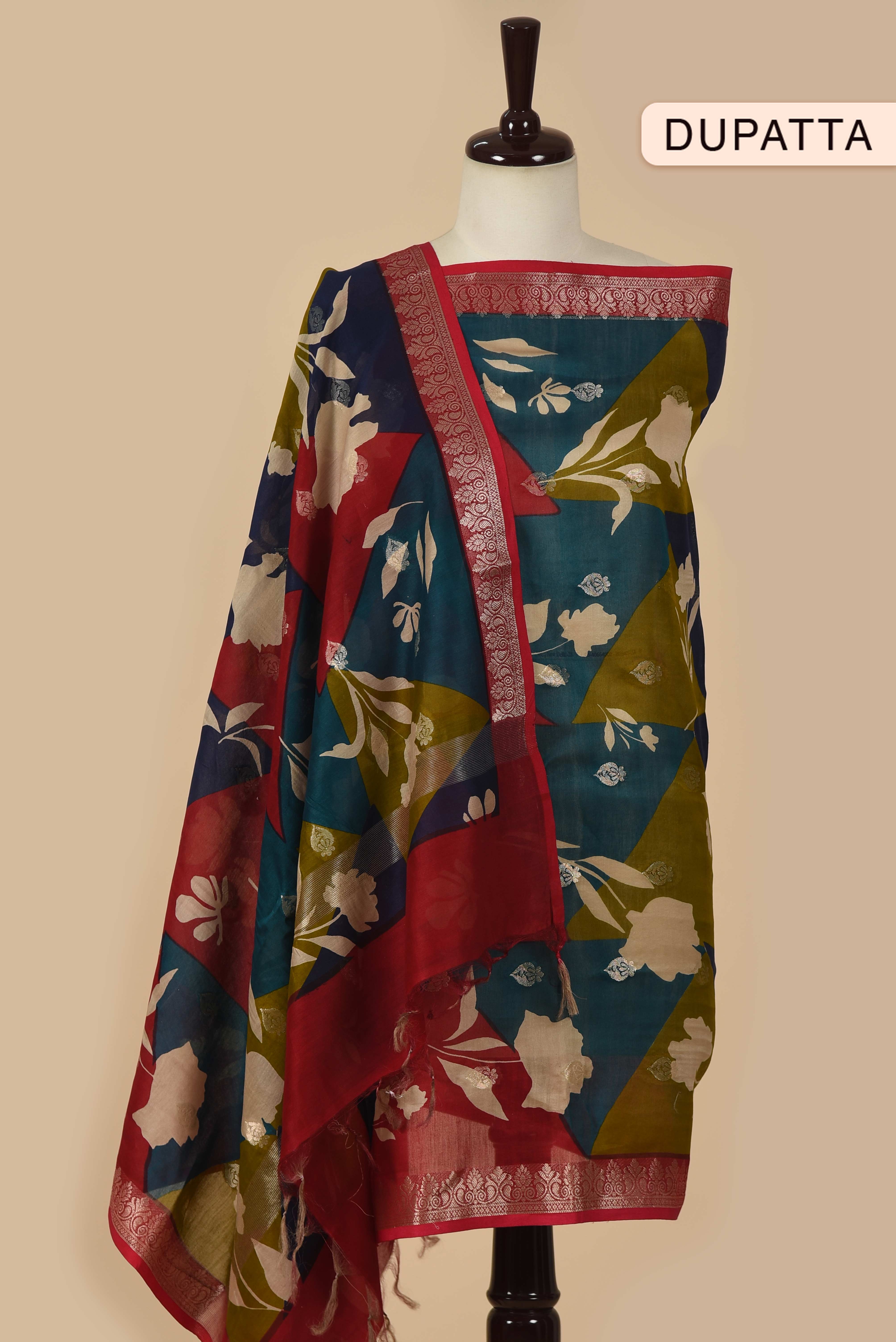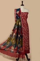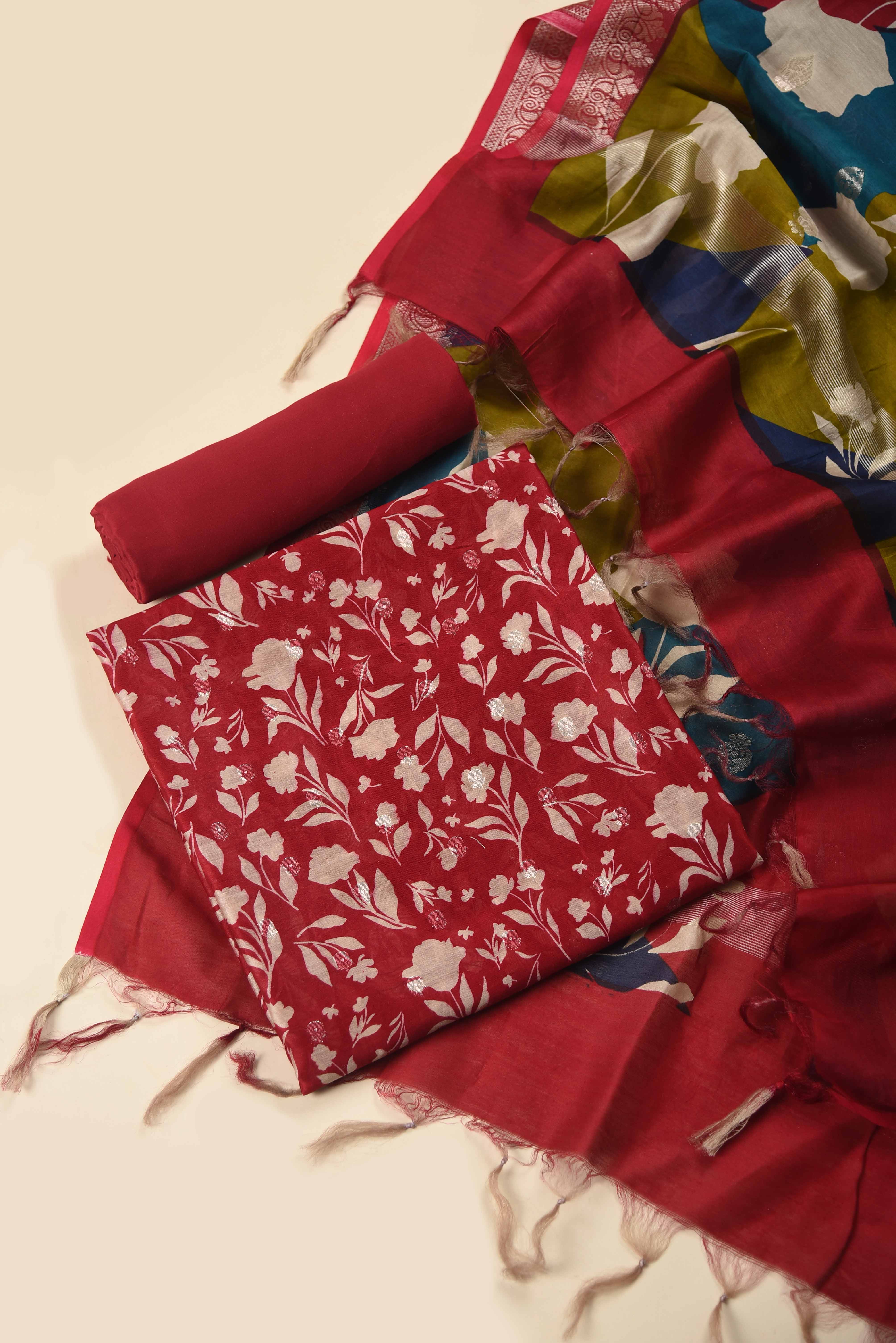 Maroon Chanderi Silk Printed & Woven Unstitched Suit Fabric Set with Matching Chanderi Printed Woven Dupatta
