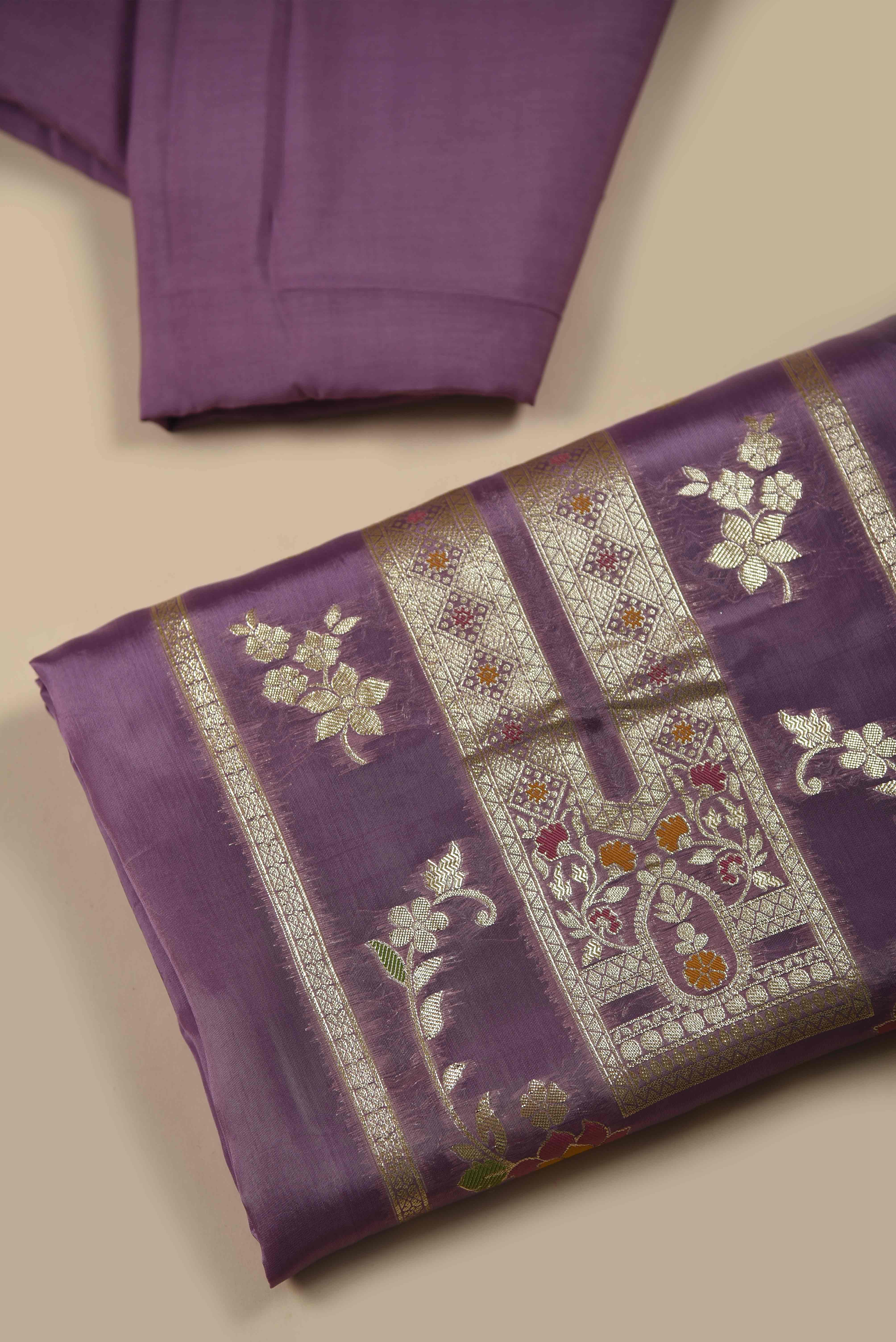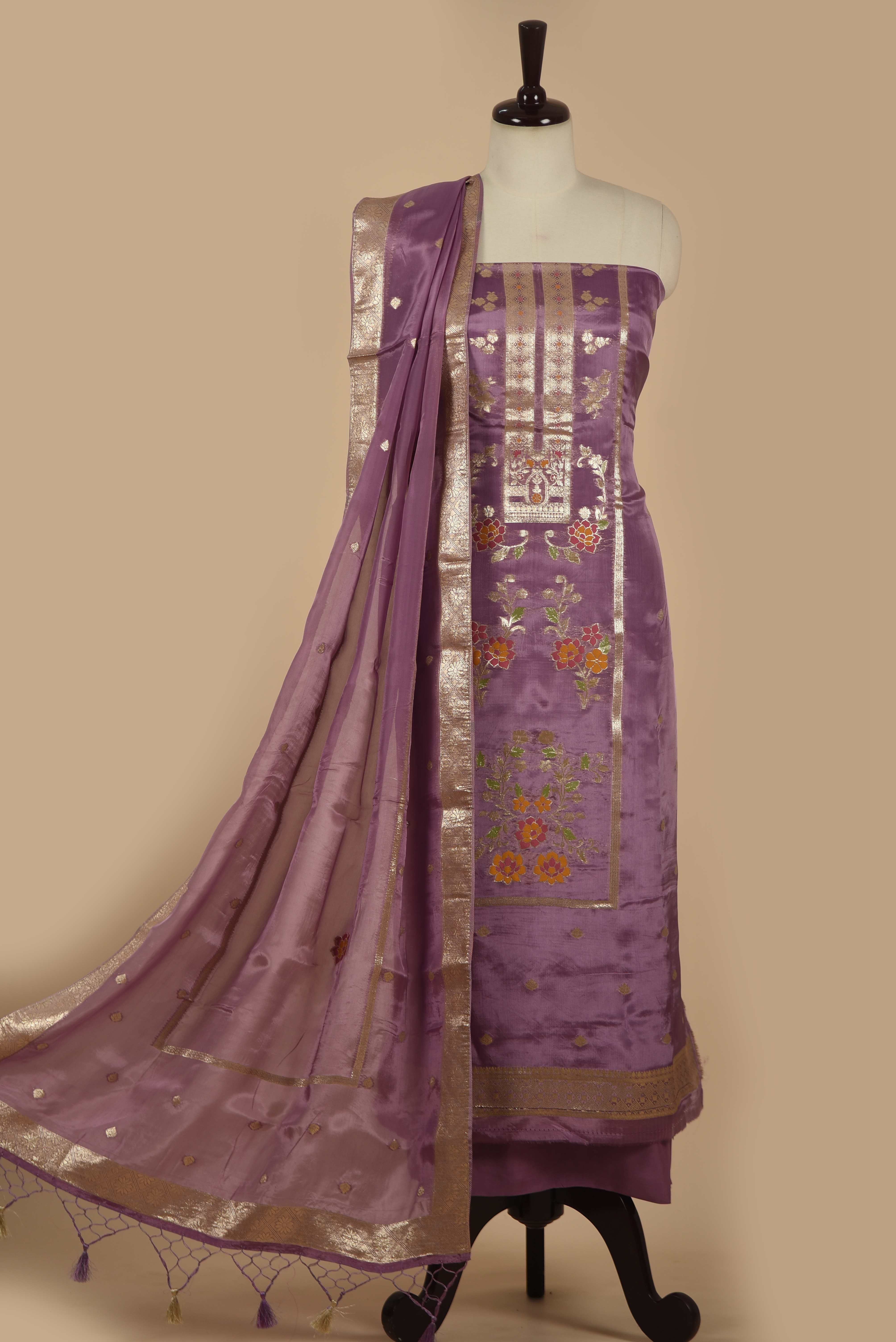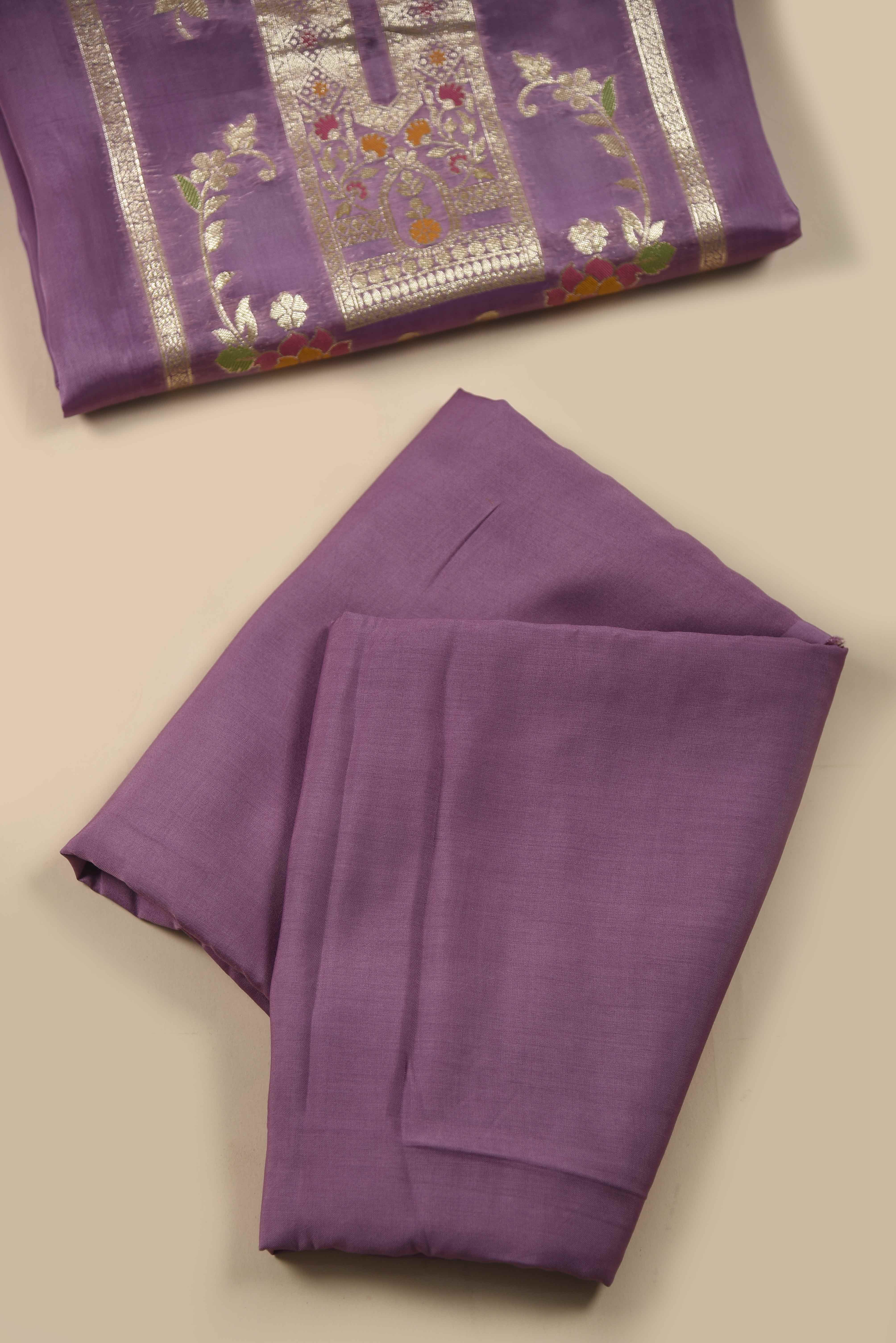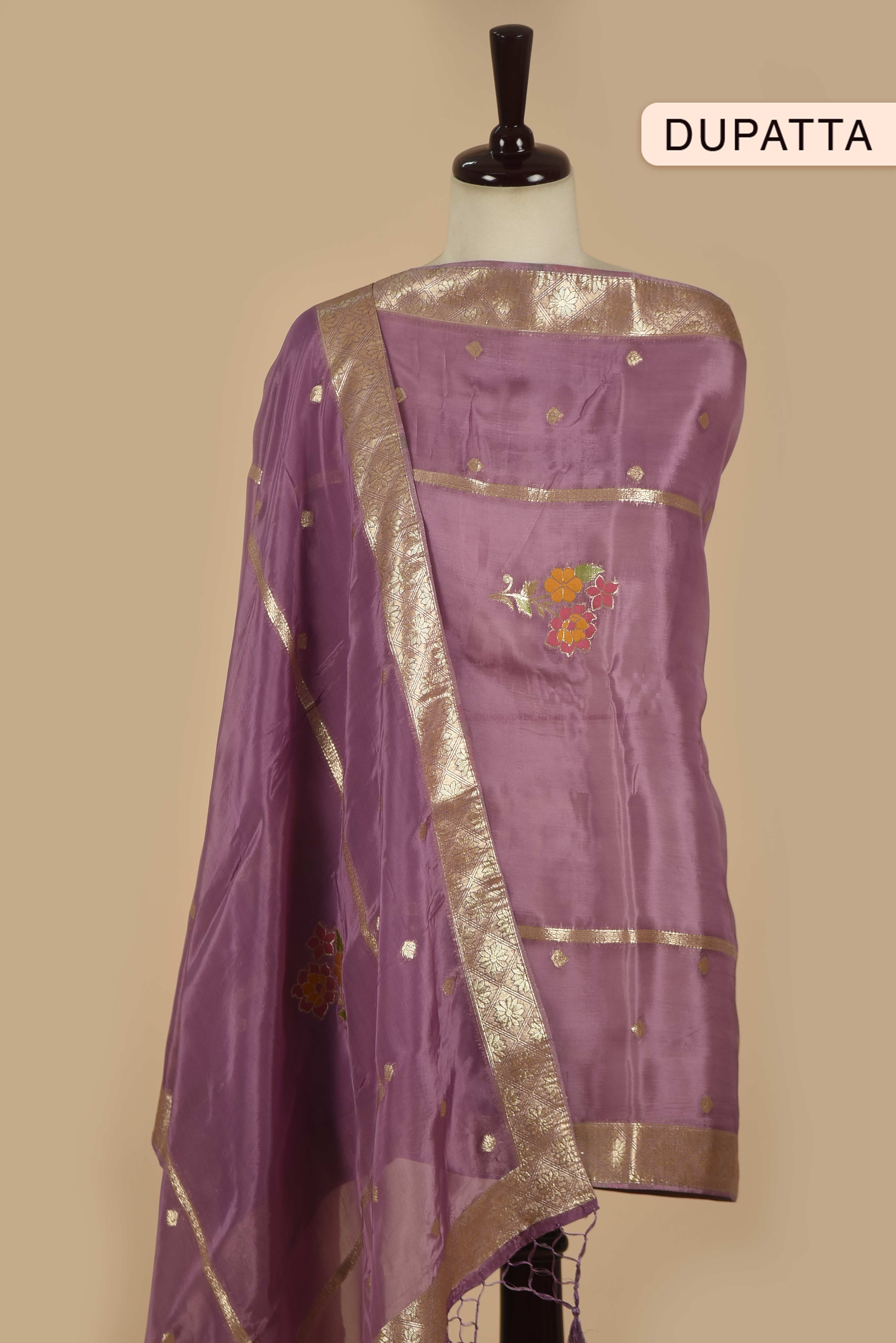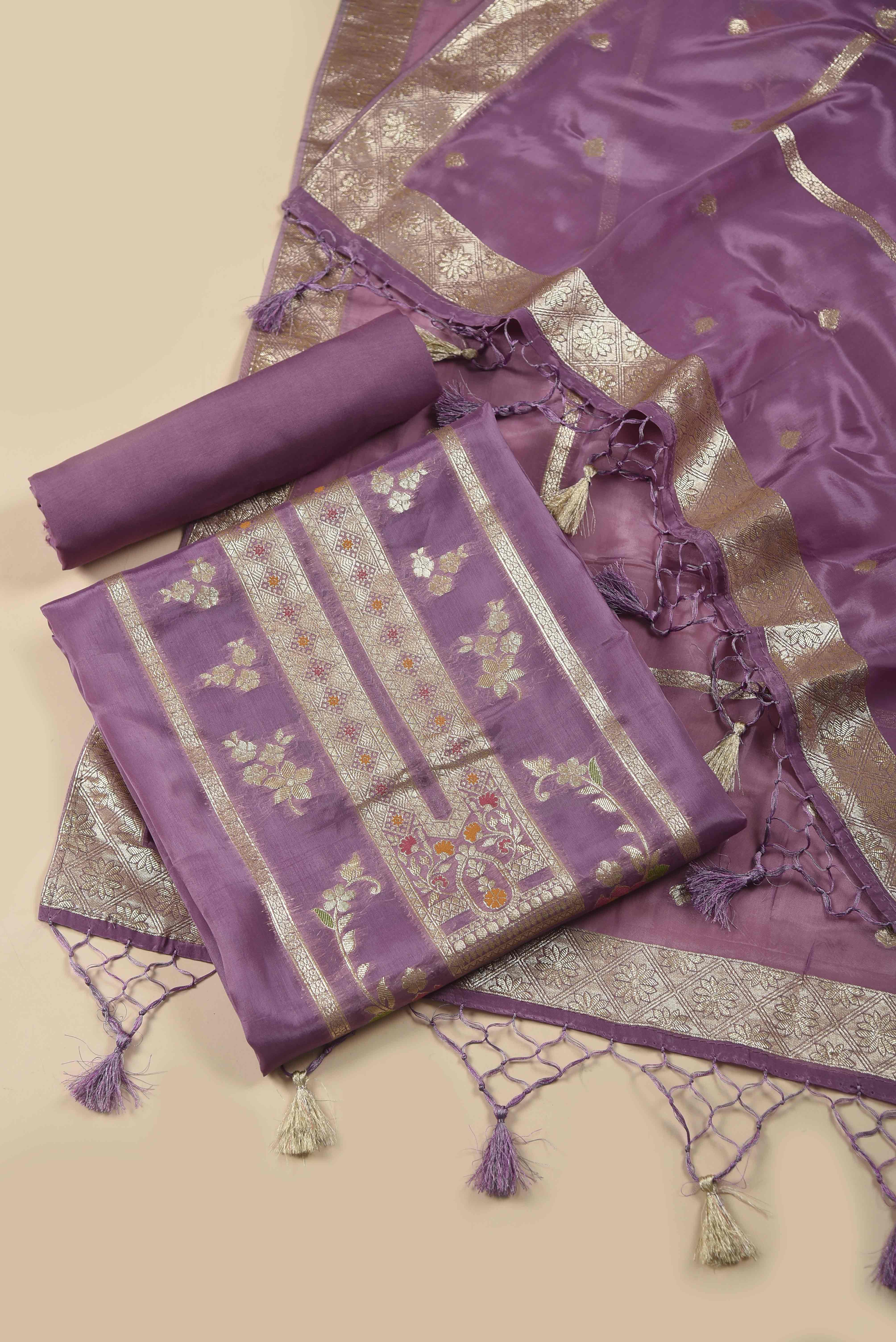 Mauve Organza Silk Woven Unstitched Suit Set with Organza Silk Dupatta