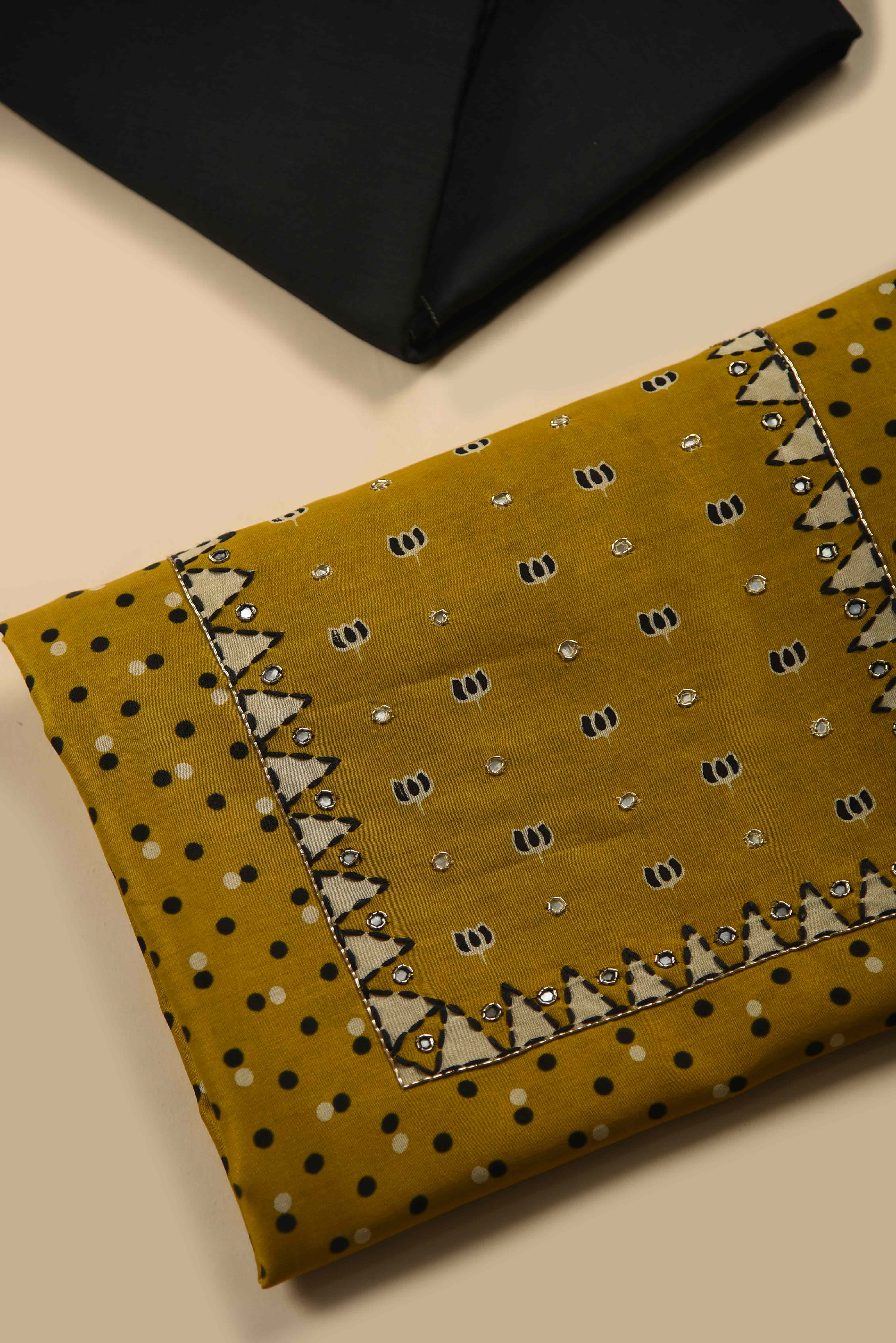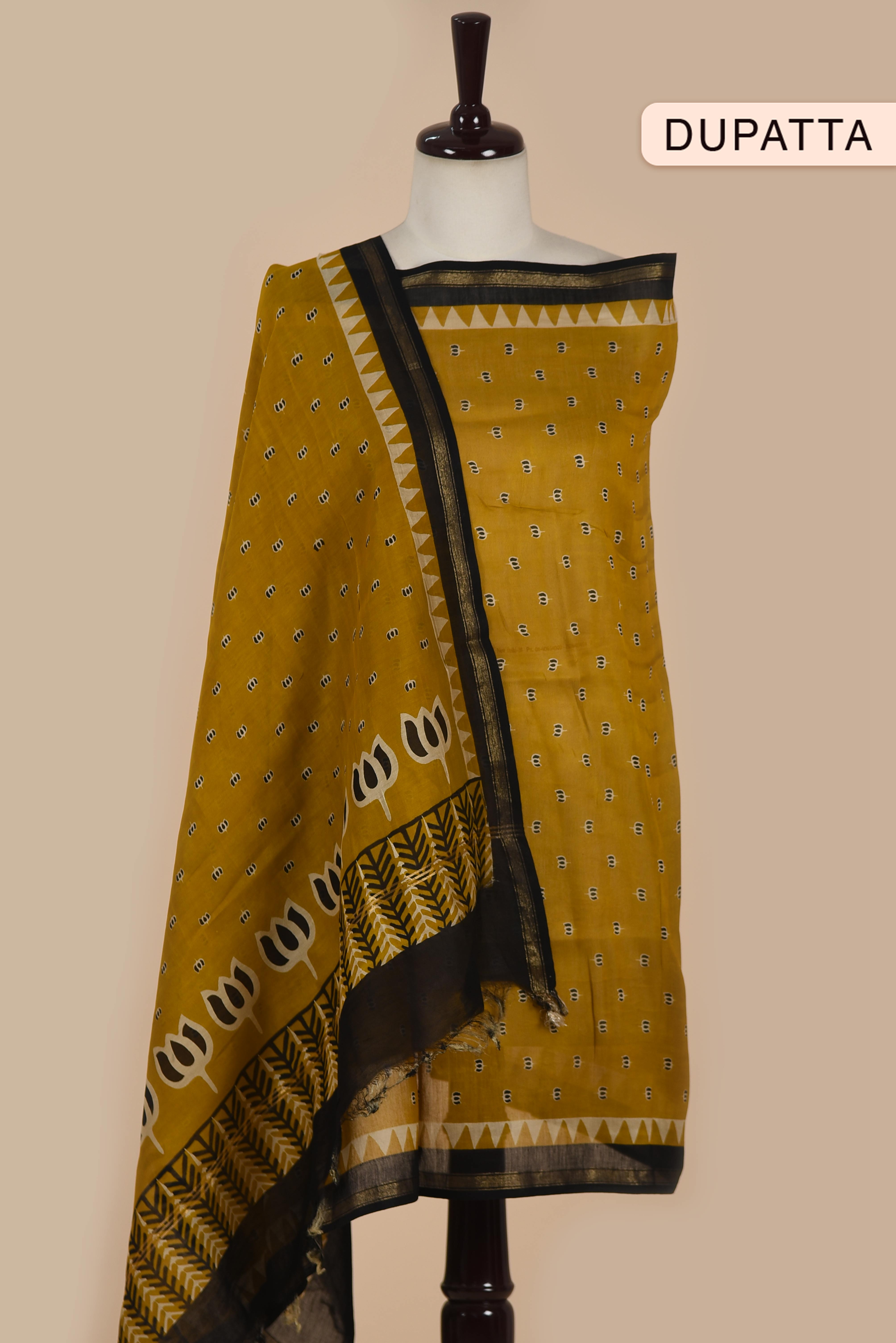 Mustard Chanderi Silk Printed & Embroidered Suit Fabric Set with Chanderi Dupatta