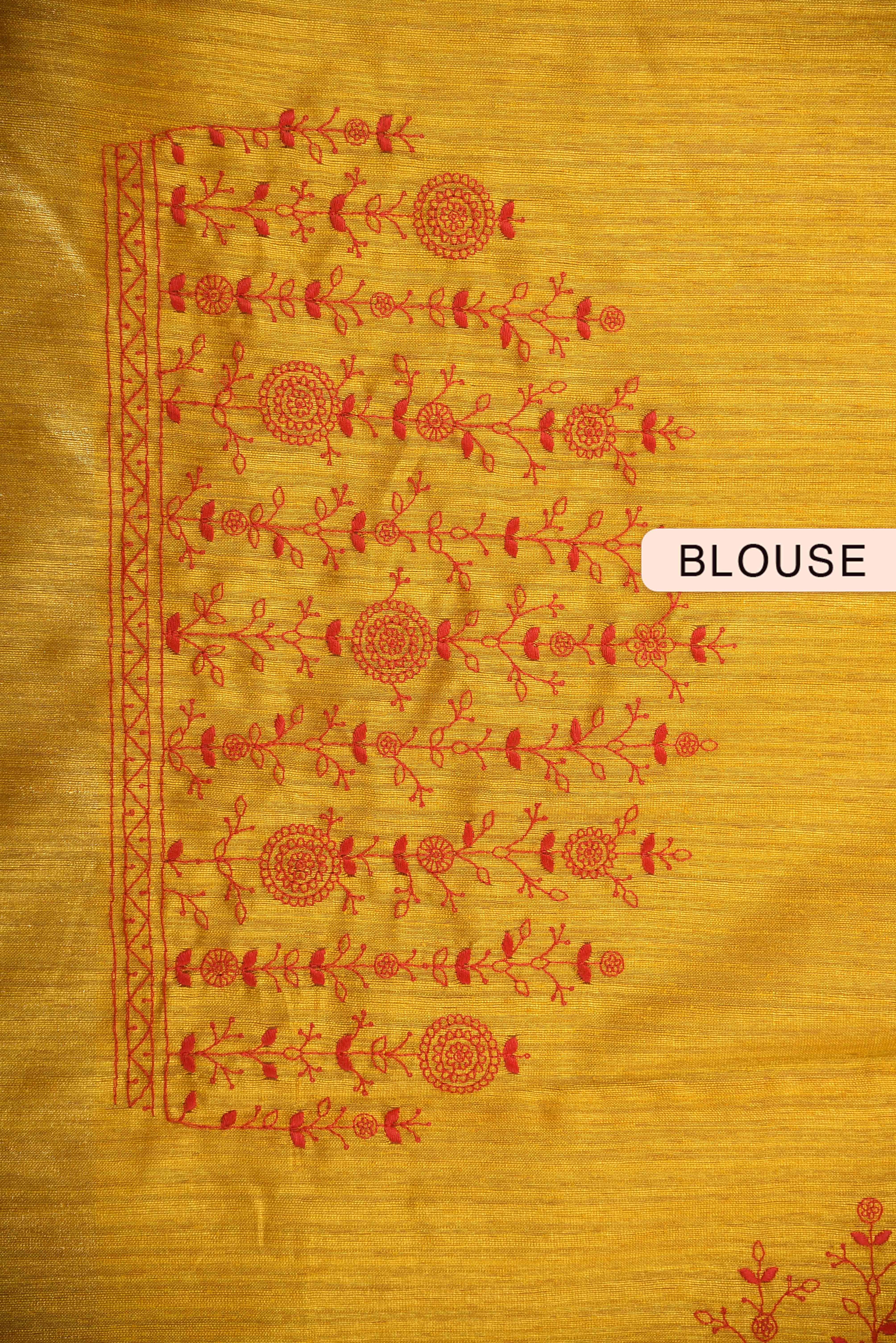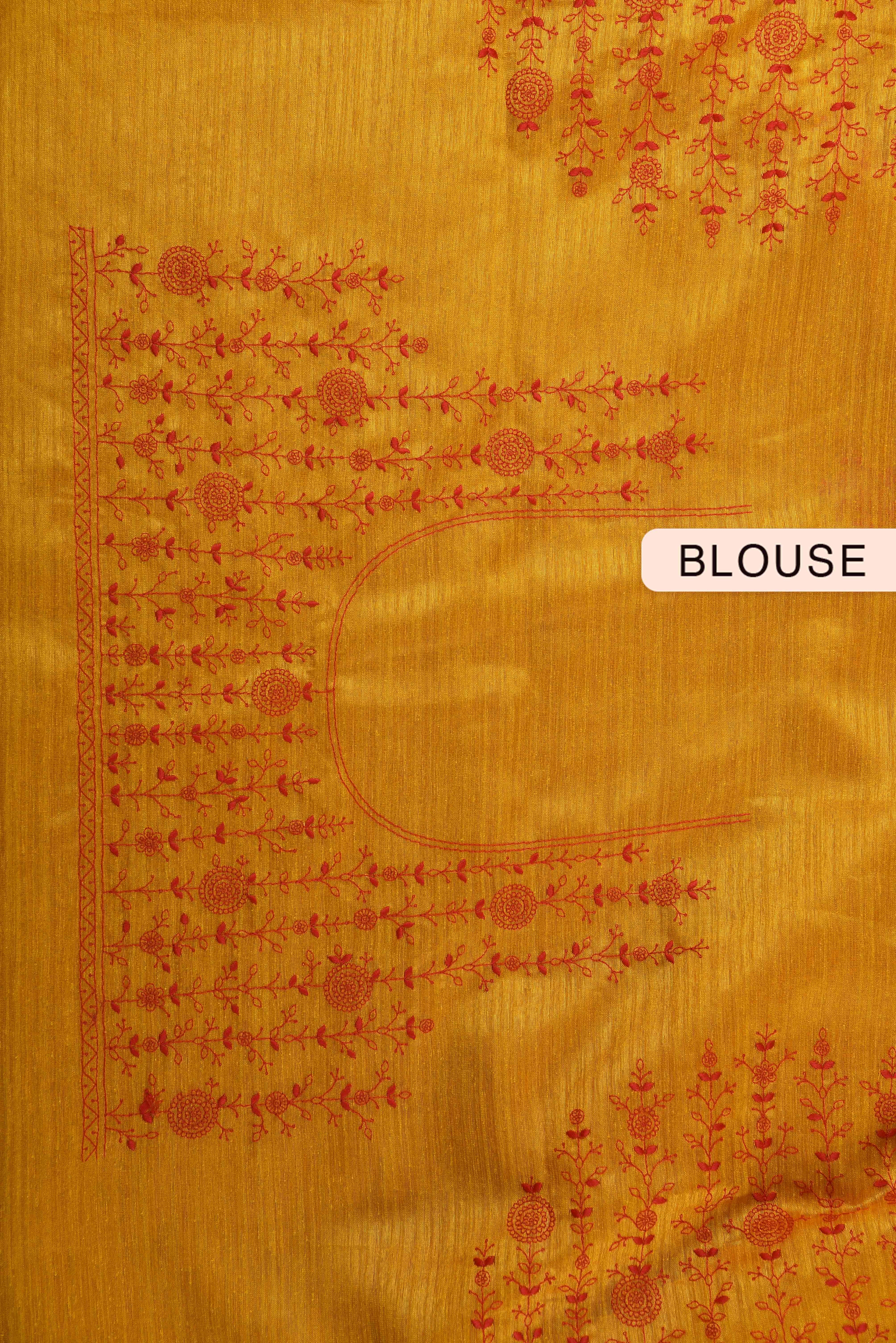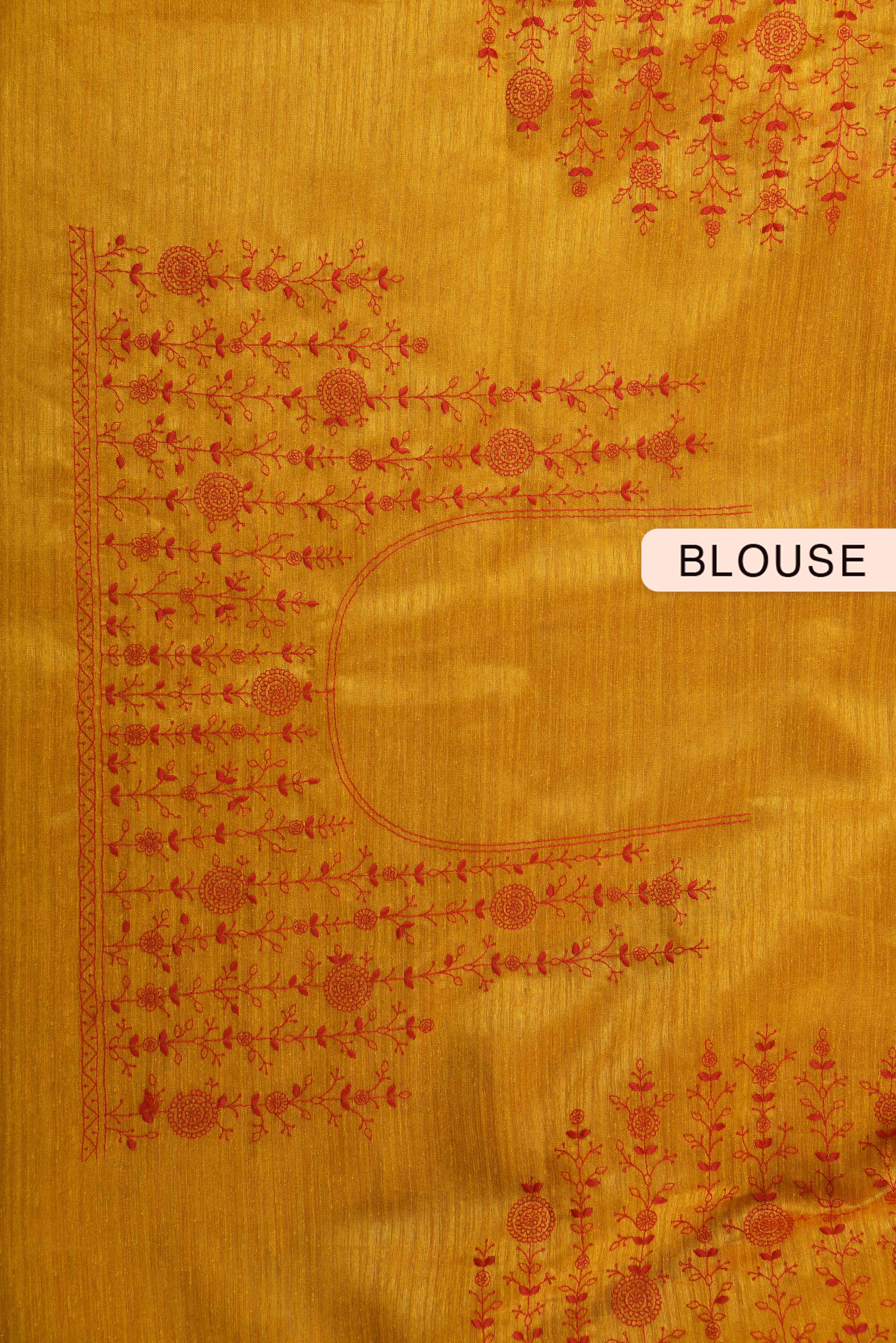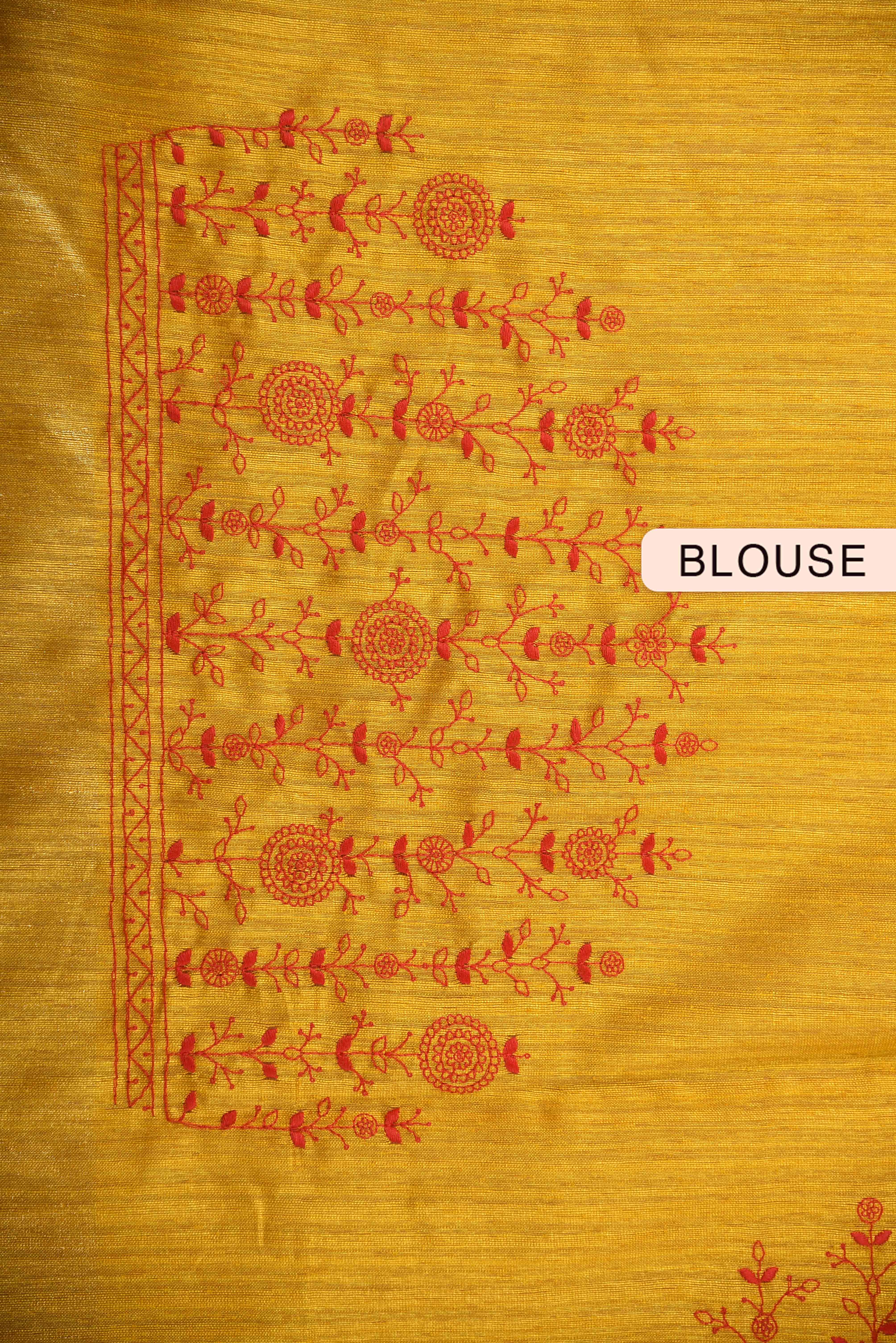 Mustard Linen Silk Blend Embroidered Saree with Matching Blouse