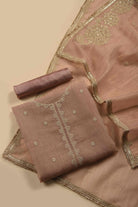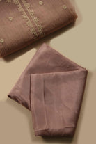 Pink Crushed Silk Viscose Embroidered Unstitched Suit Fabric Set with Silk Dupatta