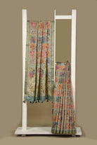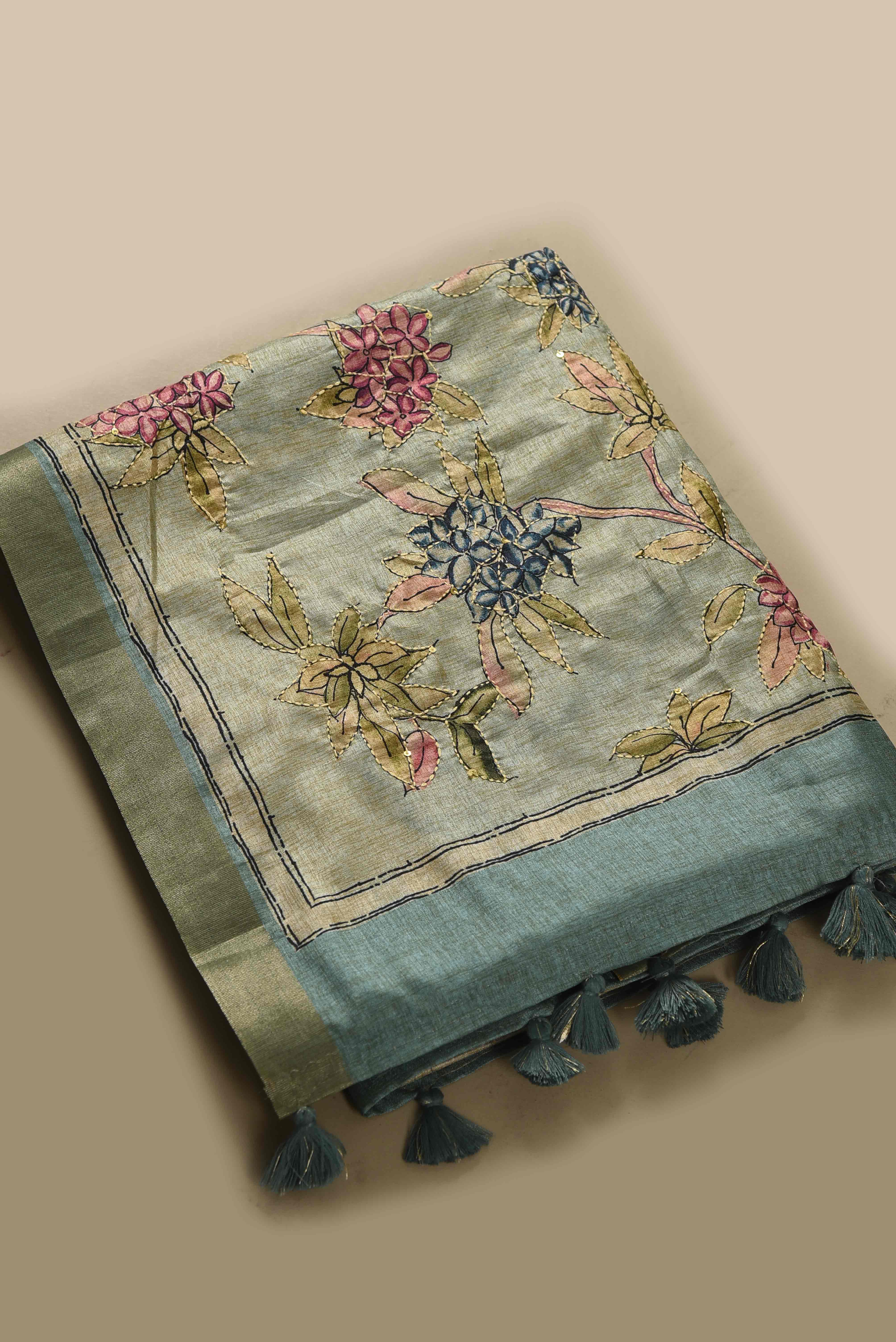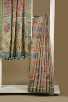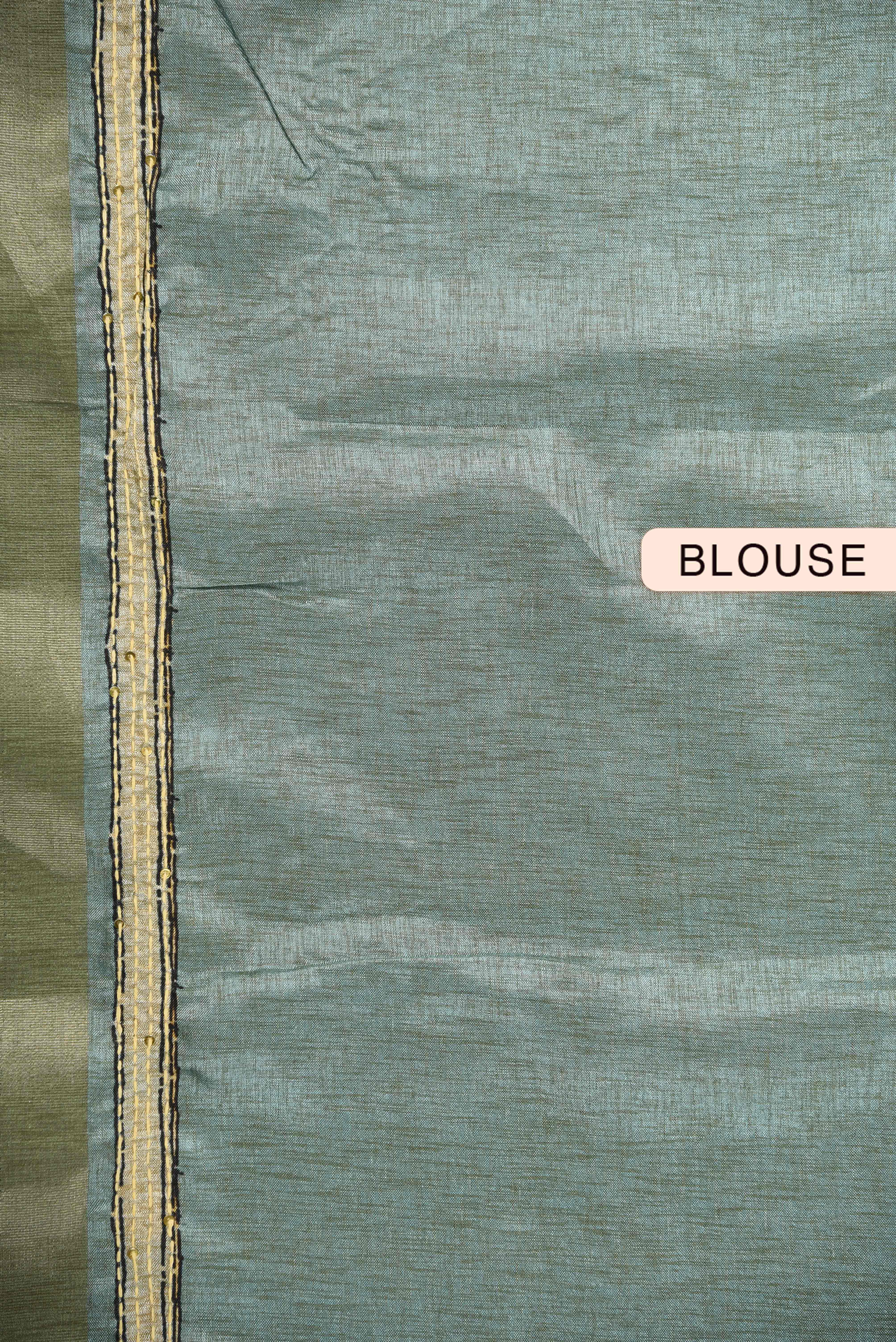 Sea Green Cotton Silk Blend Printed & Embroidered Saree with Matching Blouse