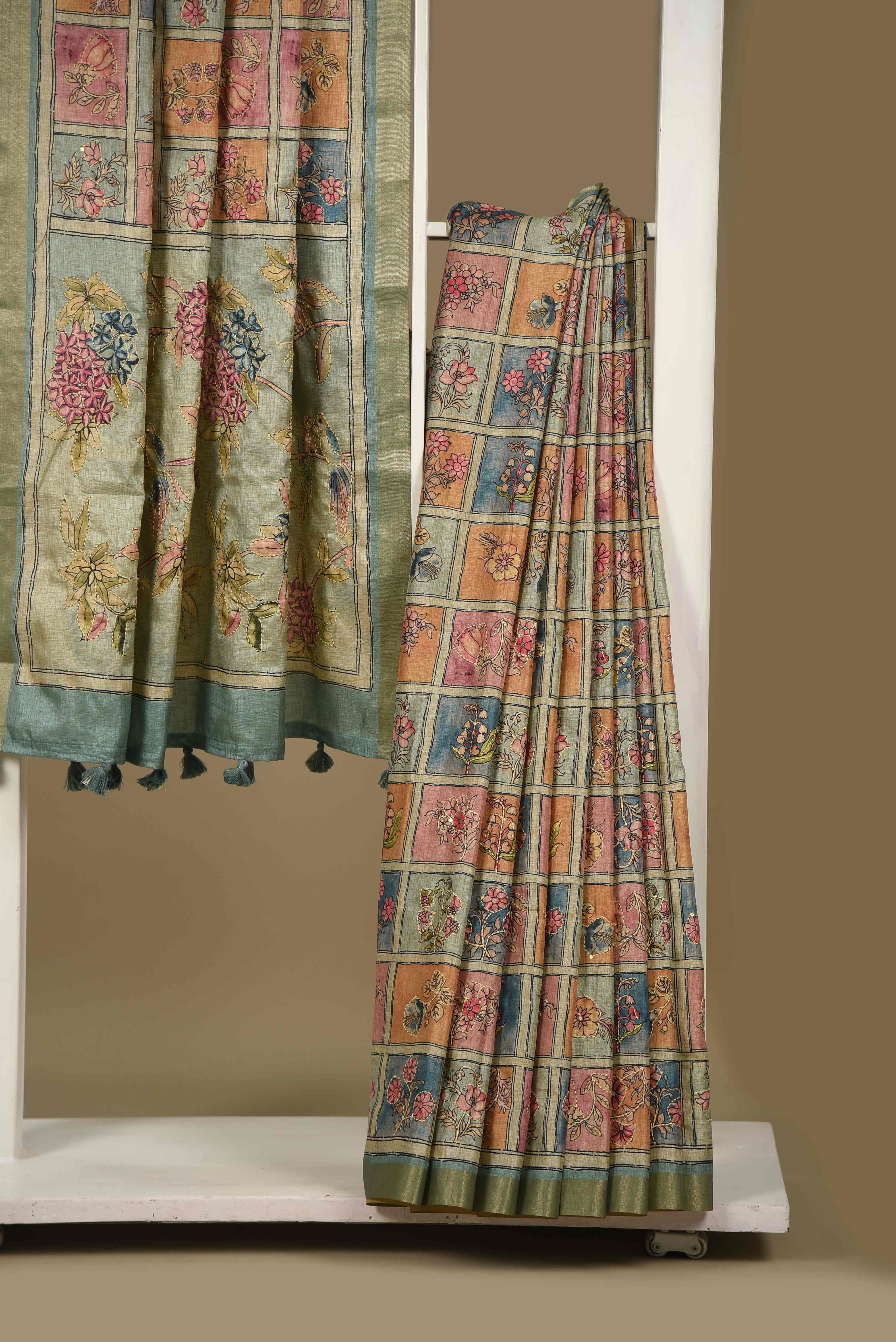 - Sea Green Cotton Silk Blend Printed & Embroidered Saree with Matching Blouse Add a vibrant touch of elegance to your wardrobe with our Sea Green Cotton Silk Blend Saree, crafted to bring together comfort, charm, and sophistication.