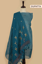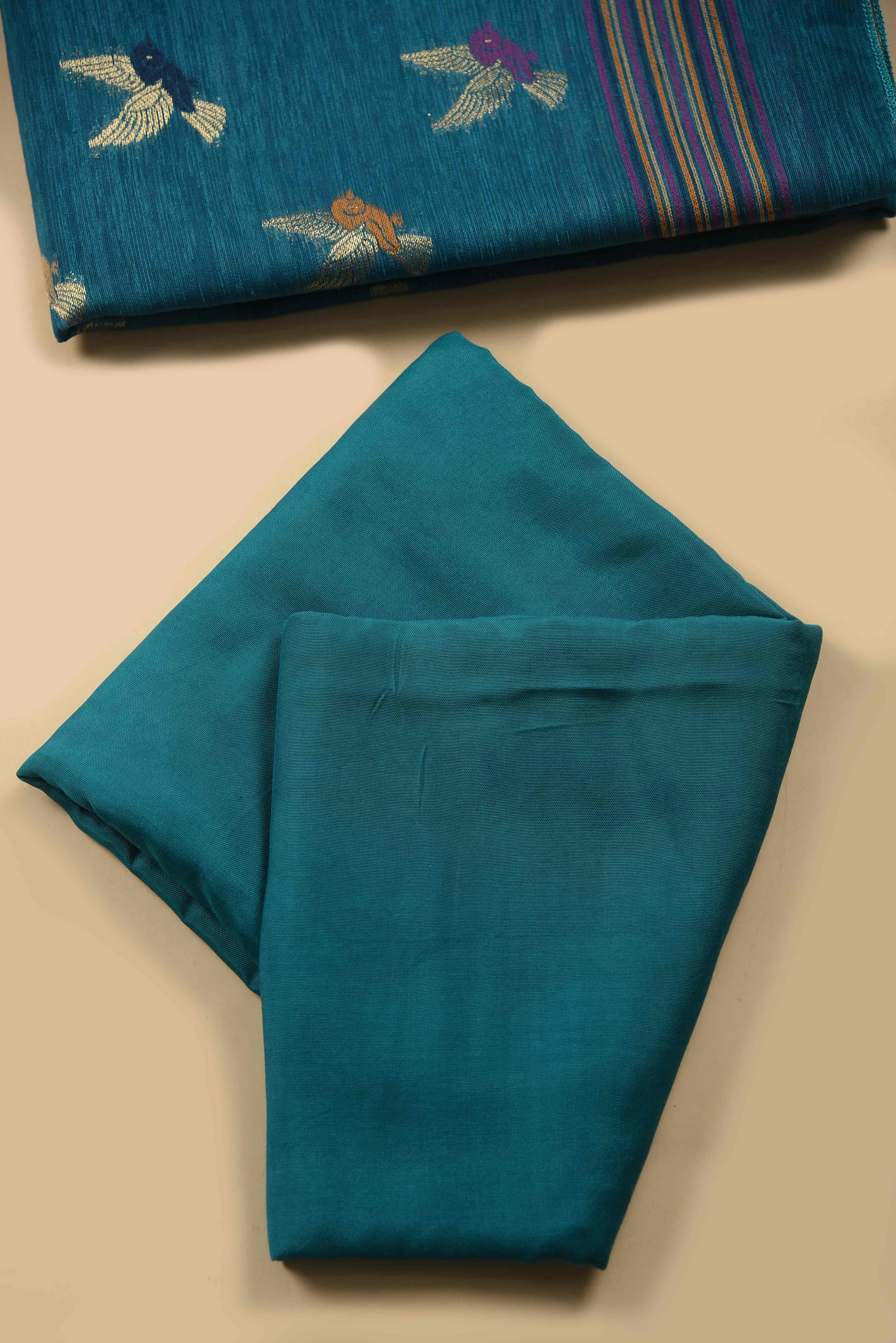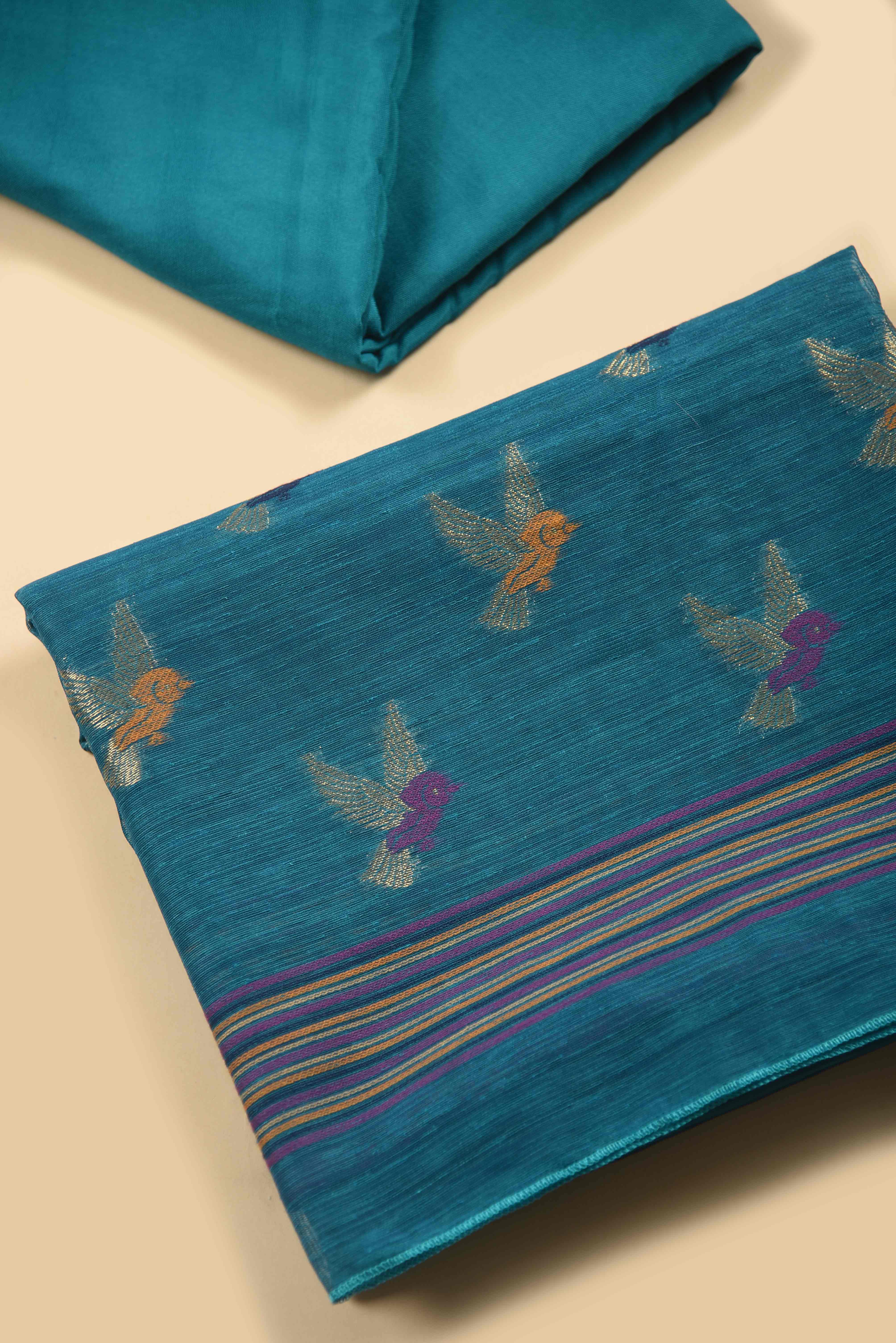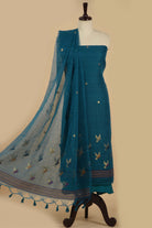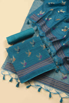 Turquoise Linen Blend Jamdani Woven Unstitched Suit Fabric Set With Linen Woven Dupatta