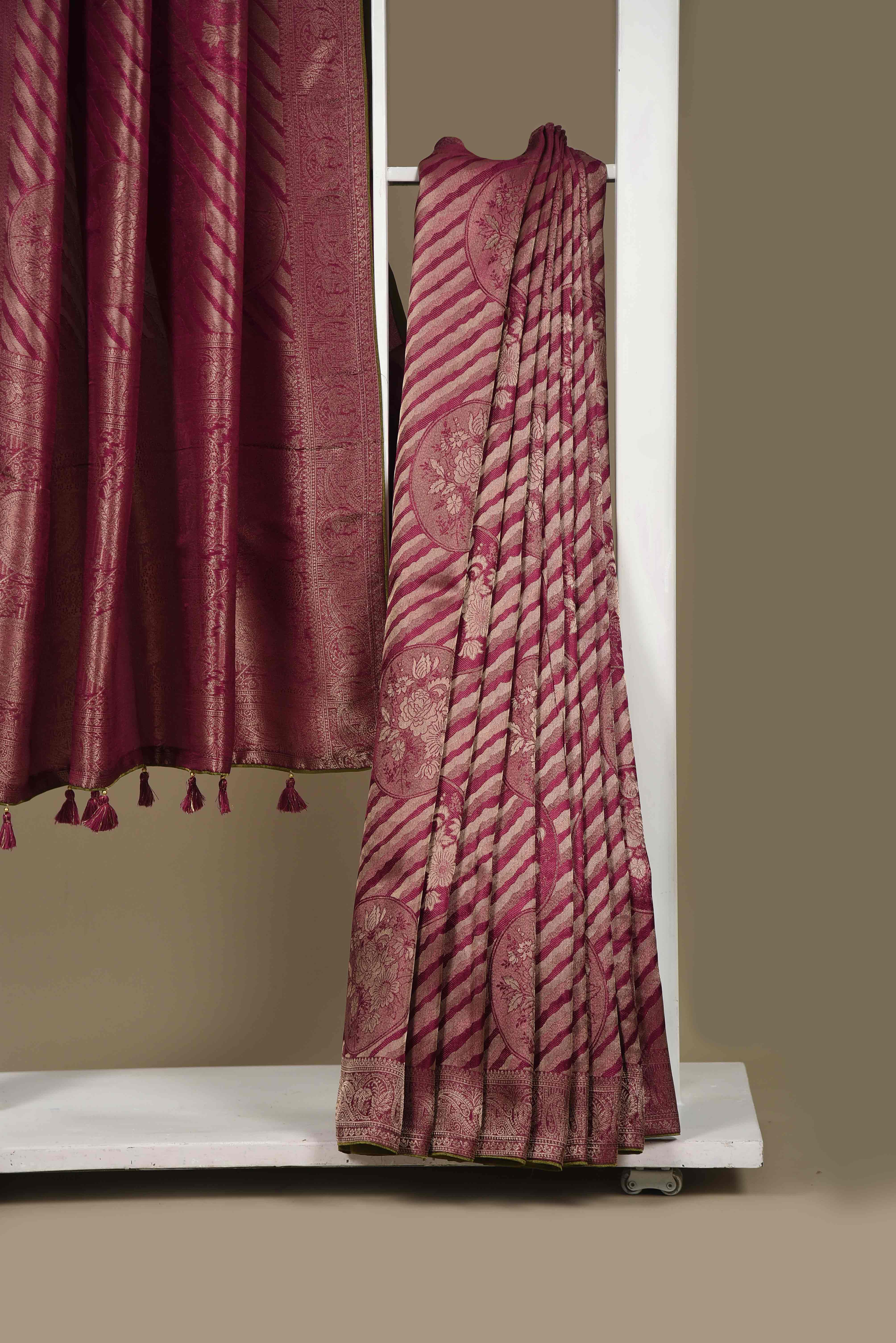 Wine Tissue Silk Viscose Blend Woven Saree with Matching Blouse