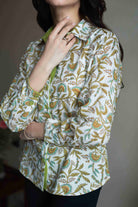 Off White With Green Cotton Pure Hand Block Printed Shirt - Relaxed Fit