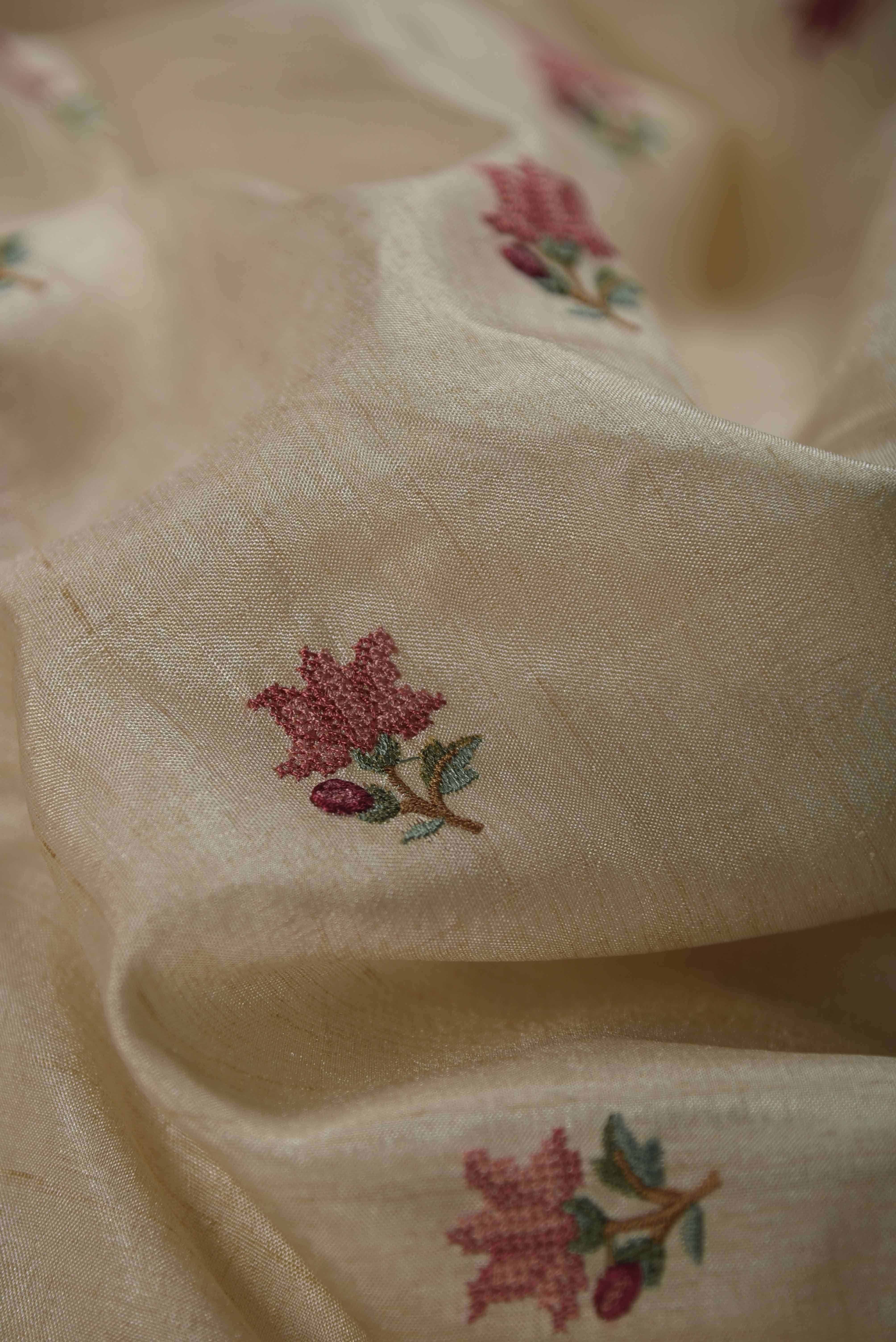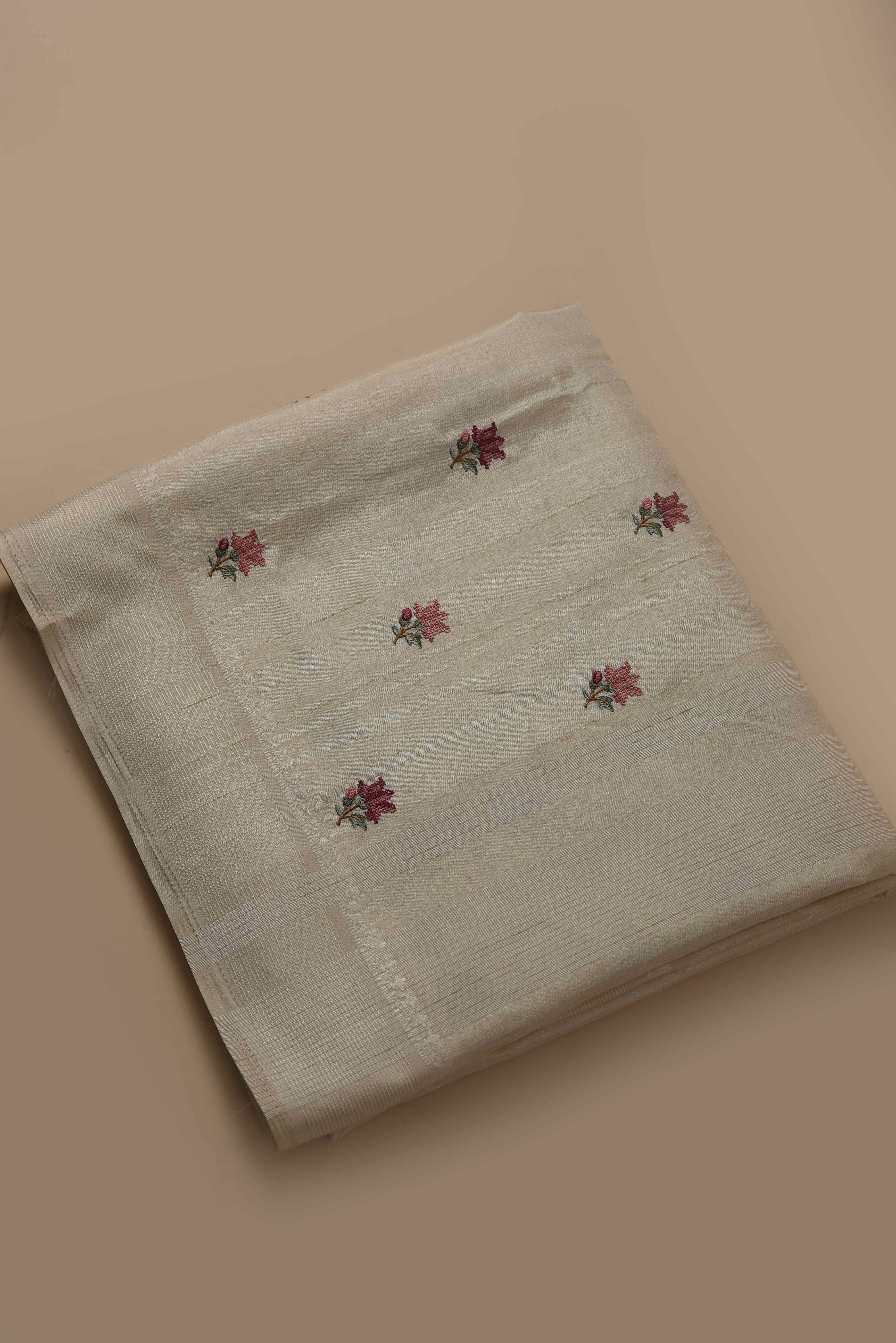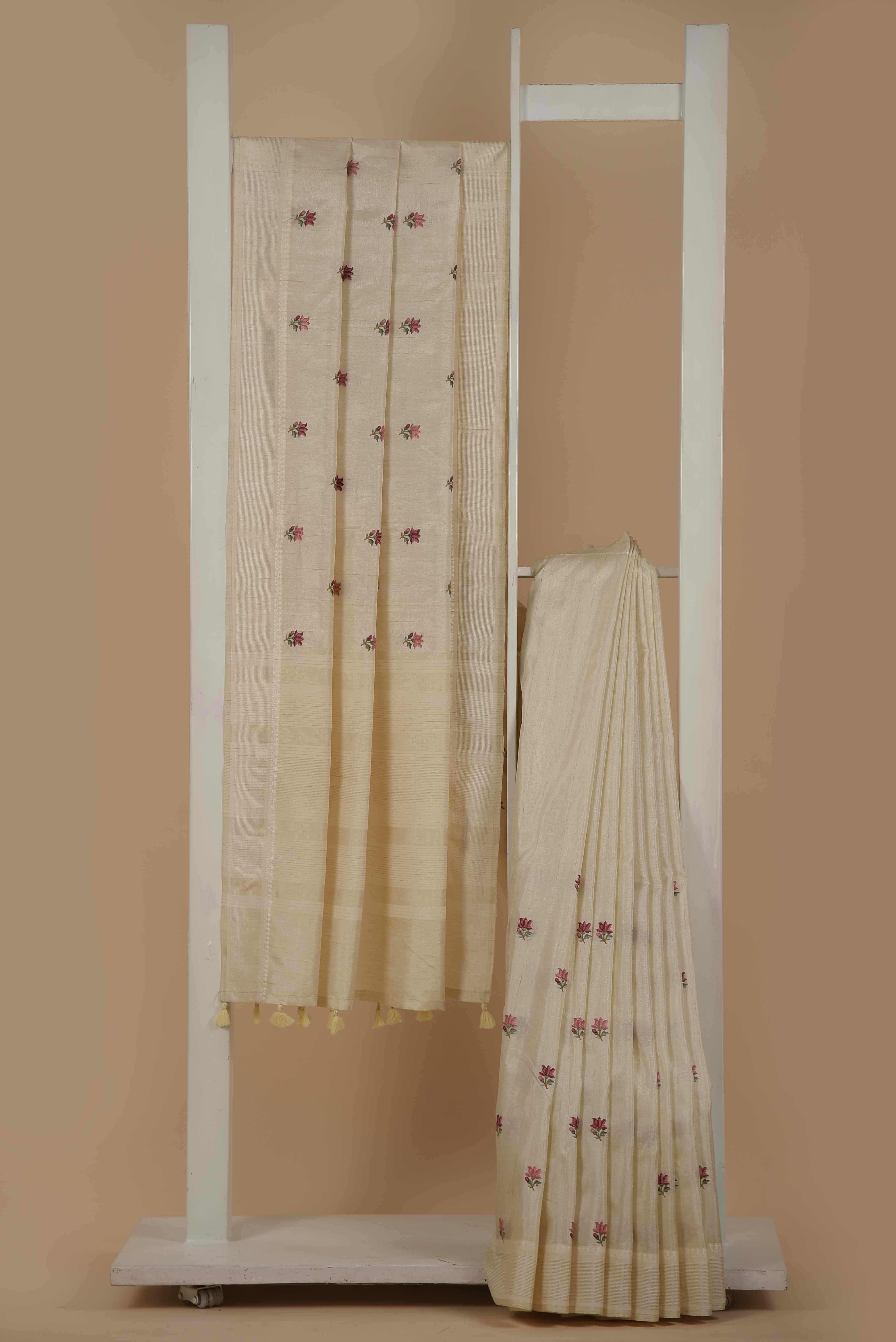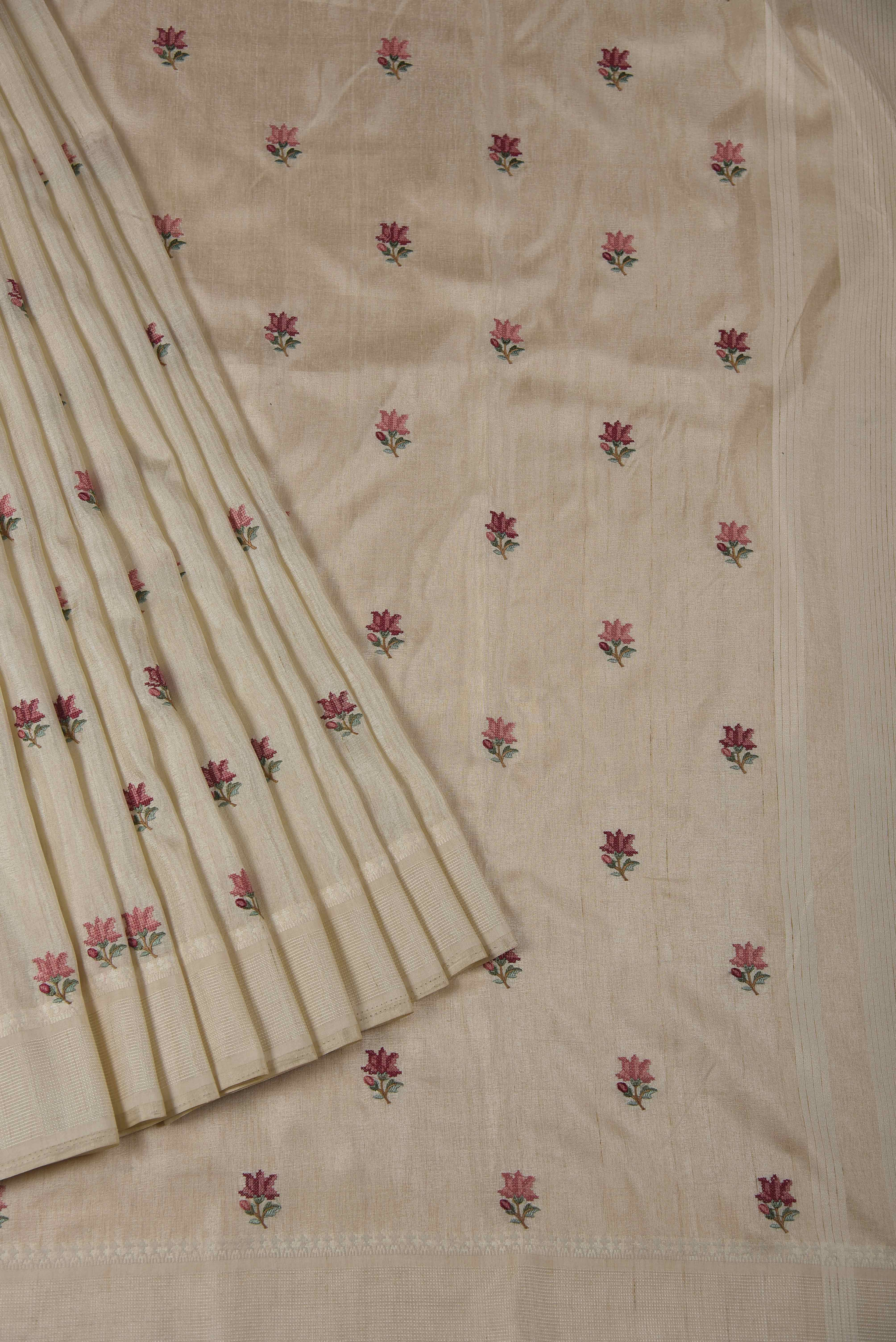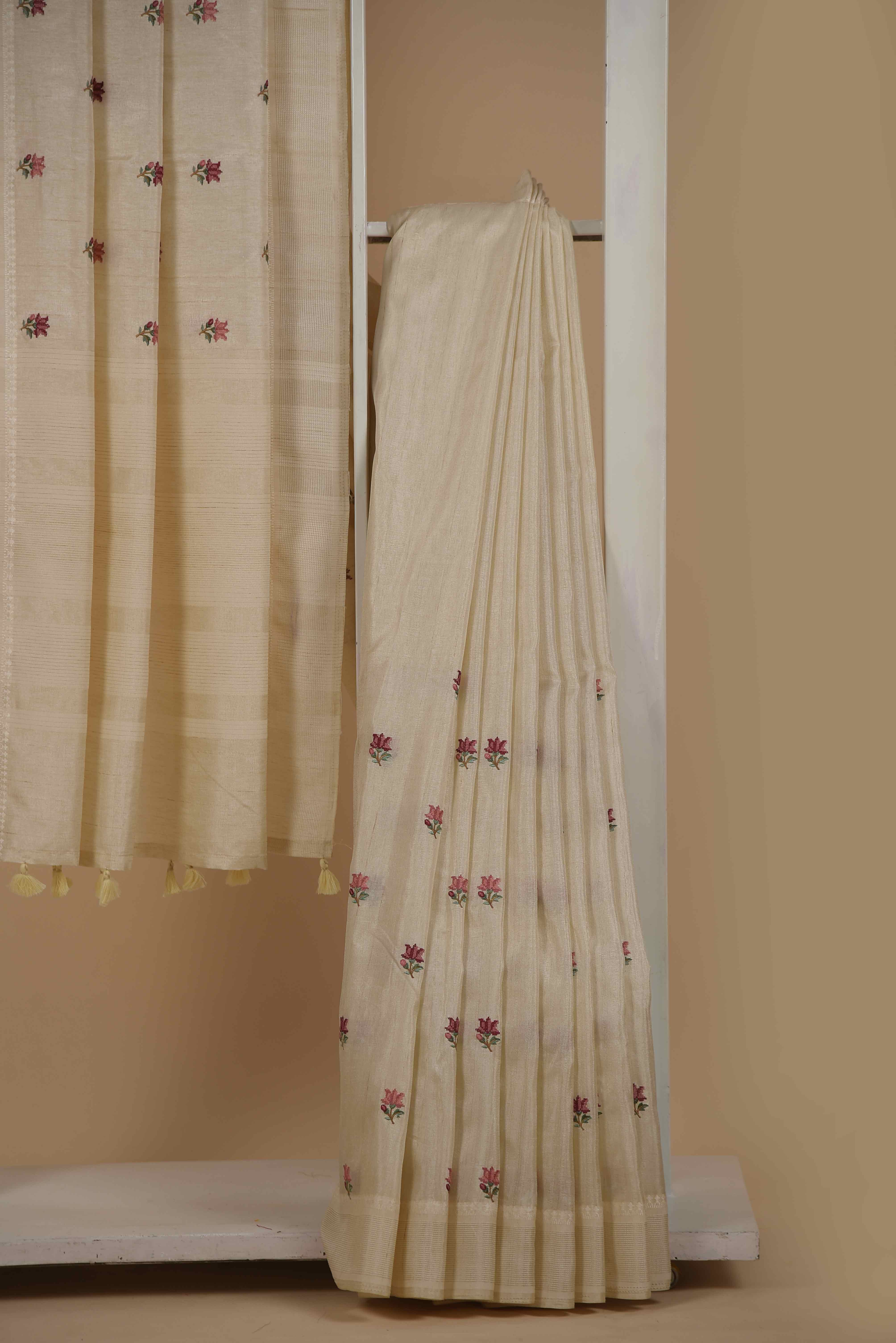 Cream Cotton Silk Blend Embroidered Saree with Cotton Silk Blouse
