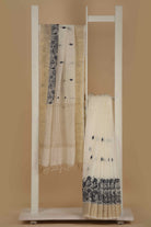 Crafted from lightweight linen silk, it ensures comfortable draping with a refined off-white base.