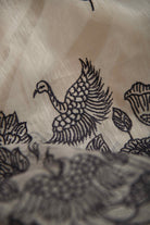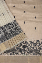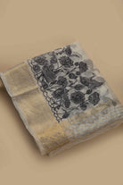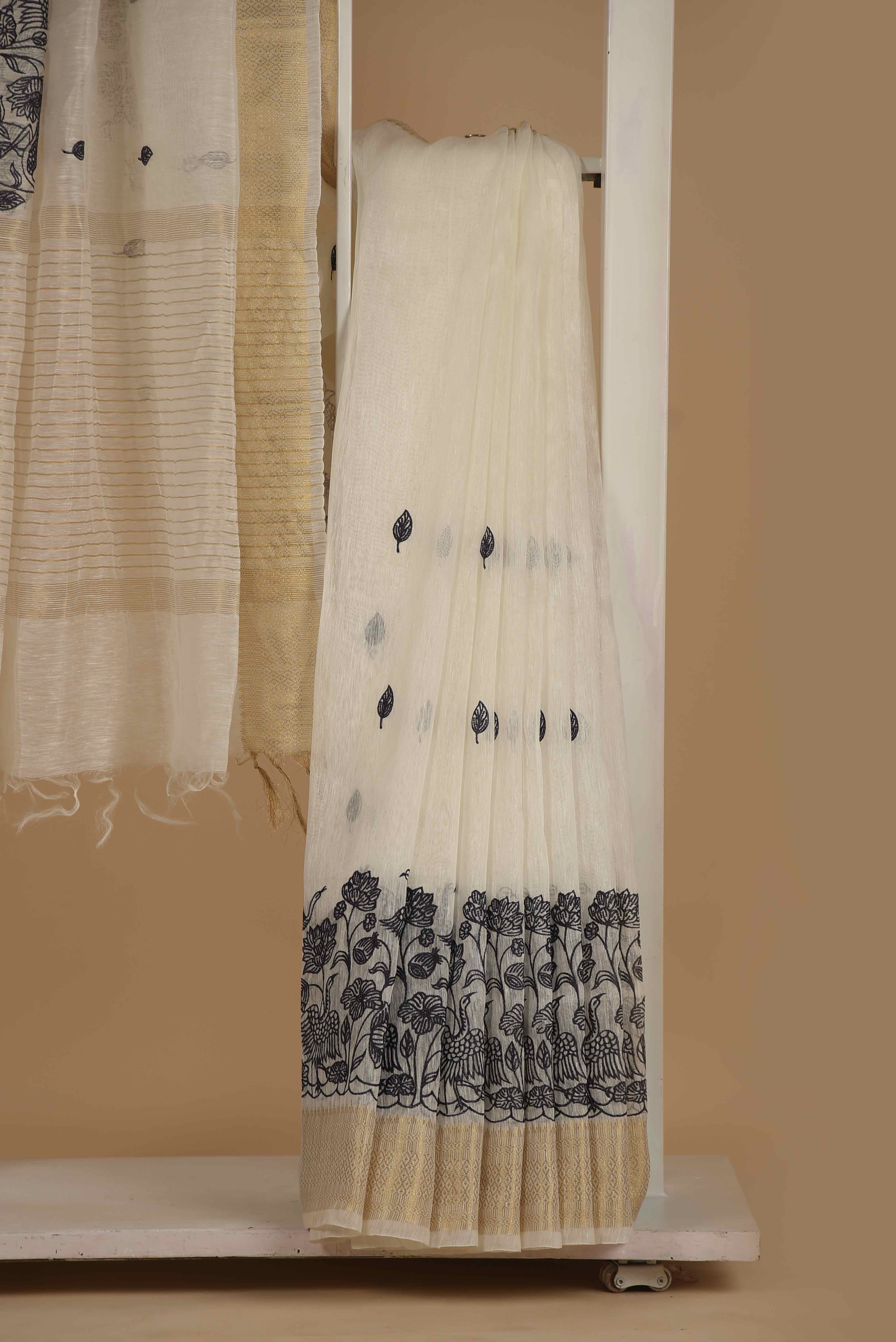 Off White Linen Silk Woven With Embroidered Saree with Embroidered Linen Silk Blouse