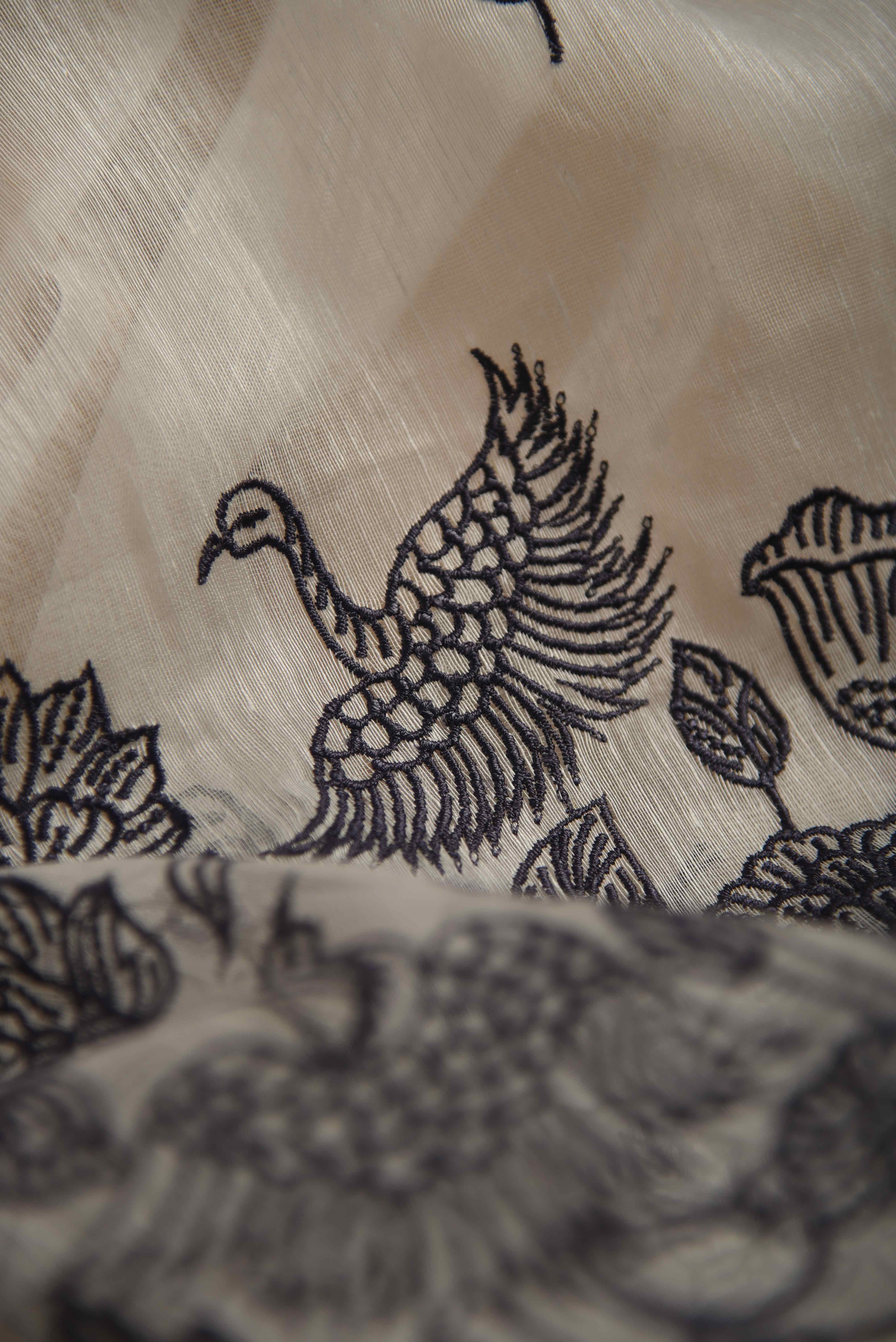 Delicate floral and bird embroidery add artistry and timeless elegance, suitable for both casual and formal occasions.