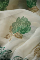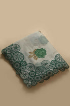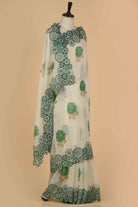 Off White With Green Mul Chanderi Printed With Embroidered Saree With Mul Chanderi Printed Blouse