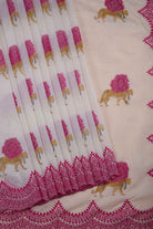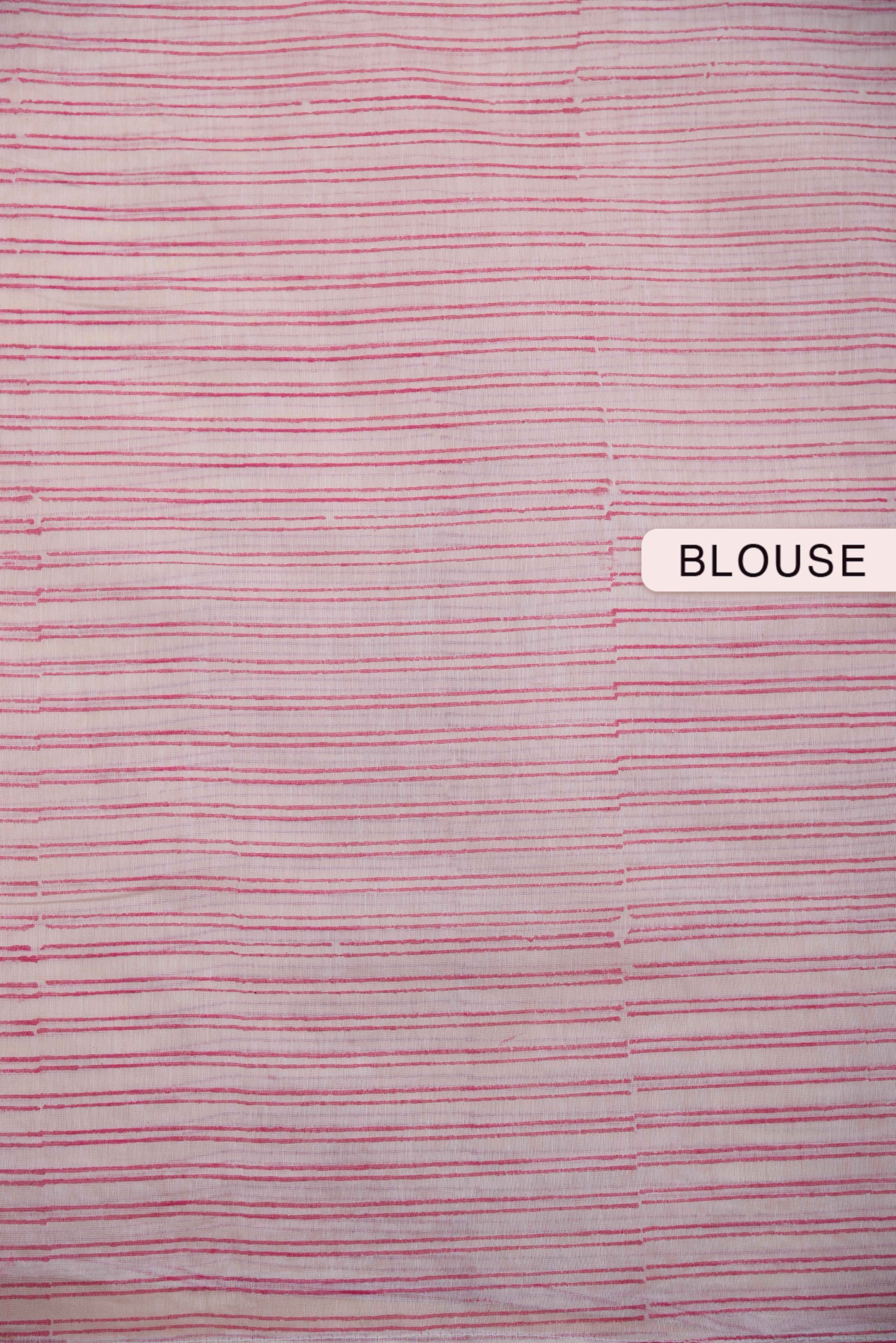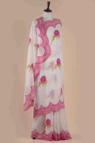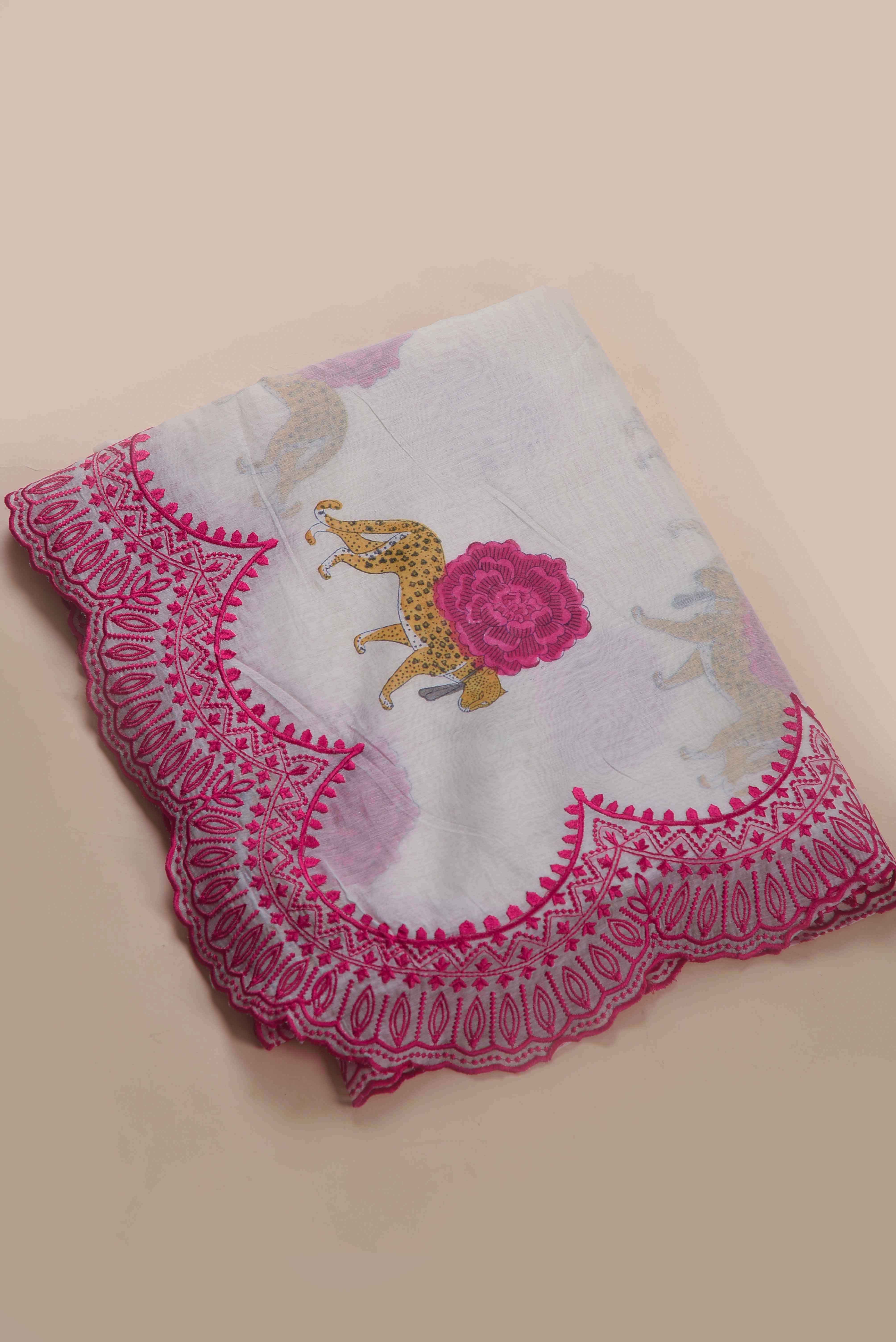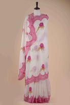 Off White With Pink Mul Chanderi Printed With Embroidered Saree With Mul Chanderi Printed Blouse