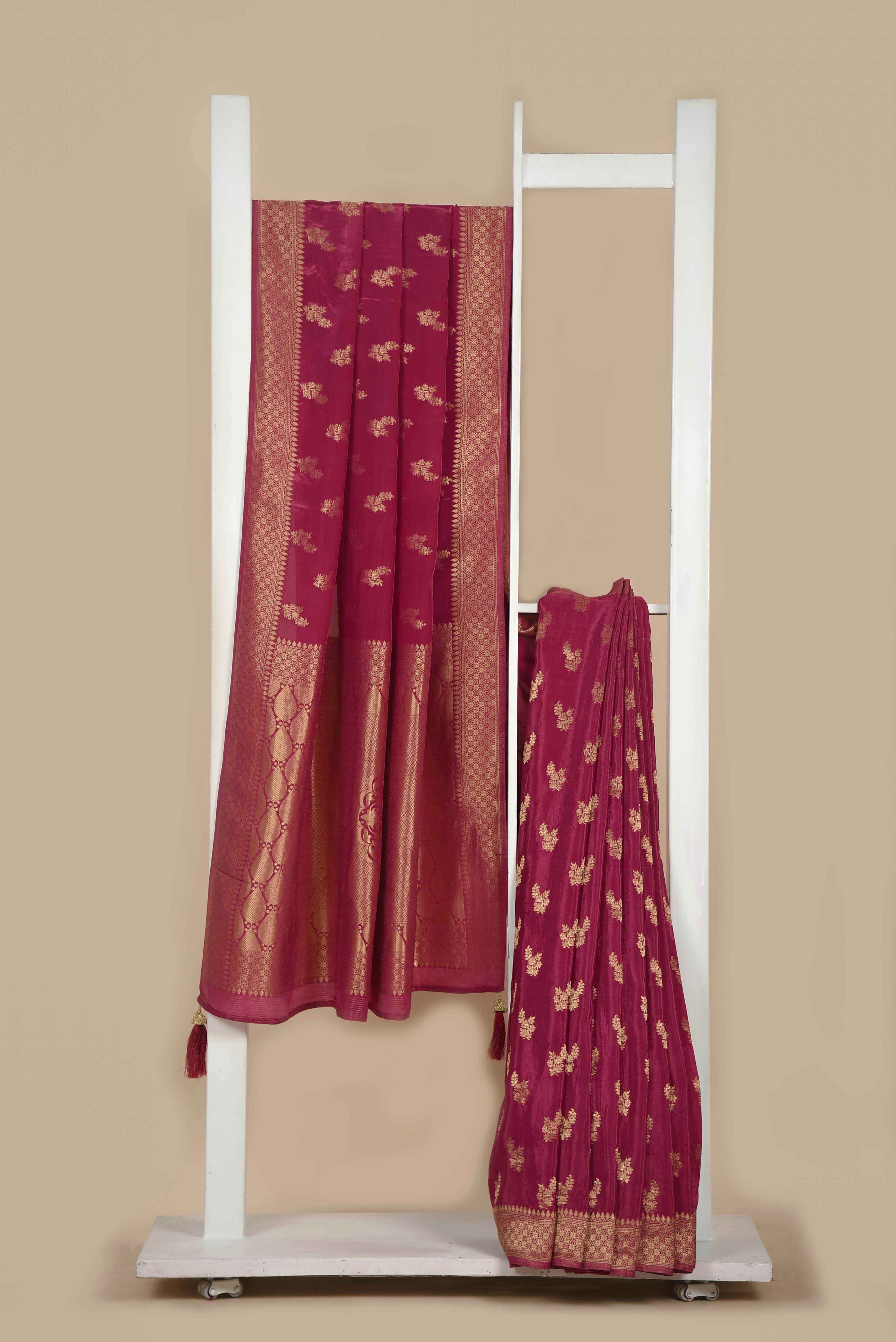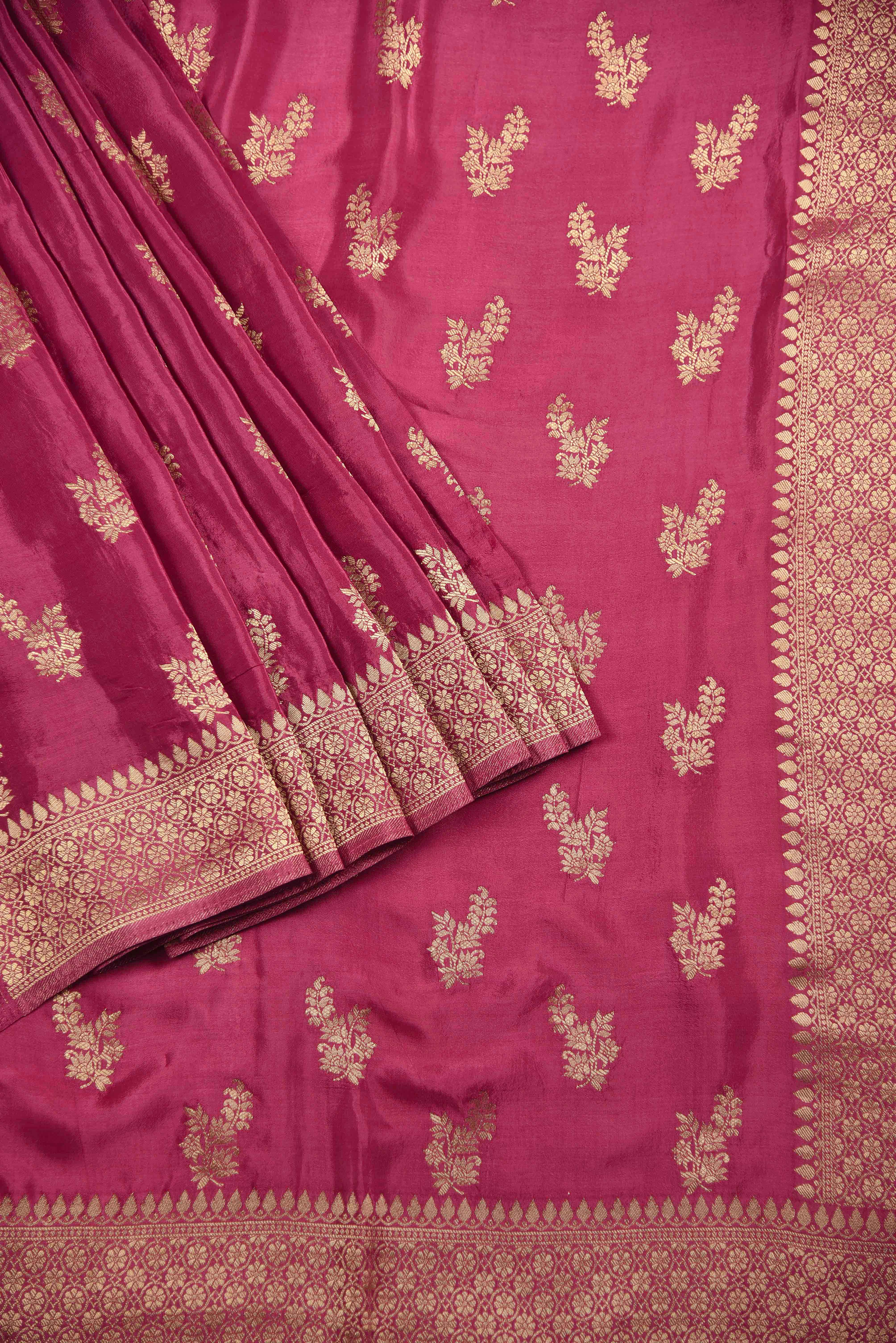 Onion Pink Silk Viscose Blend Woven Saree With Silk Viscose Blend Blouse