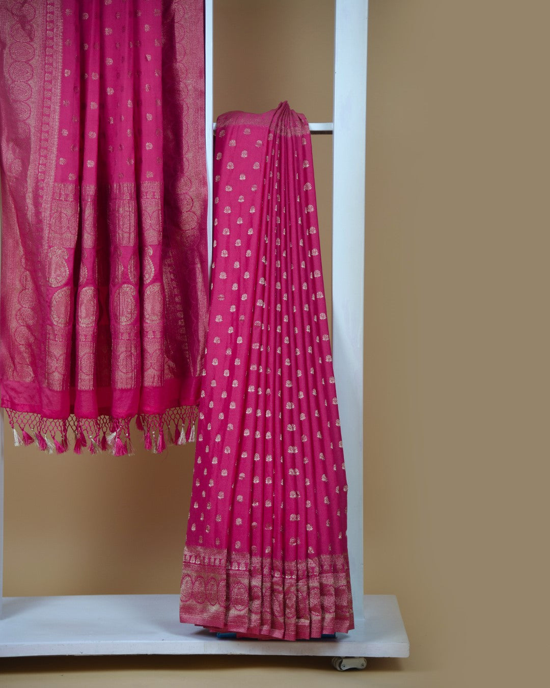 Stay warm and stylish with heavier fabrics like Banarasi silk or crepe sarees in rich, warm tones.