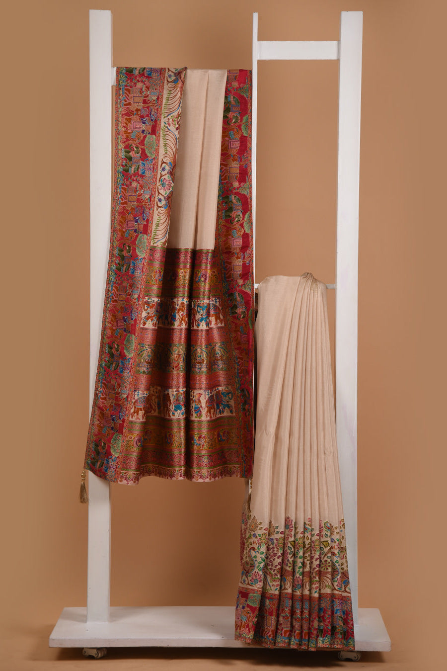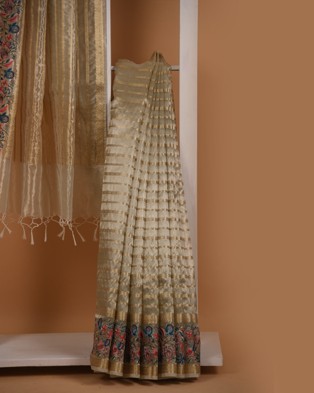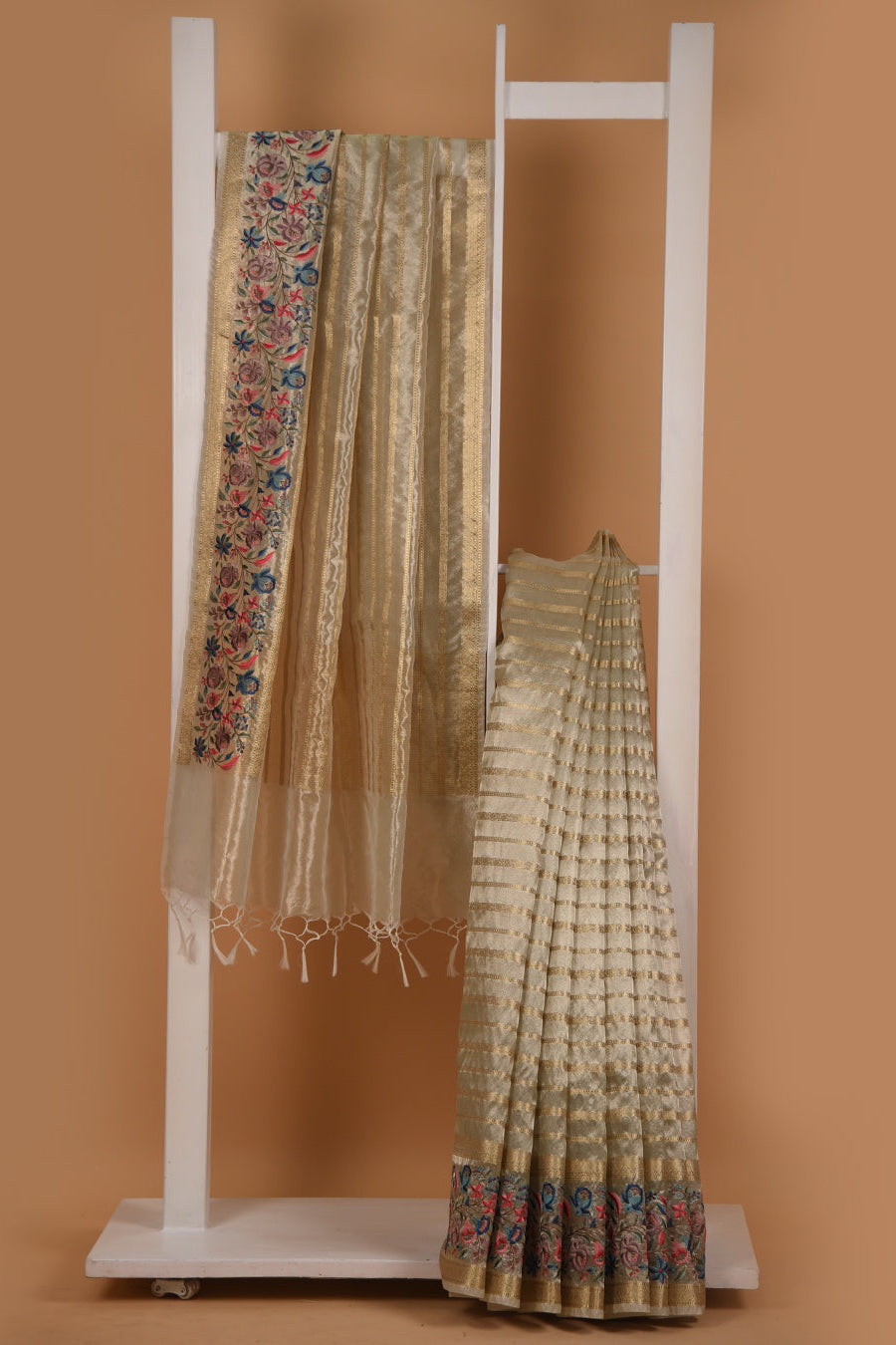 Jamdani sarees are renowned for their exquisite craftsmanship, meticulously handwoven in both Bangladesh and India. These sarees are distinguished by their elaborate floral and geometric motifs, achieved through the innovative use of a supplementary weft technique. Typically crafted from premium muslin or cotton, Jamdani sarees are celebrated for their lightweight and breathable nature, as well as their refined elegance.