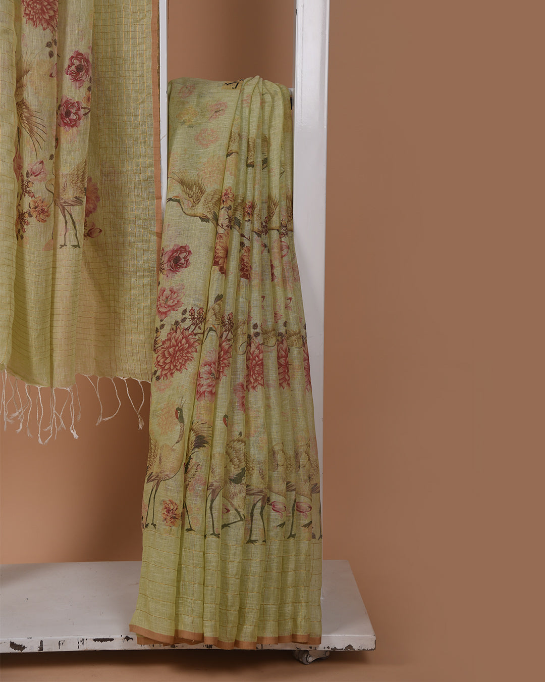 Linen saree for women, made from the natural fiber linen, offer a blend of elegance and durability. Known for their strength, breathability, and absorbency, they are often woven in plain or twill weave and embellished with intricate details like embroidery or beadwork.