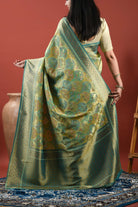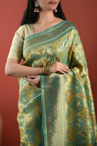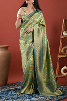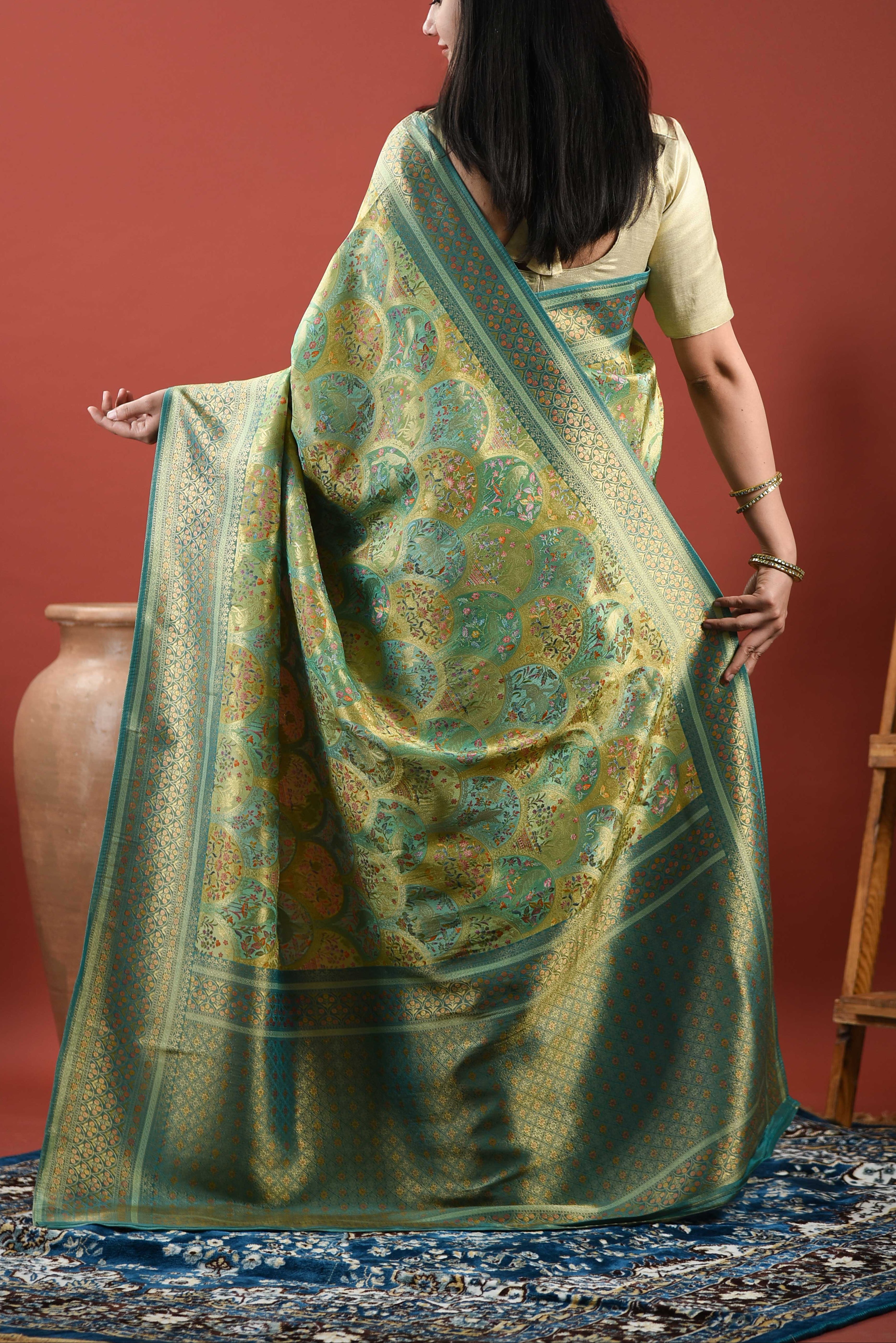 Green Tissue Silk Viscose Blend Woven Saree with Matching Blouse