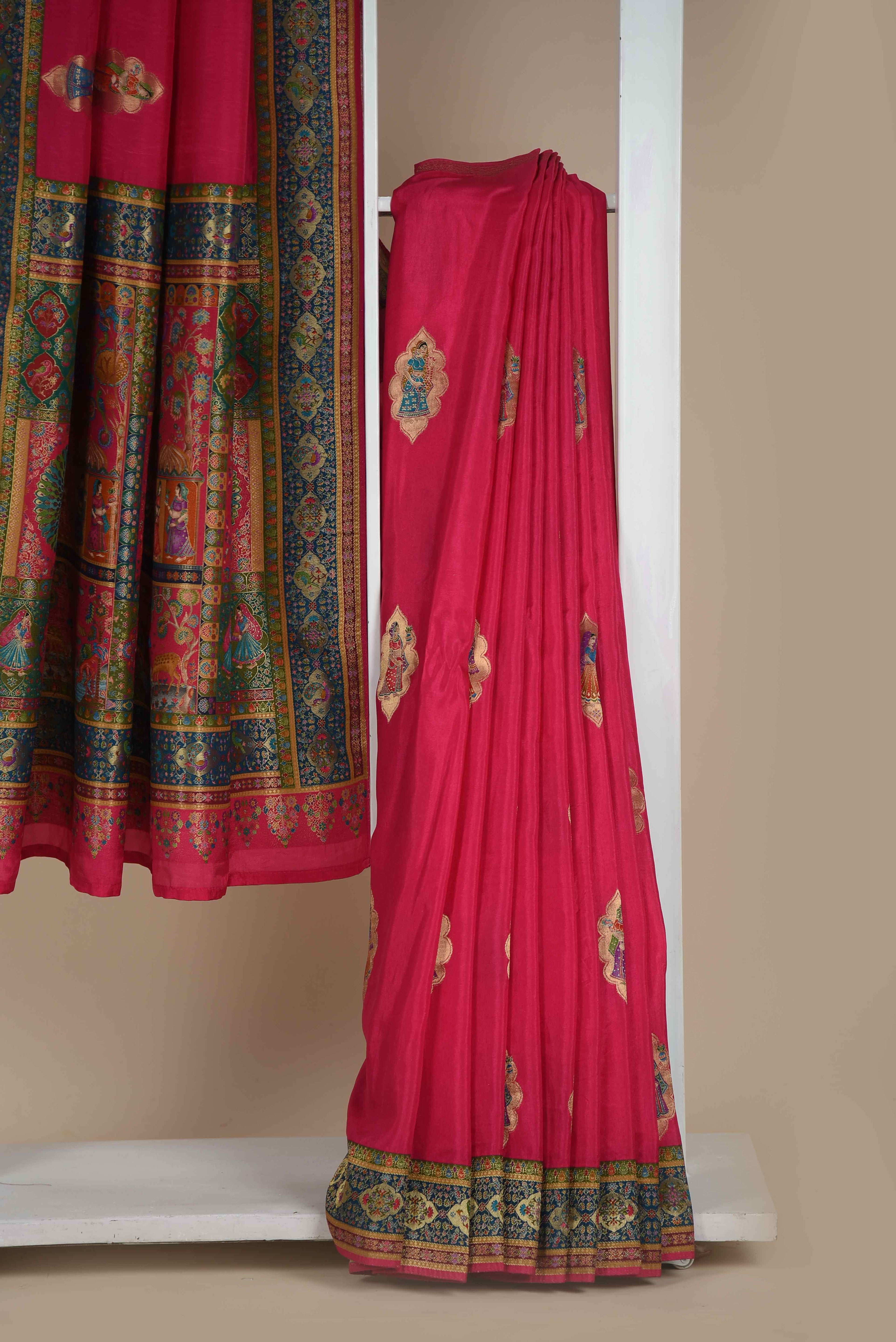 Maroon Banarasi Chanderi Woven Unstitched Suit Fabric Set With Banarasi Chanderi Woven Dupatta