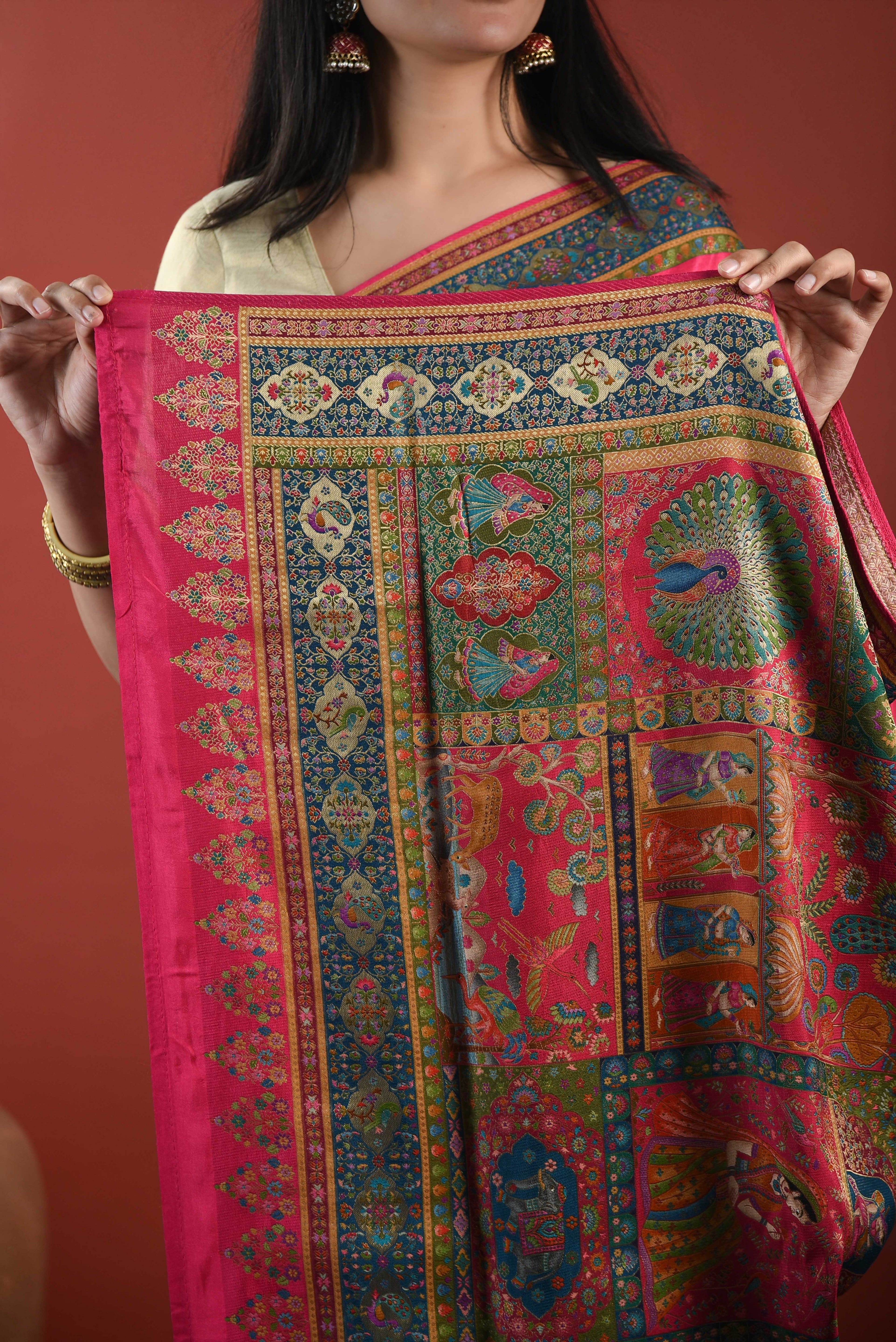 Maroon And Beige Panel Winter Wear Wool Spun Blend With Front Patti Kurta Set-Regular Fit