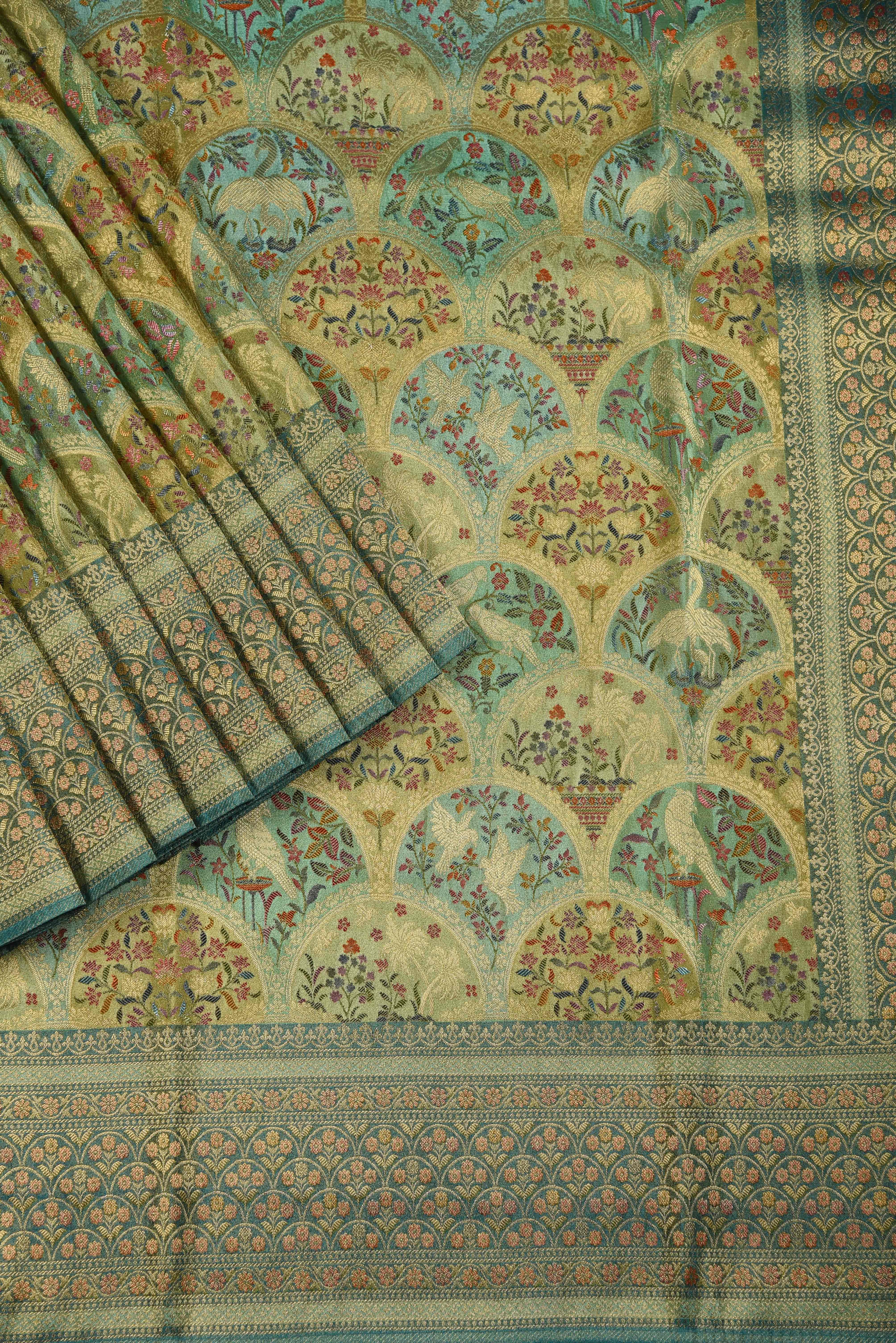 Beige With Mustard Chanderi Embroidered Unstitched Suit Fabric Set With Chanderi Woven Dupatta