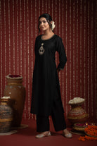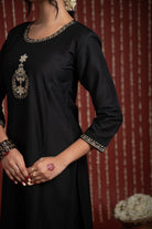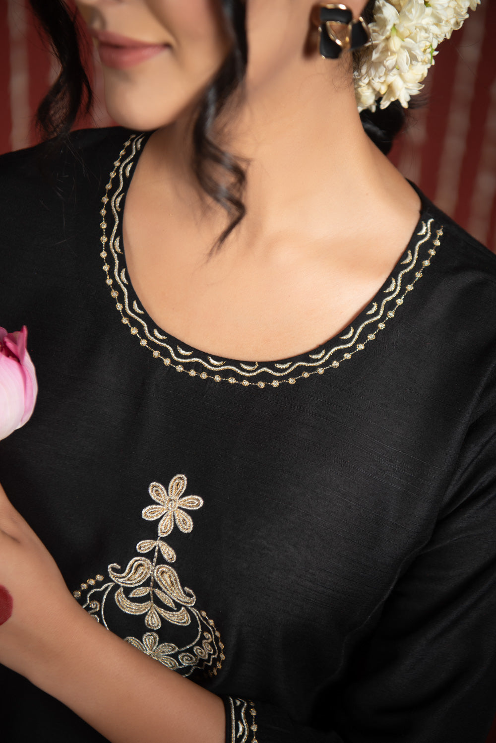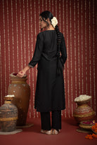 Black Cotton Silk Front Boota Zari Work Kurta Set Regular Fit