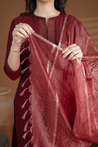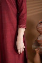 Maroon Cotton Silk Zari Work Kurta Set – Regular Fit