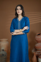 - Royal Blue Cotton Silk Zari Work Princess Line Kurta Set – Regular Fit Embrace festive elegance with this Royal Blue Kurta Set from the Noor Collection.