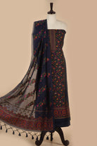 • This Blue Chanderi Silk Blend Jamdani unstitched suit fabric set expertly blends traditional craftsmanship with modern style.