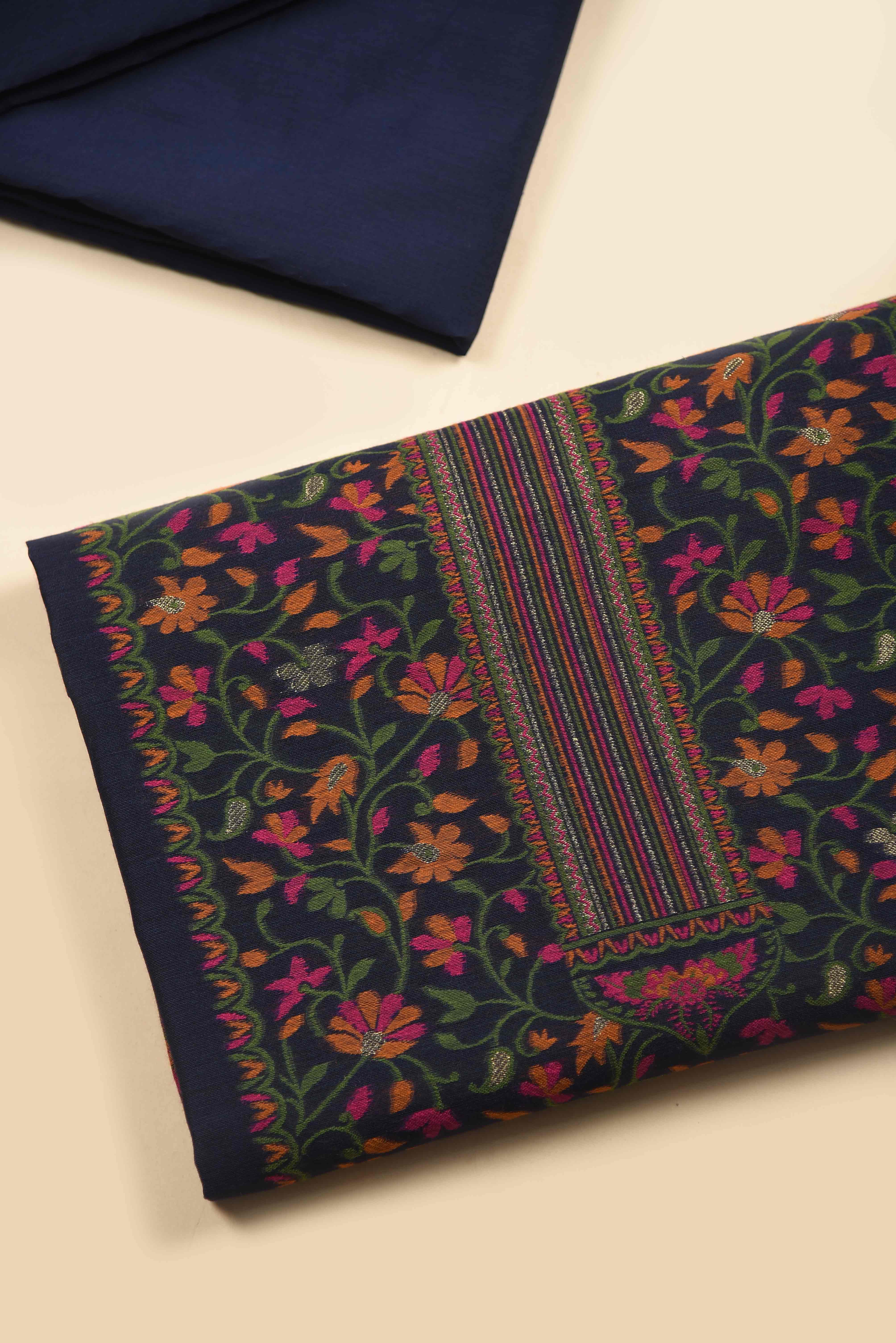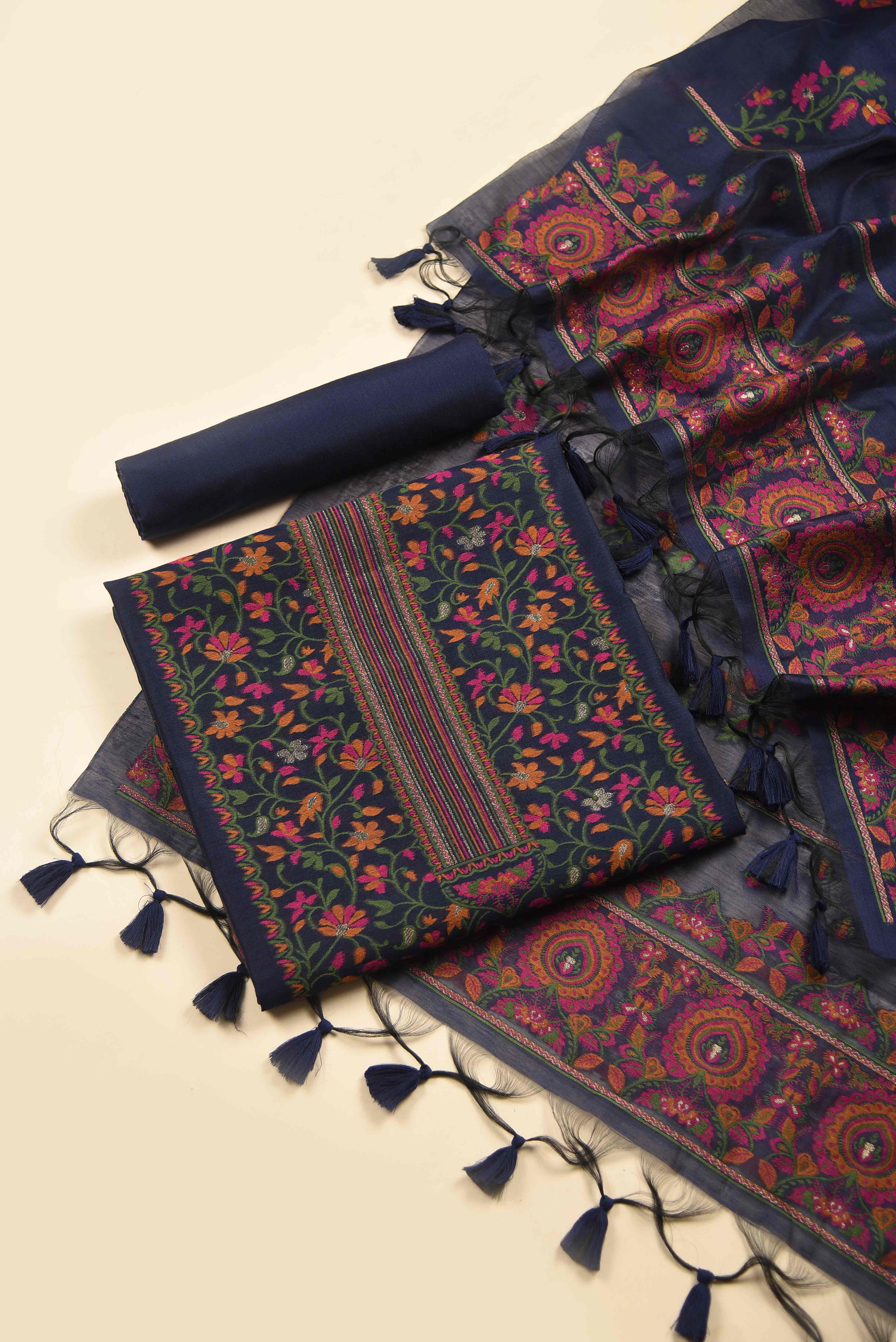 Blue Chanderi Silk Blend Jamdani Woven Unstitched Suit Fabric Set With Chanderi Silk Woven Dupatta