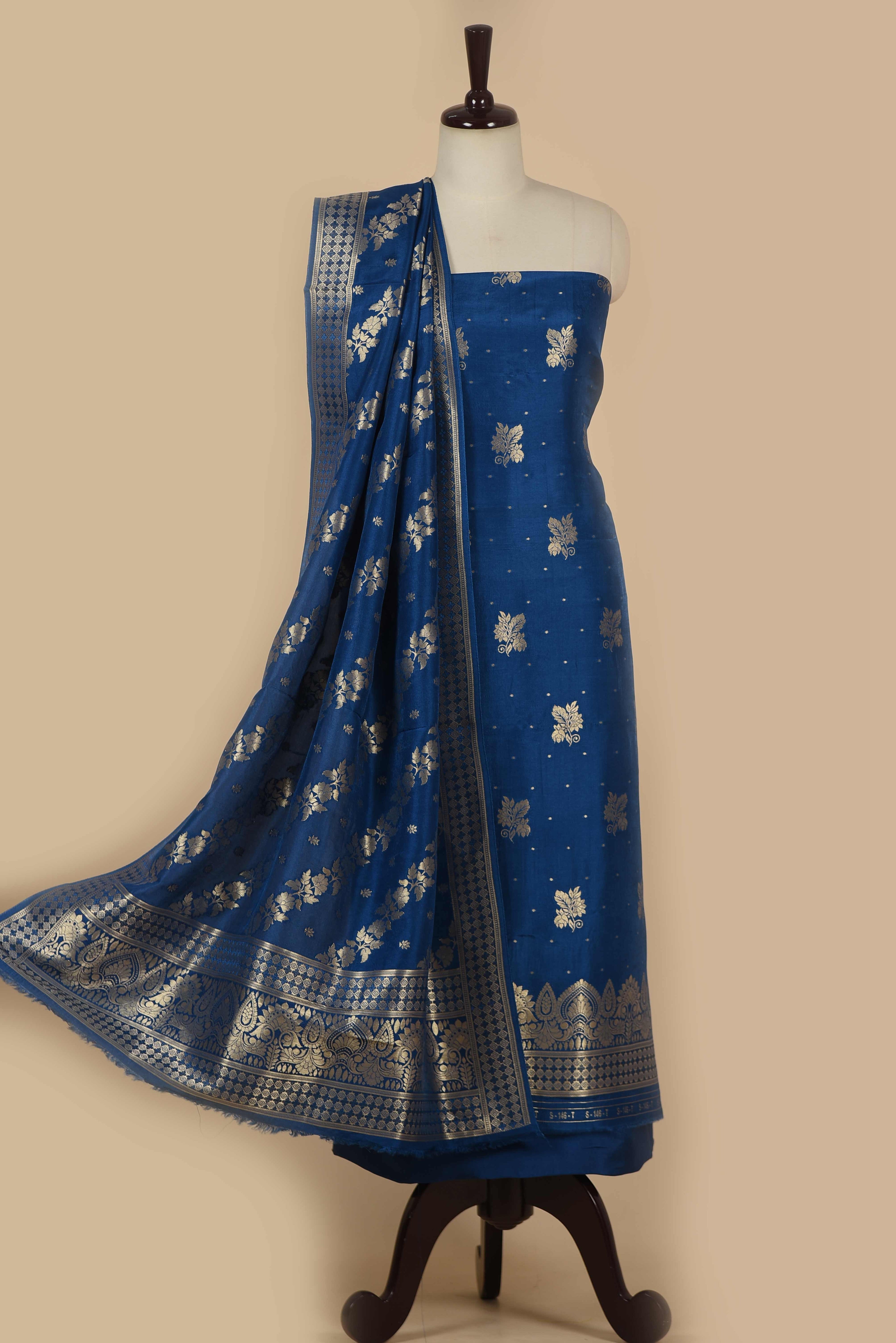 Blue Silk Viscose Woven With Unstitched Suit Fabric Set With Silk Viscose Woven Dupatta