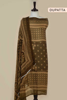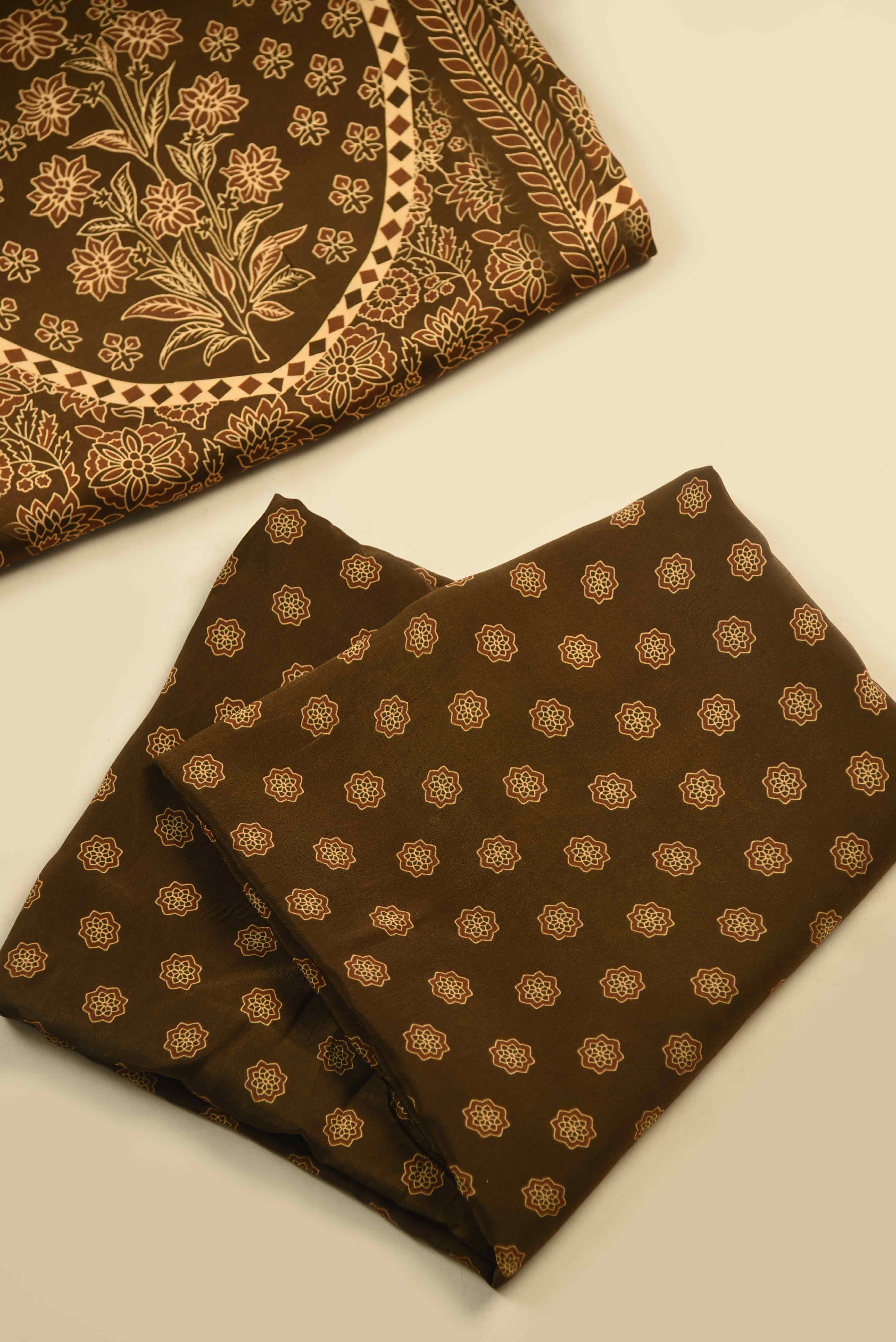 Brown Modal Satin Printed Unstitched Suit Fabric Set With Chiffon Printed Dupatta