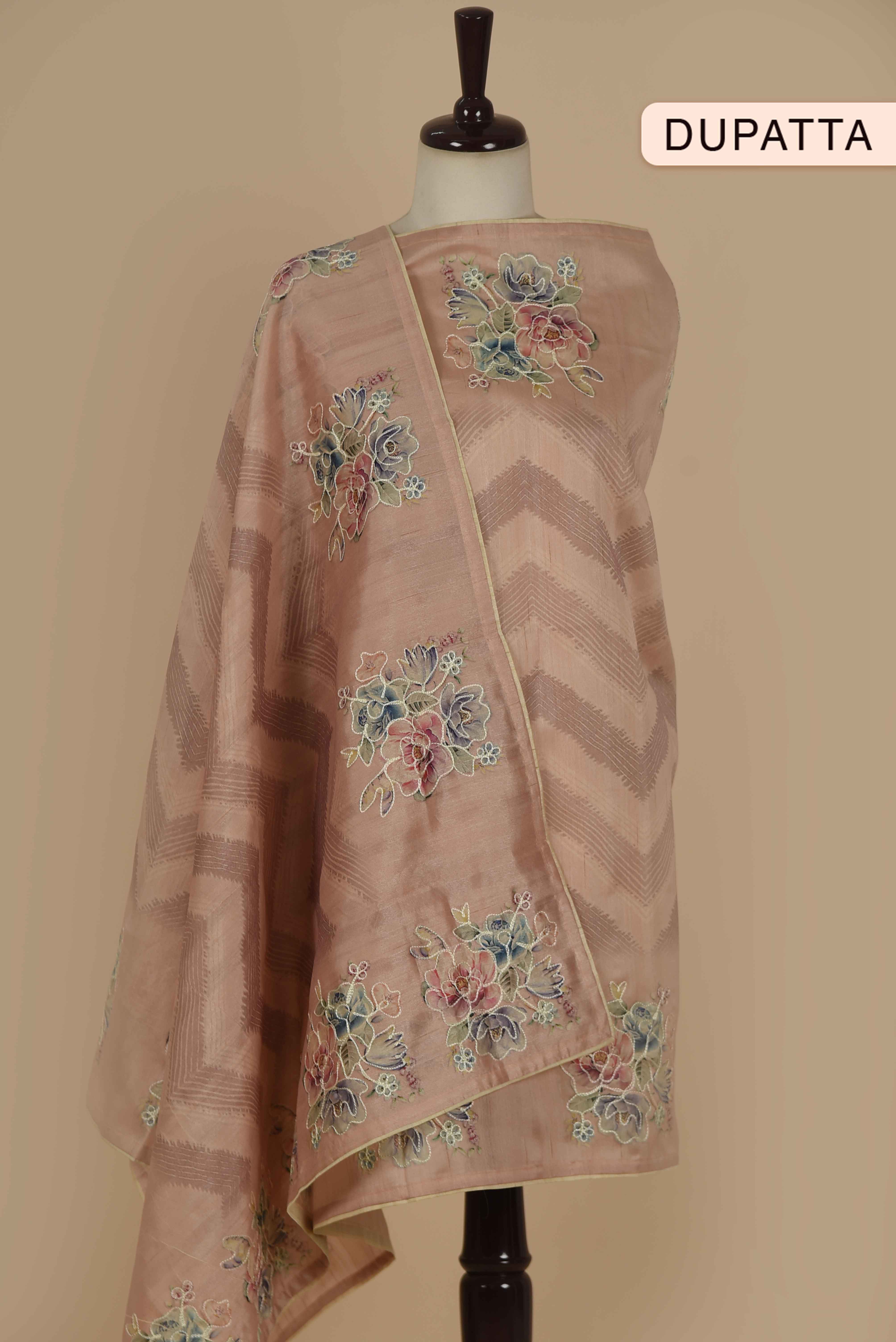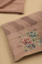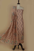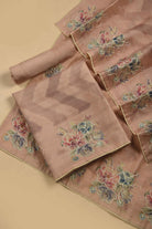 Nude Pink Silk Blend Printed With Embroidered Unstitched Suit Fabric Set With Silk Dupatta