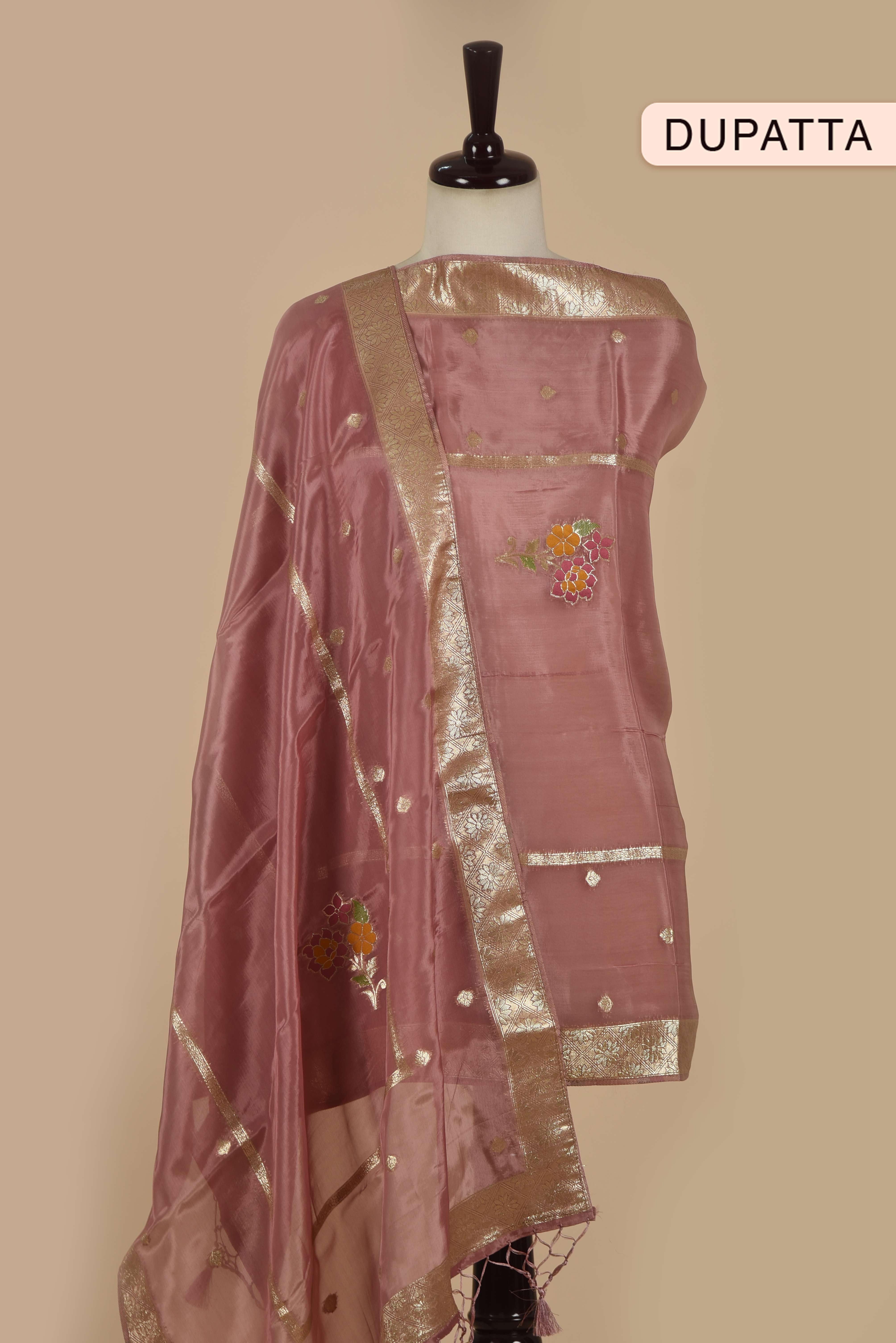 Onion Pink Organza Silk Woven Unstitched Suit Set with Organza Silk Dupatta