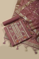 - Drape yourself in refined luxury with our Onion Pink Organza Silk Woven Unstitched Suit Set, a celebration of elegance and artistry.