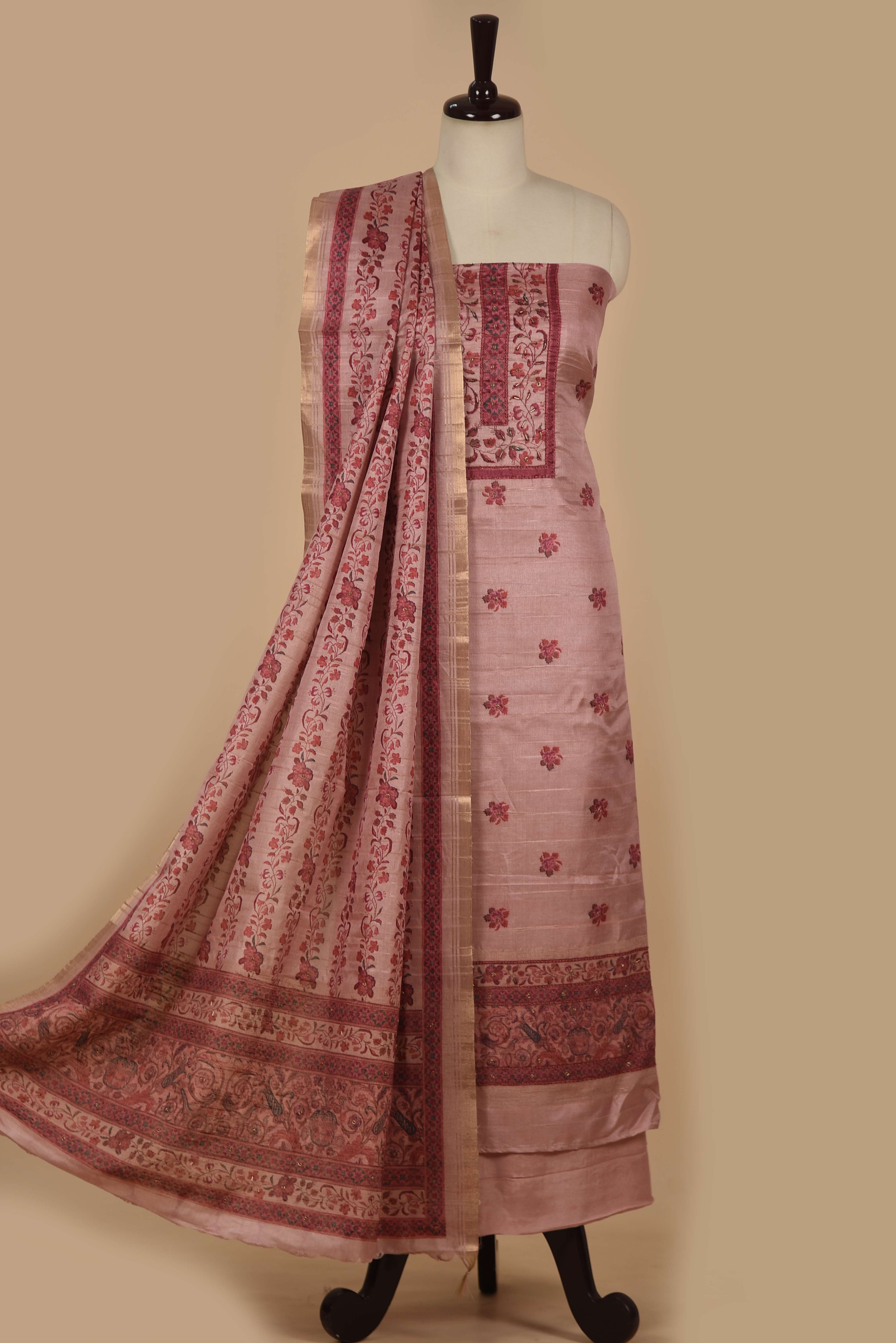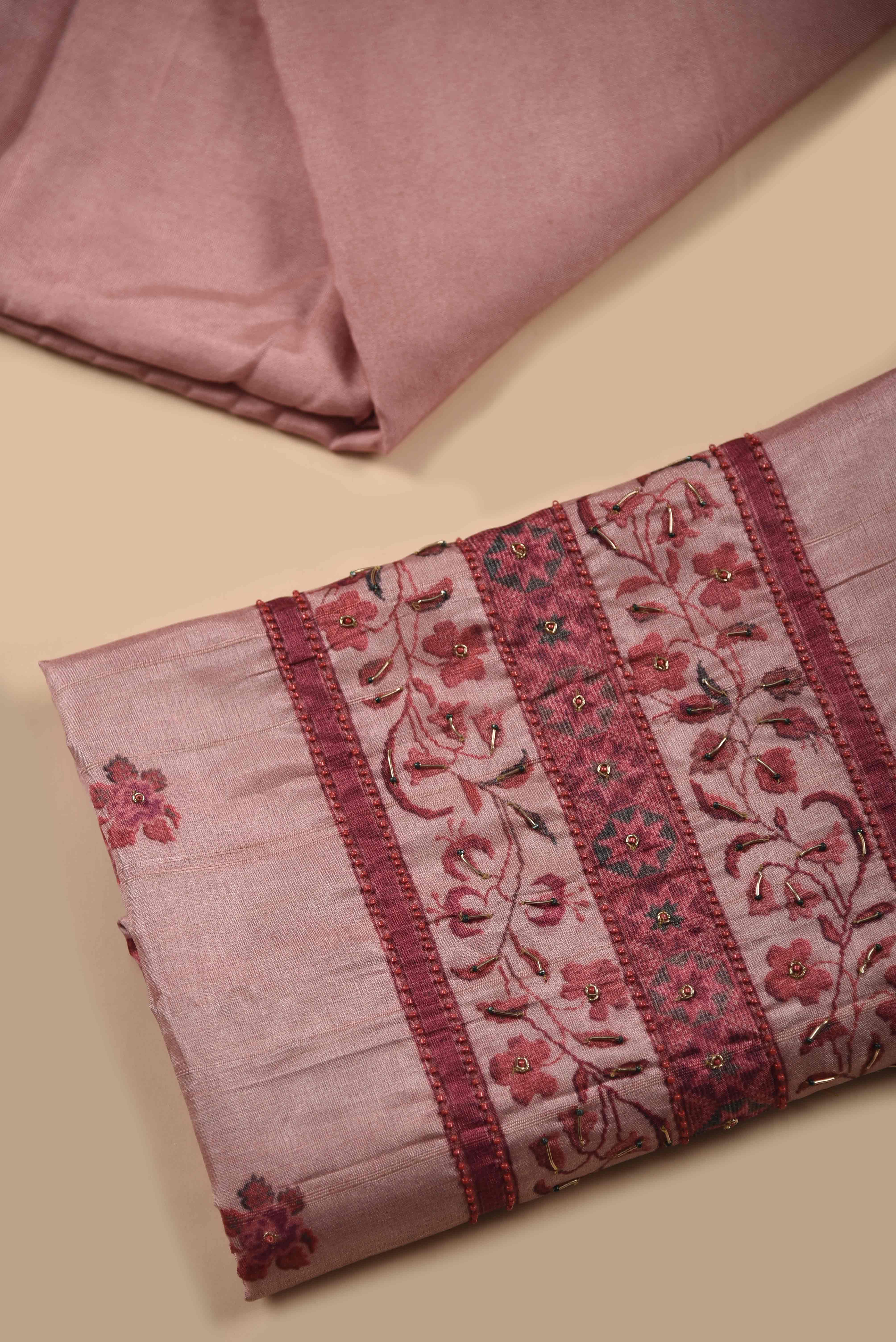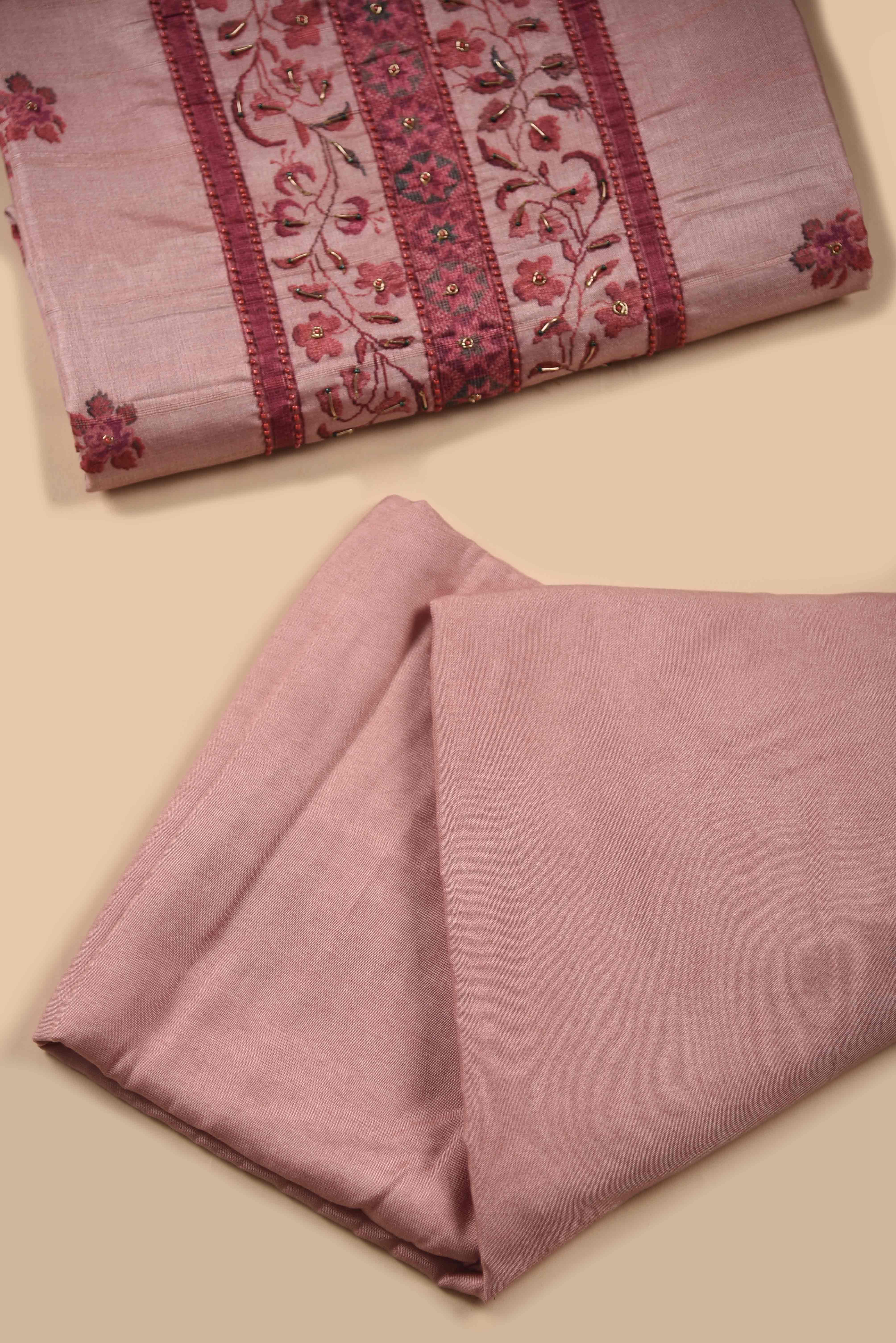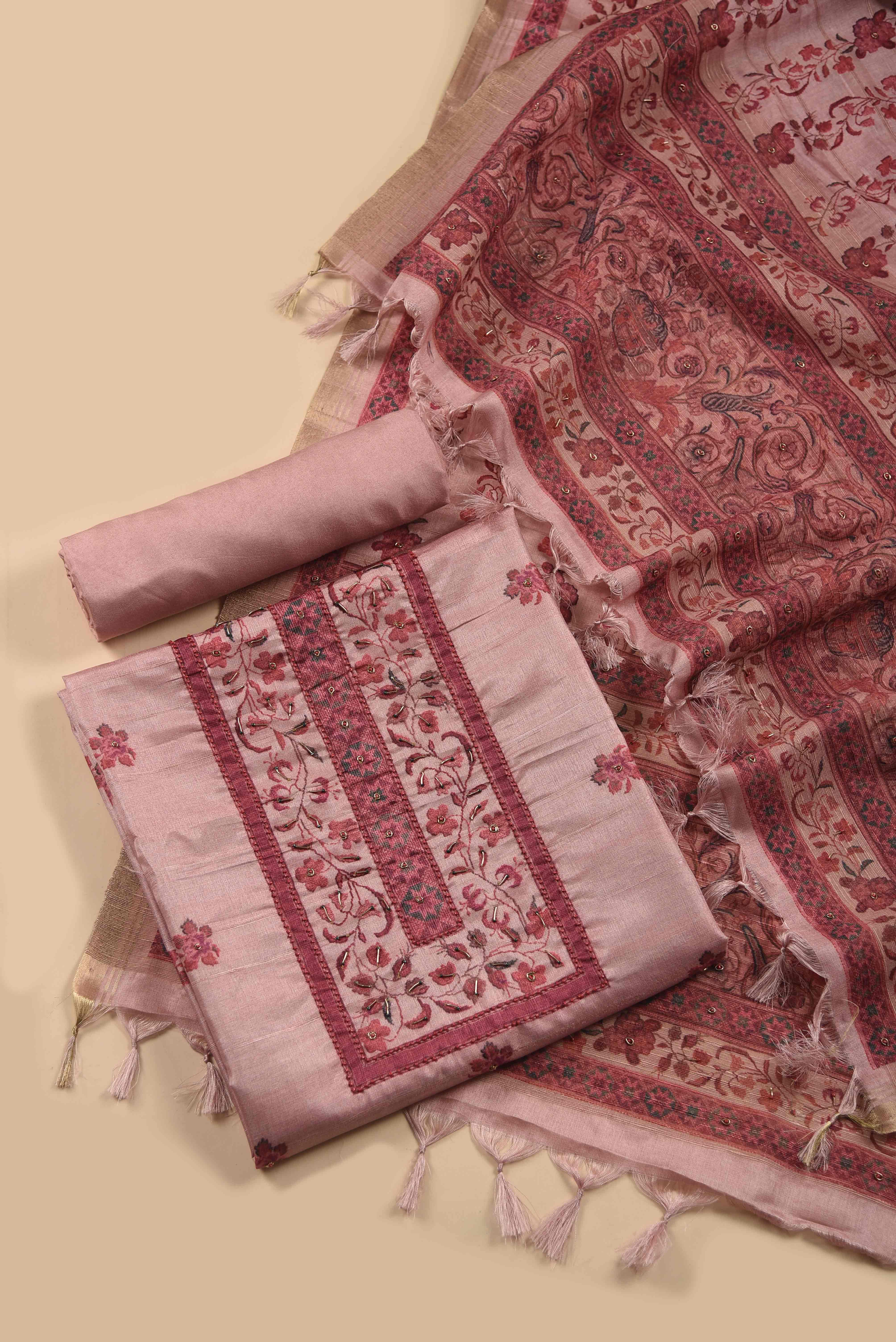 - Pink Silk Blend Printed & Embellished Unstitched Suit Set with Silk Blend Dupatta